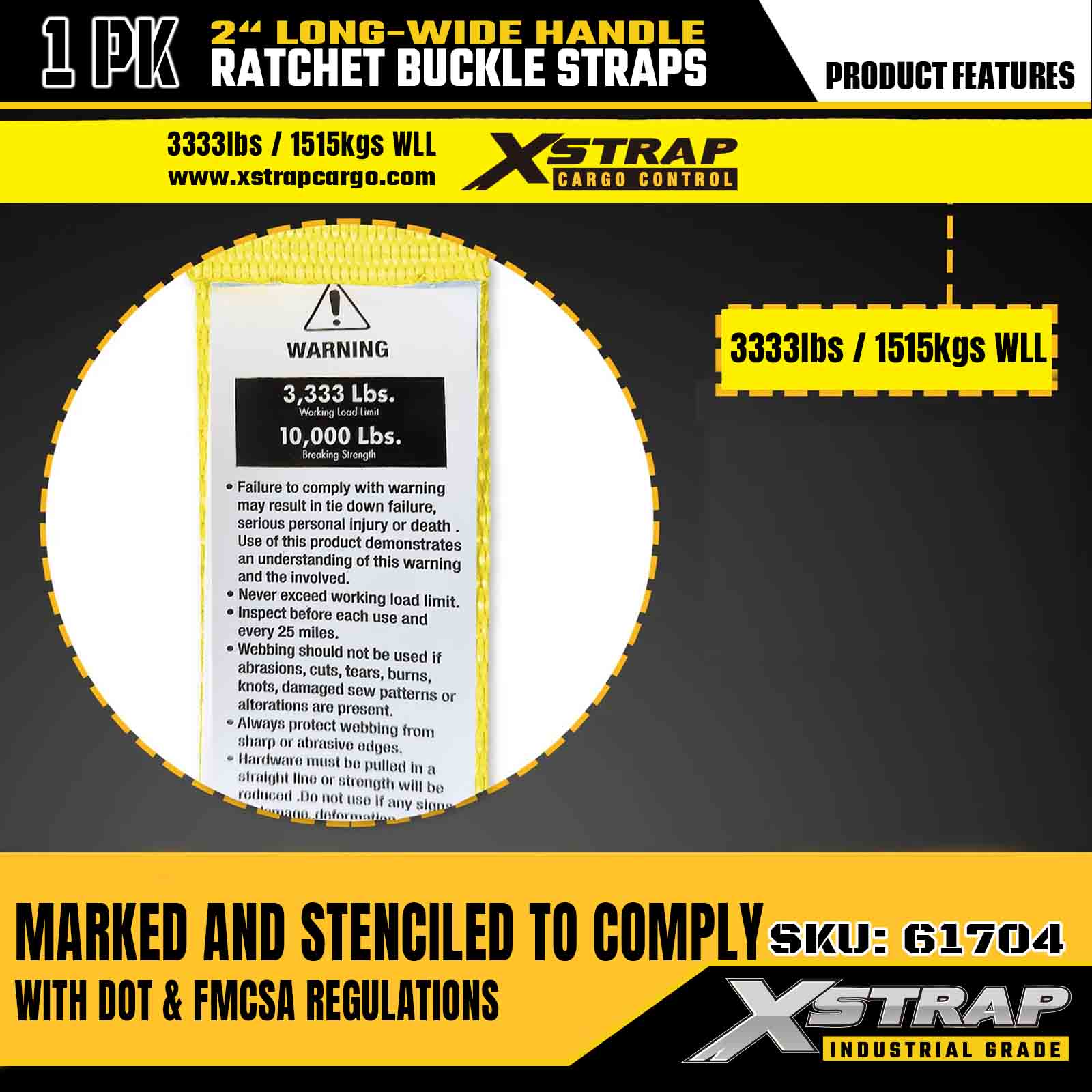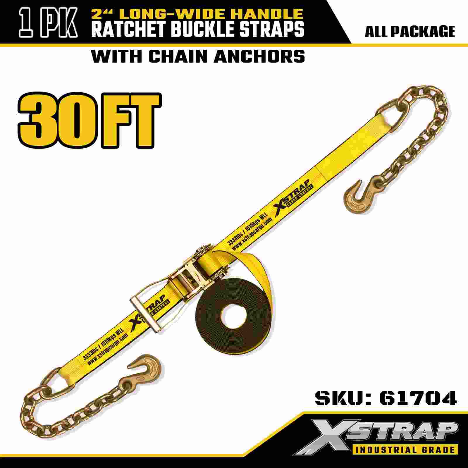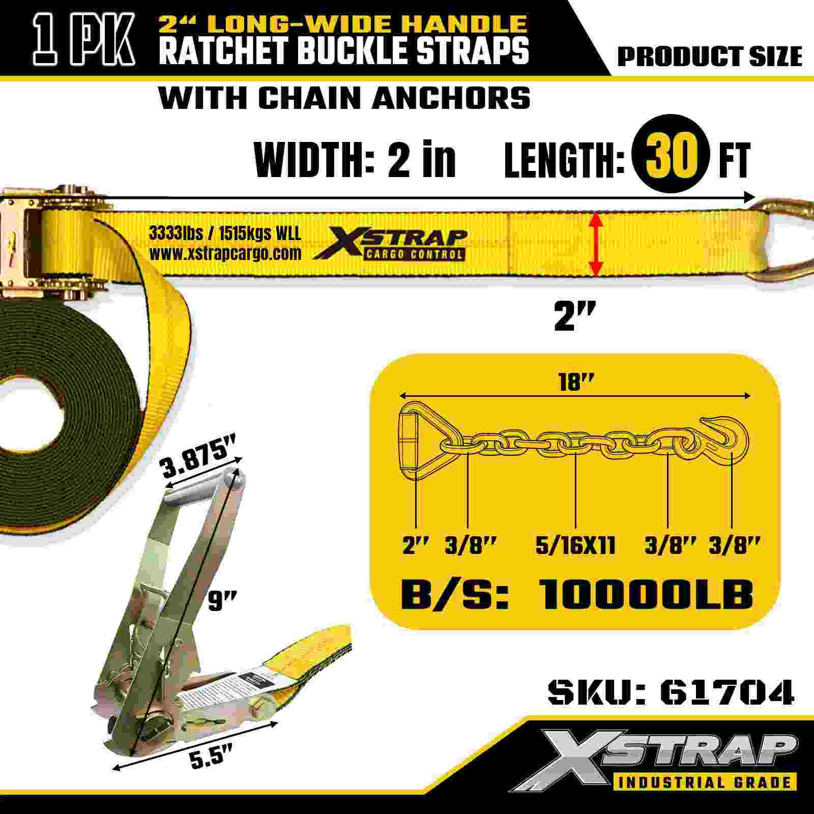 Xtrap 61704 Duge široke trake s kopčom s čegrtaljkom 2" x 30 stopa (paket od 1 komada) – lančane kuke, lomna čvrstoća 10 000 lbs, traka za vezanje za teške uvjete rada za prijevoz tereta i opreme