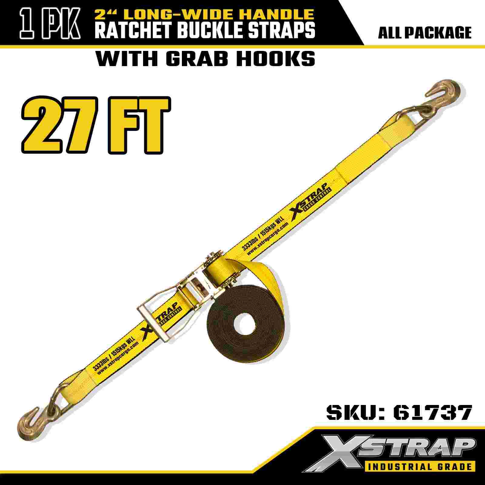 Xstrap 61737 Heavy Duty 2" x 27' 1PK remen s čegrtaljkom s kukama za hvatanje, žuta, WLL 3333 lbs, remen za vezivanje s čegrtaljkom s dugačkom širokom ručkom za strojeve i opremu