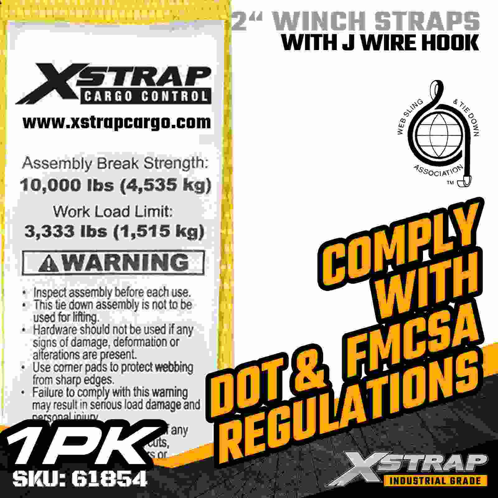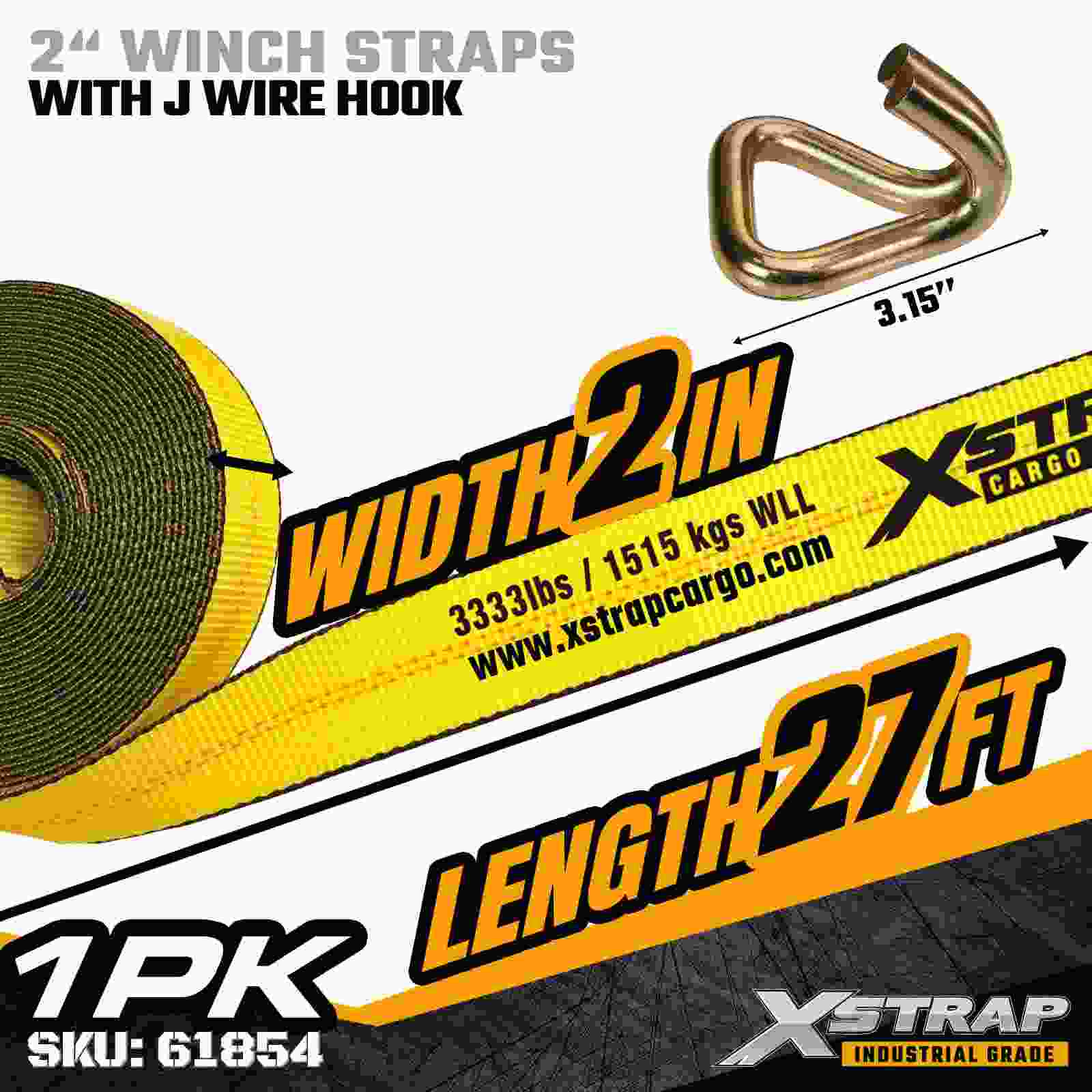Standardni remen za vitlo Xstrap 61854 2" × 27 stopa je izdržljivo i pouzdano rješenje za učvršćivanje tereta dizajnirano za prikolice s ravnim platformama i profesionalni transport. Sadrži jaku žičanu kuku i poliestersku traku visoke čvrstoće, ovaj remen za vitlo od 2 inča pruža ograničenje radnog opterećenja od 3333 lbs i otpornost na kidanje od 10 000 lbs. Idealan je za osiguravanje paleta, drvene građe, cijevi, strojeva i općeg tereta tijekom svakodnevnih operacija vuče.