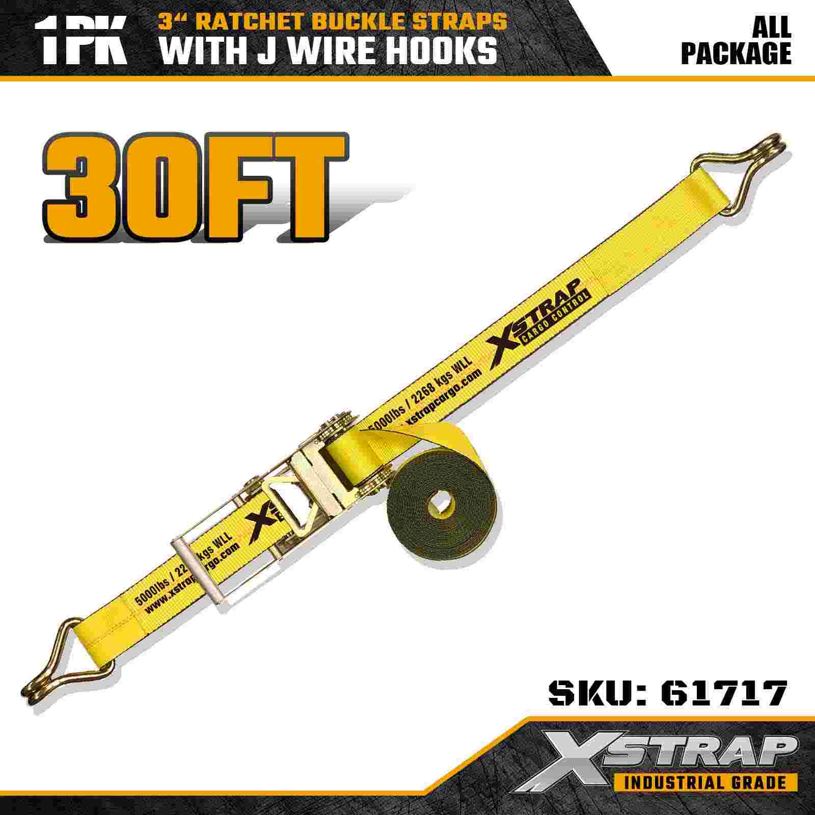 Xstrap 61717 3" × 30 stopa remen s kopčom s čegrtaljkom (pakiranje od 1 komada) dizajniran je za zahtjevne primjene u teretu, s pojačanim žičanim kukama i visokonapetim sustavom s čegrtaljkom. S ograničenjem radnog opterećenja od 5.000 lbs i otpornošću na kidanje od 15.000 lbs, ovaj remen pruža pouzdanu izvedbu za ravne platforme, transport opreme i industriju logistika.