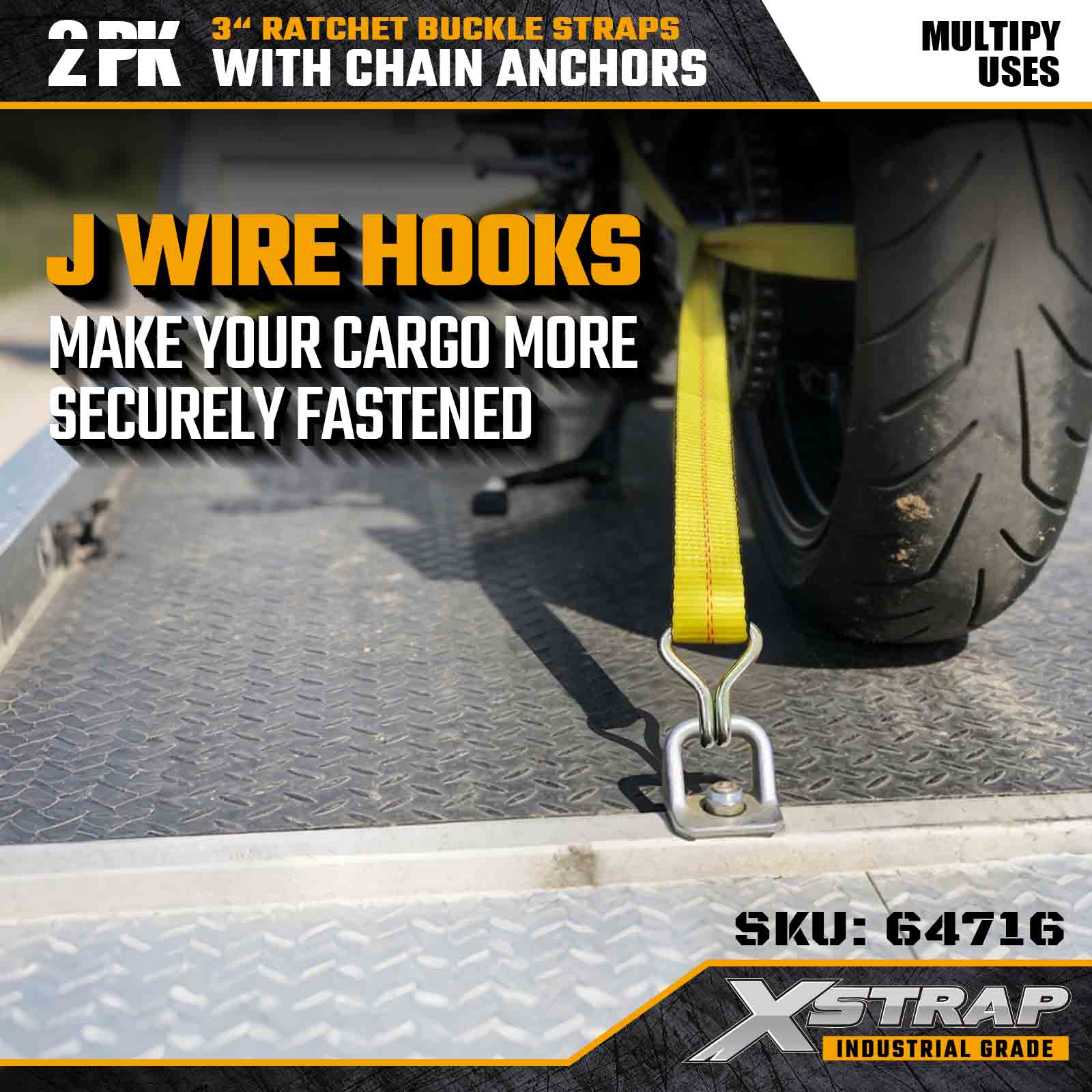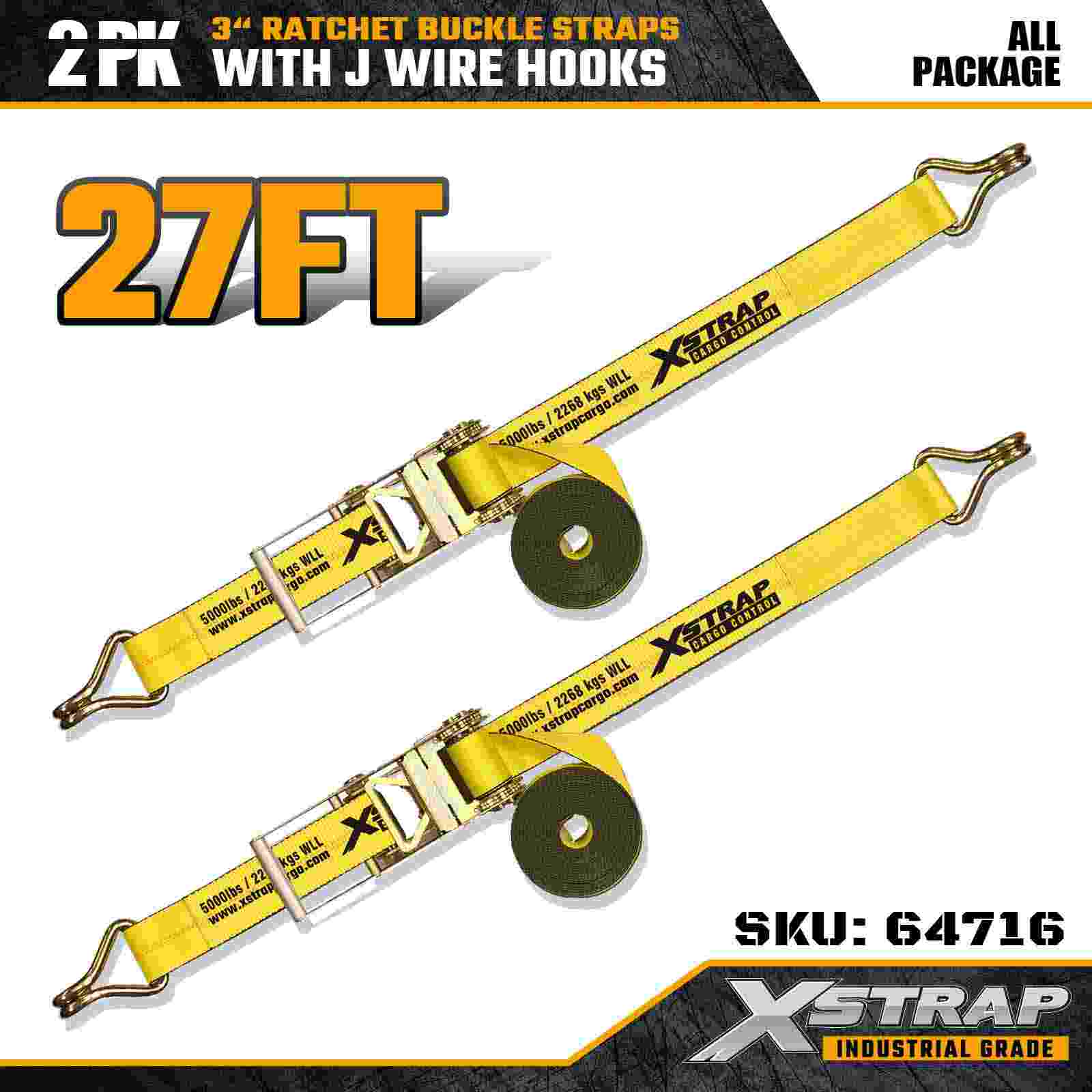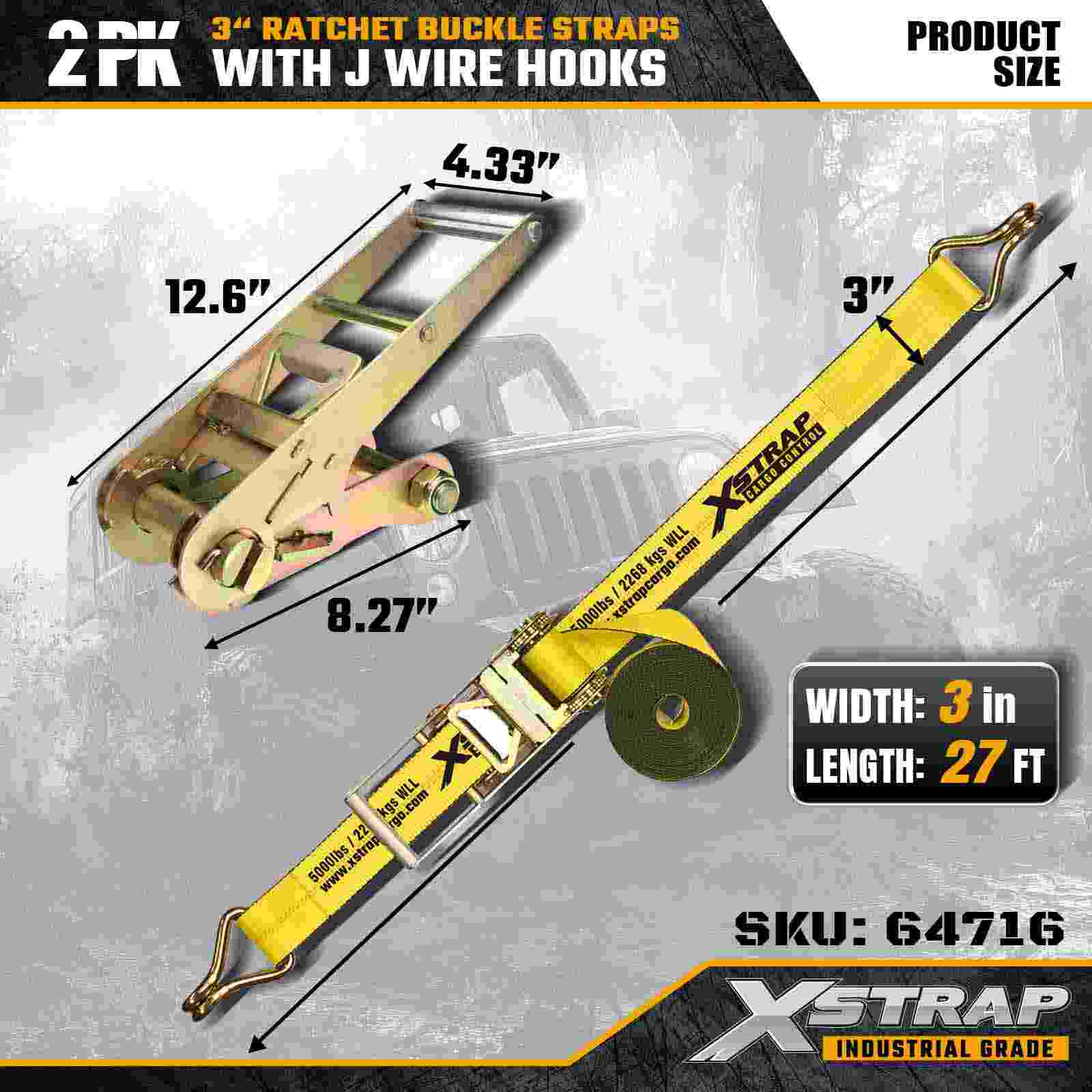 Xstrap 64716 3" × 27 stopa remeni s kopčom s kopčom (2 paketa) dizajnirani su za profesionalno učvršćivanje tereta, sa žičanim kukama visoke čvrstoće i izdržljivim mehanizmom s kopčom. S ograničenjem radnog opterećenja od 5000 lbs i otpornošću na kidanje od 15 000 lbs, ovi remeni pružaju pouzdanu izvedbu za ravne platforme, transport opreme i industriju vučne zadatke.