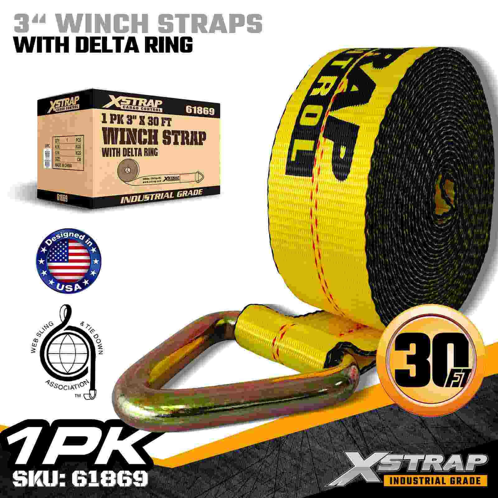 3" × 30ft Standardni remen za vitlo s Delta prstenom