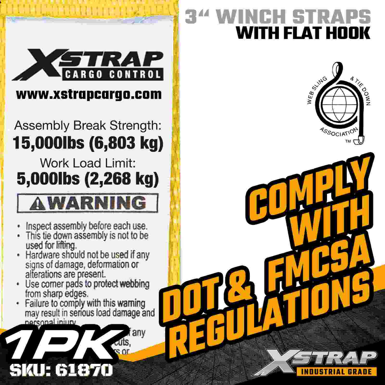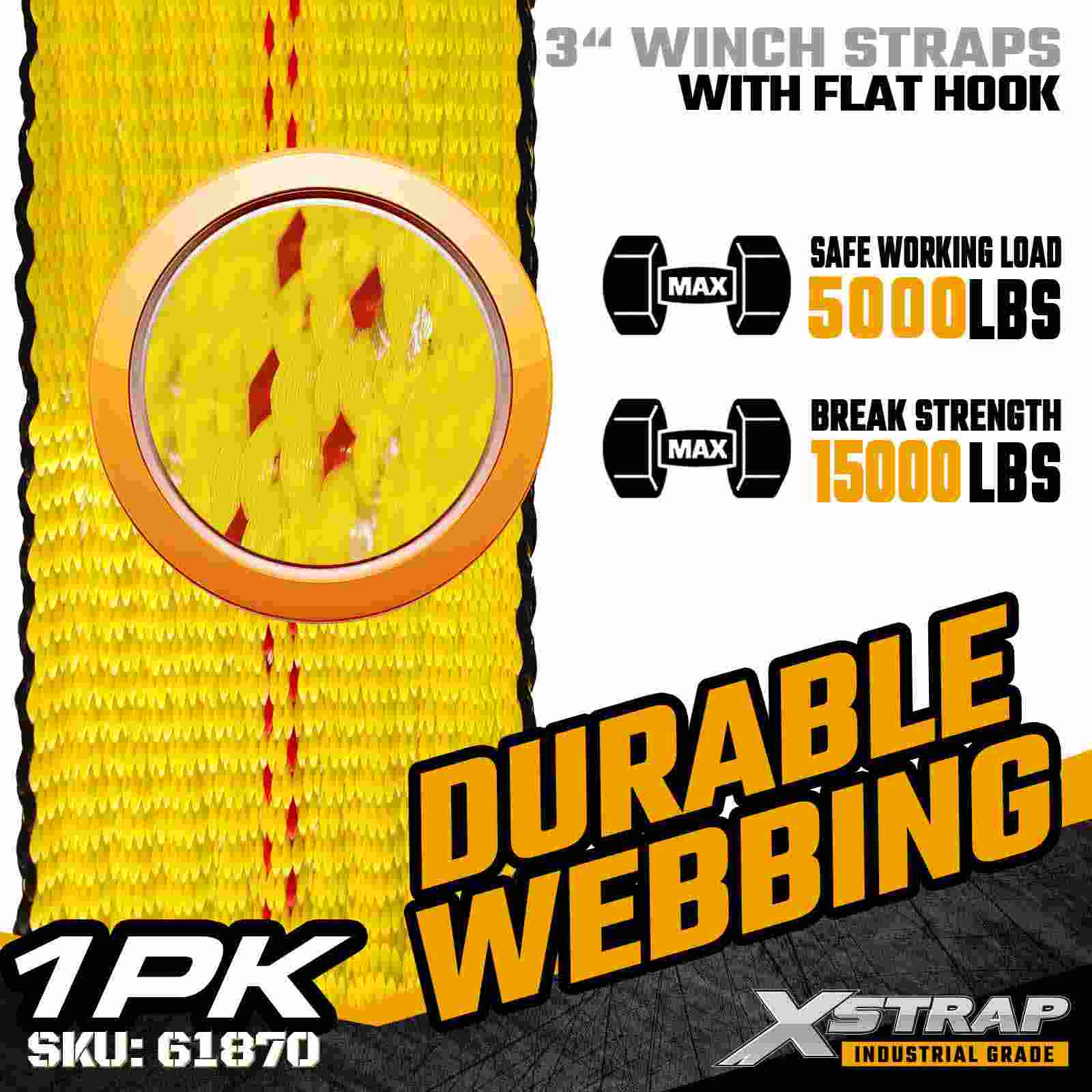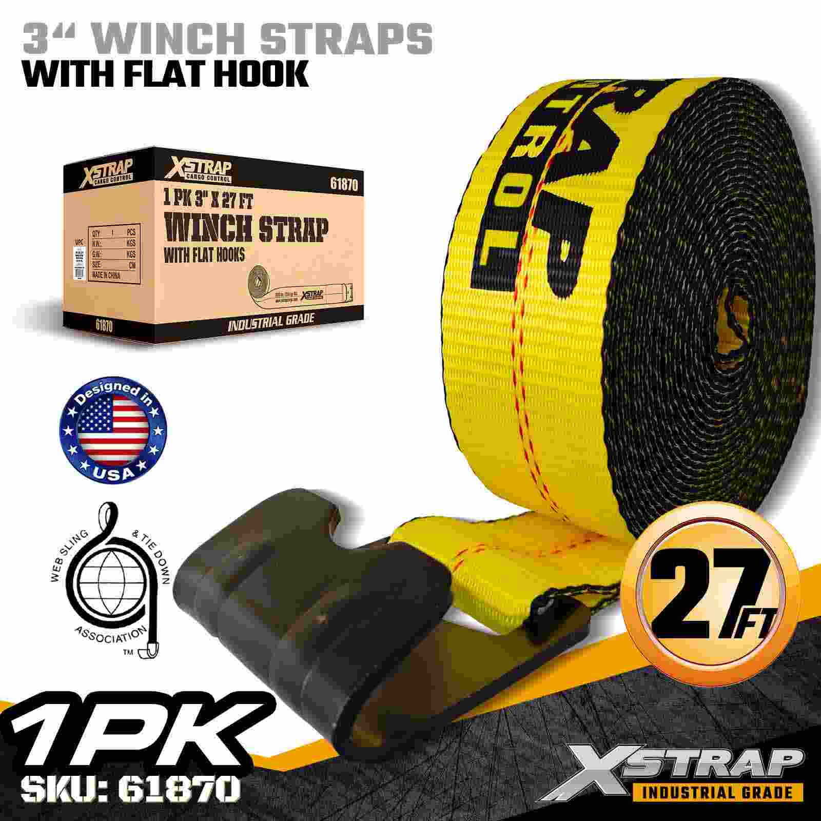 Standardni remen za vitlo Xstrap 61870 3" × 27 stopa je traka za učvršćivanje tereta za teške uvjete rada dizajnirana za prikolice s ravnim platformama i transport velikog kapaciteta. Uz ojačanu ravnu kuku i posebno široku poliestersku traku od 3 inča, ova traka za vitlo od 3 inča pruža ograničenje radnog opterećenja od 5000 lbs i 15 000 lbs Čvrstoća na lom Idealan je za osiguranje drvene građe, čelika, strojeva i industrijskog tereta tijekom zahtjevnih operacija vuče.