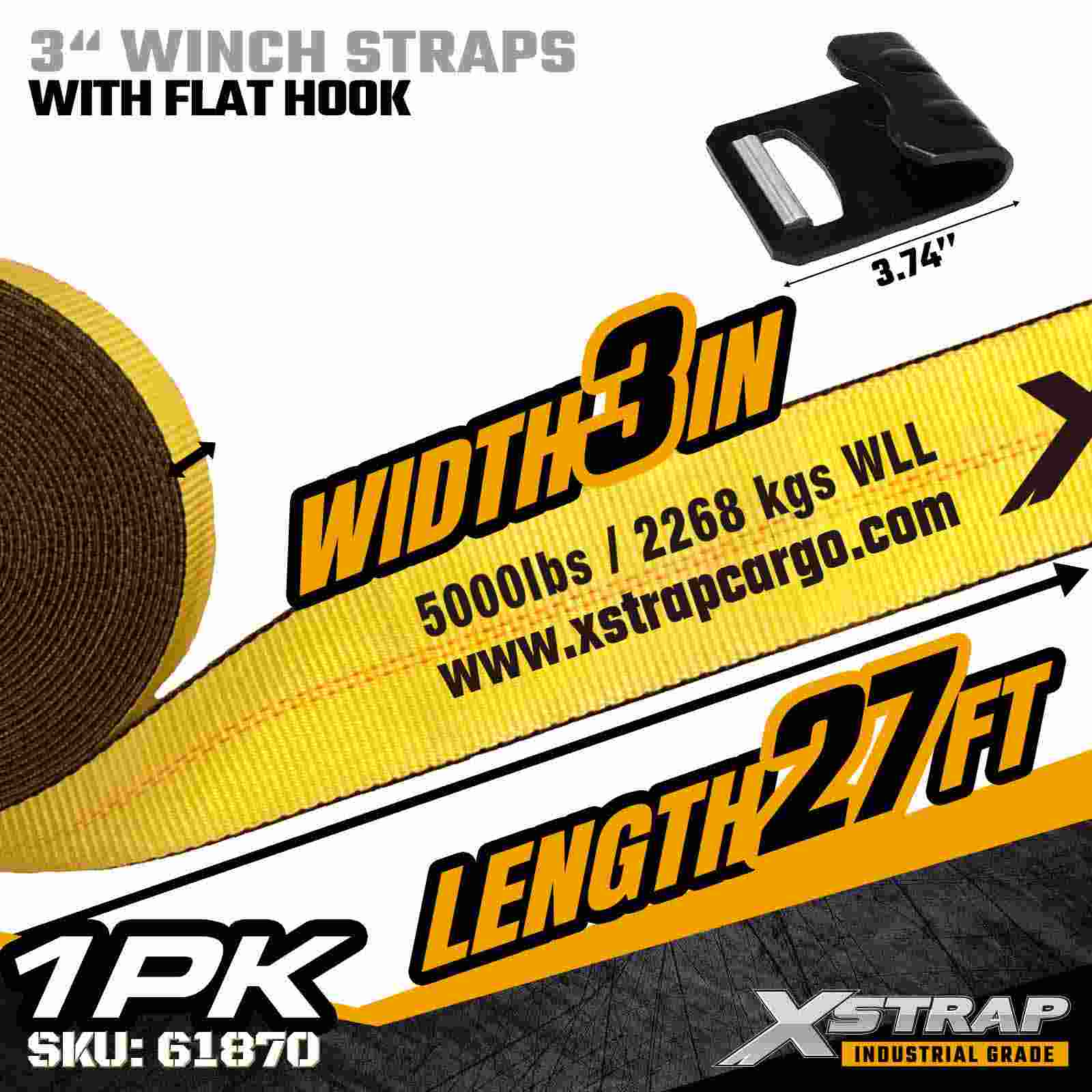Standardni remen za vitlo 3" × 27 stopa s ravnom kukom