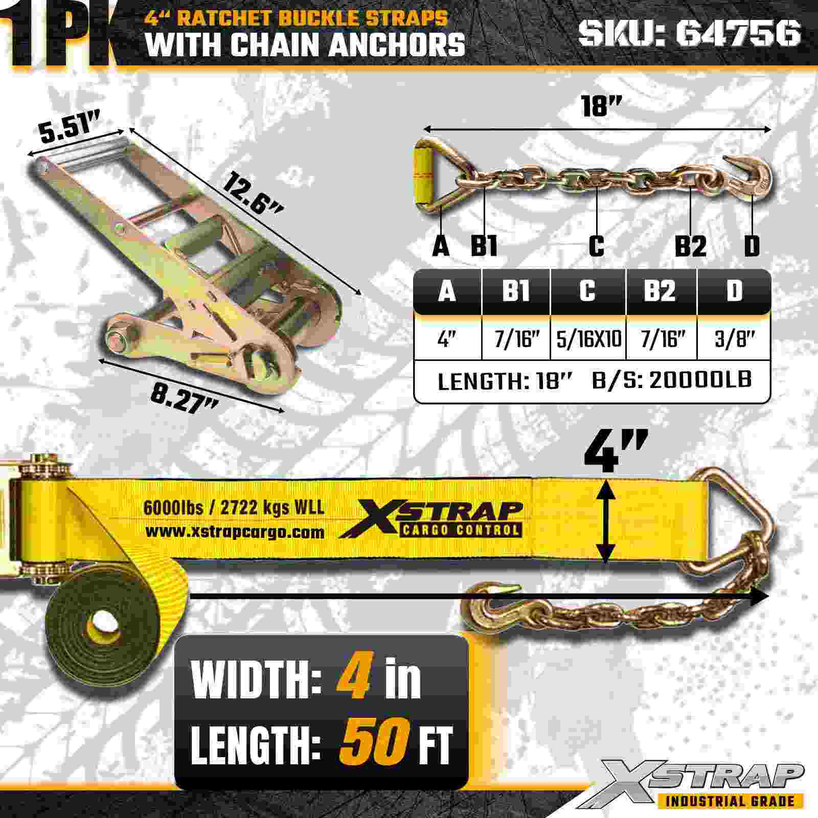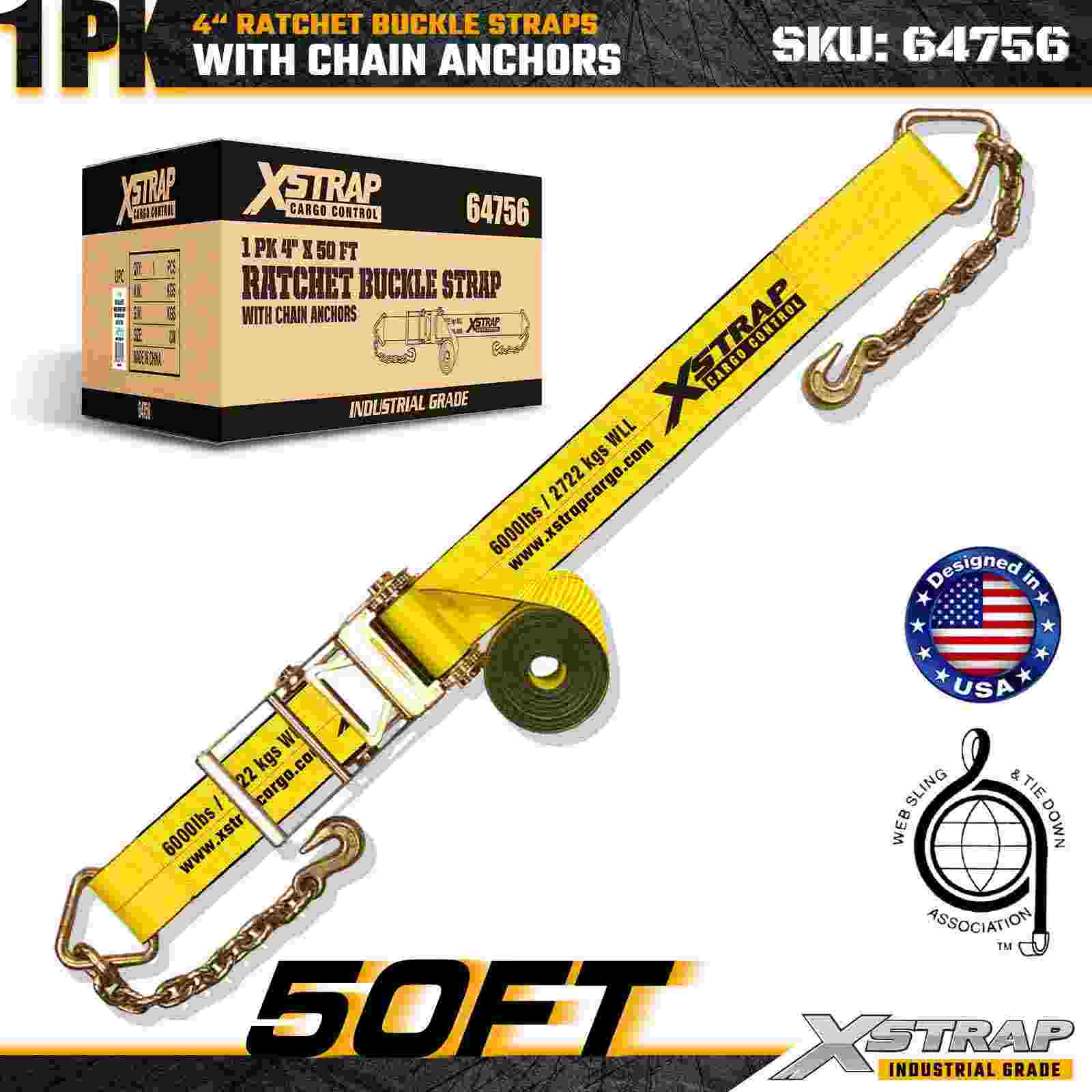 Xstrap 64756 4" × 50 stopa remen s kopčom s čegrtaljkom i sidrima za lanac Čvrstoća na lom 18 000 lbs (paket od 1)