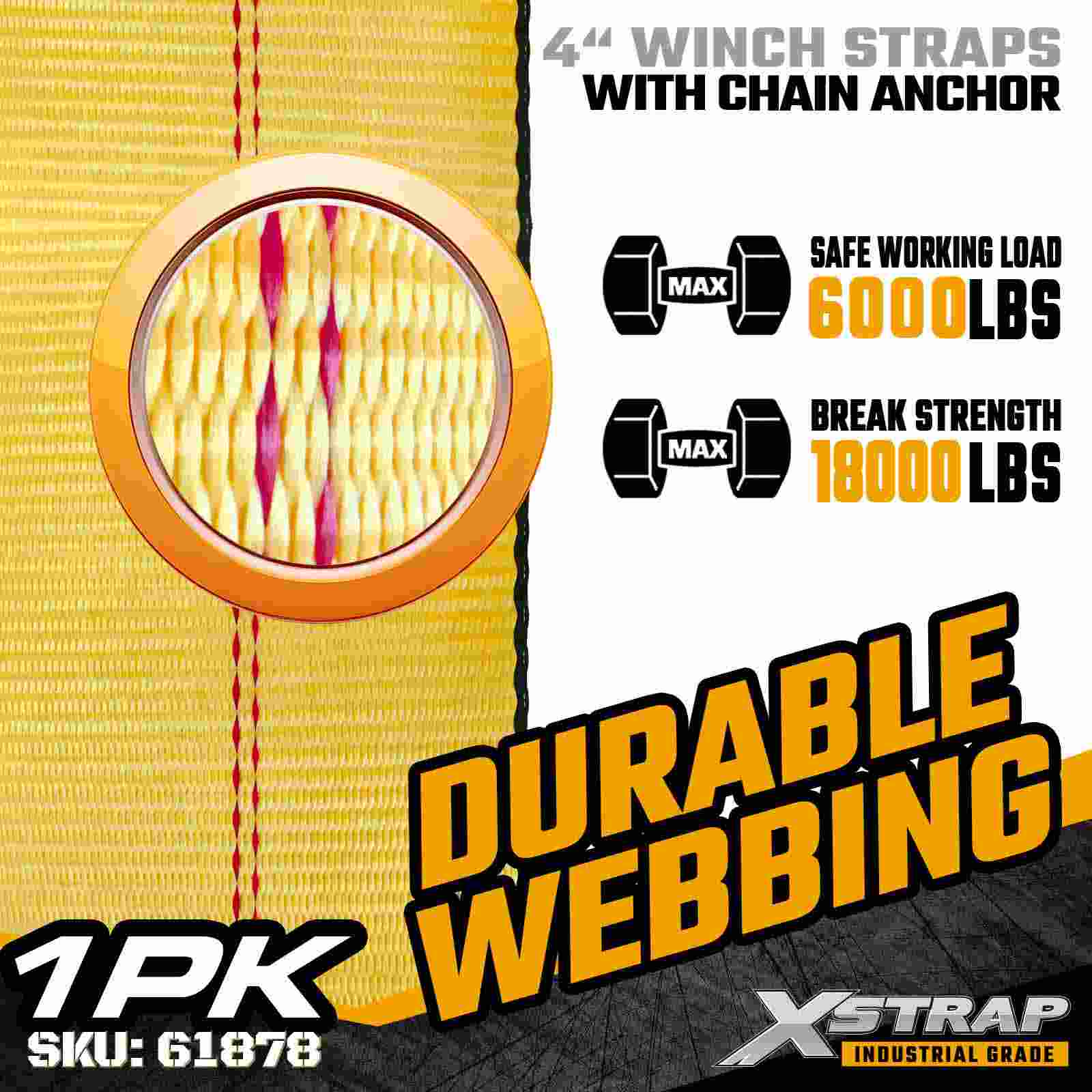 Standardna traka za vitlo Xstrap 61878 4" × 27 stopa je traka za pričvršćivanje industrijskog tereta za teške uvjete rada dizajnirana za prikolice s ravnim platformama i ekstremne uvjete opterećenja. Uz kovano sidro za lanac i ultraširoku poliestersku traku od 4 inča, ova traka za vitlo od 4 inča pruža ograničenje radnog opterećenja od 6000 lbs i 18 000 lbs Čvrstoća lančanog sidra pruža neusporedivo prianjanje i izdržljivost, što ga čini idealnim za učvršćivanje čelika, strojeva i drugog tereta visoke napetosti.