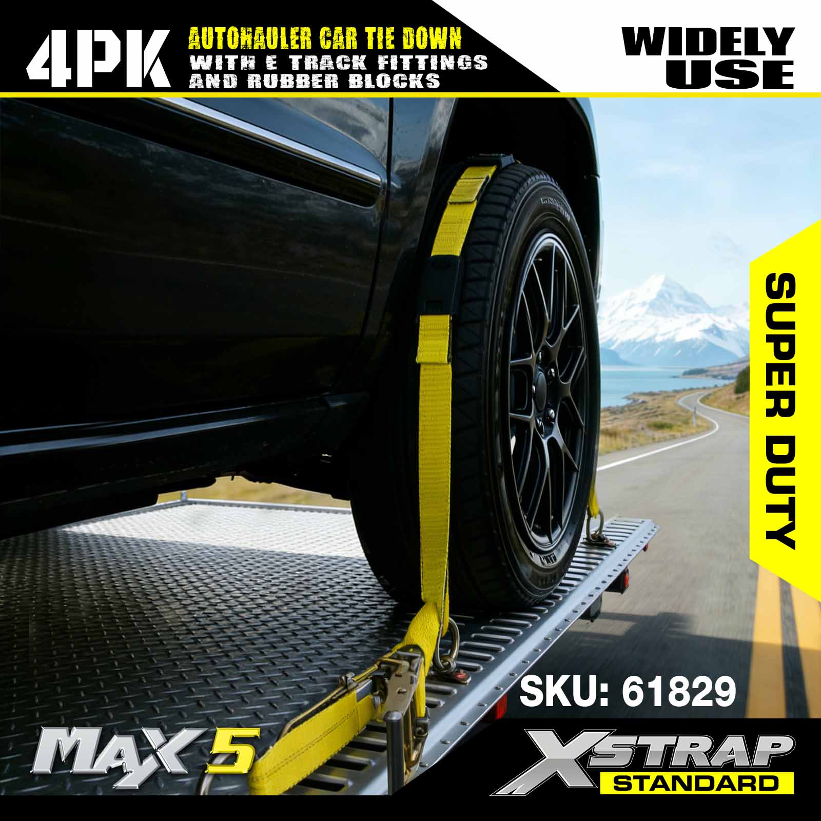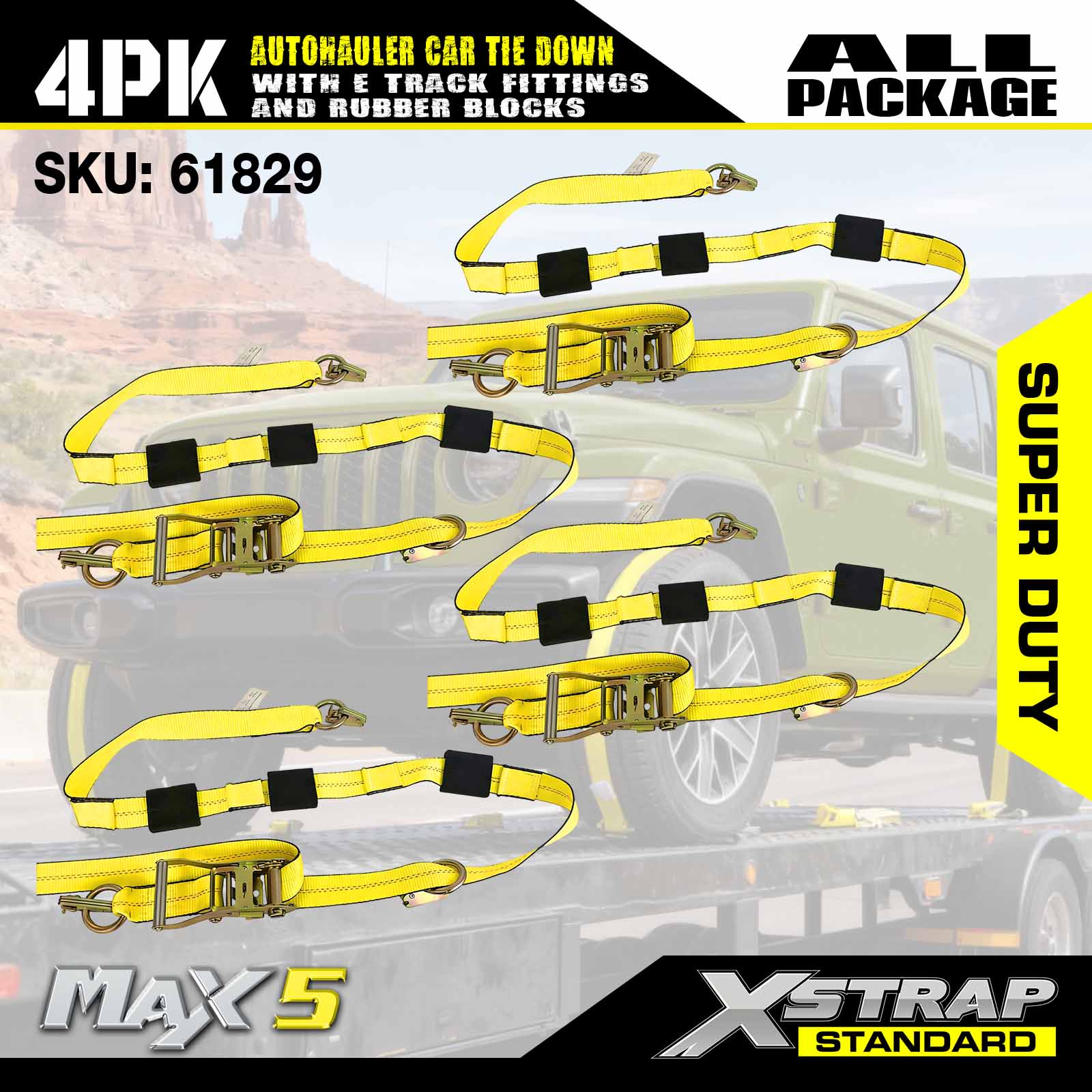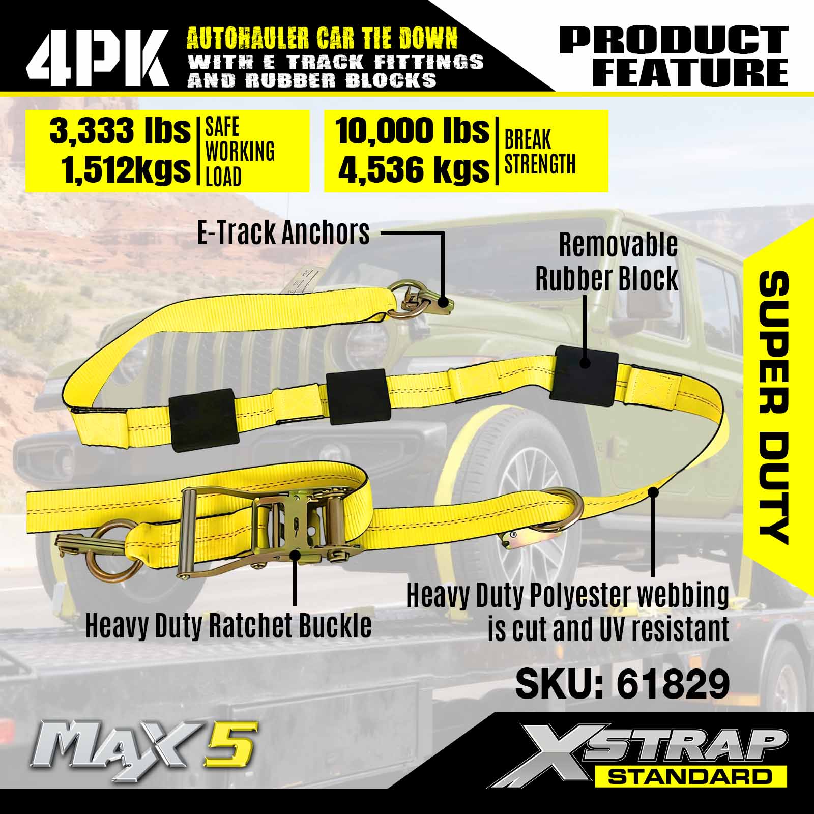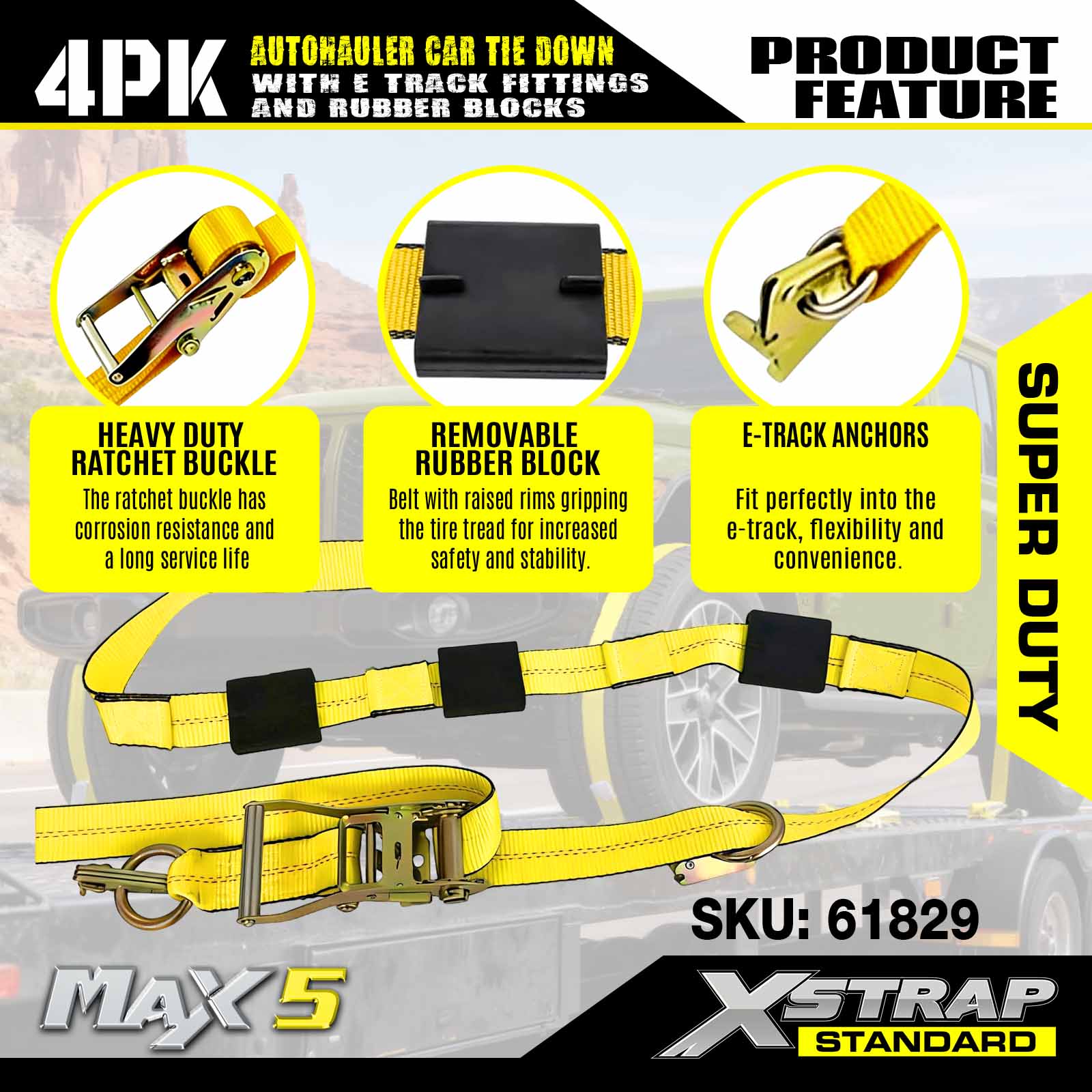 Xstrap E Track trake za gume za prikolice za teške uvjete rada 2" x 10' trake za auto-tegljače-10.000 lb zajamčena čvrstoća na kidanje-(4) Premium komplet za pričvršćivanje vozila s gumenim blokovima za pričvršćivanje kotača za kamion, UTV