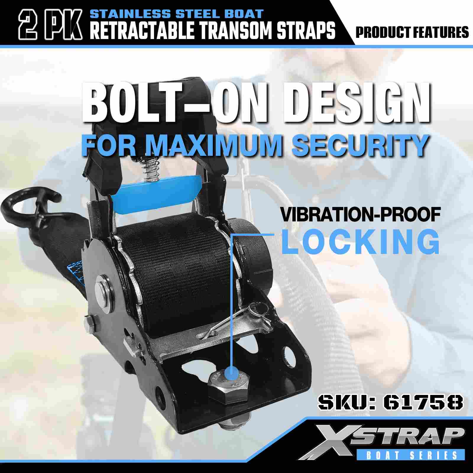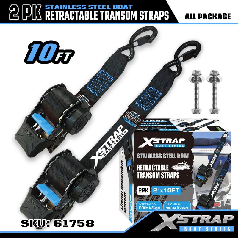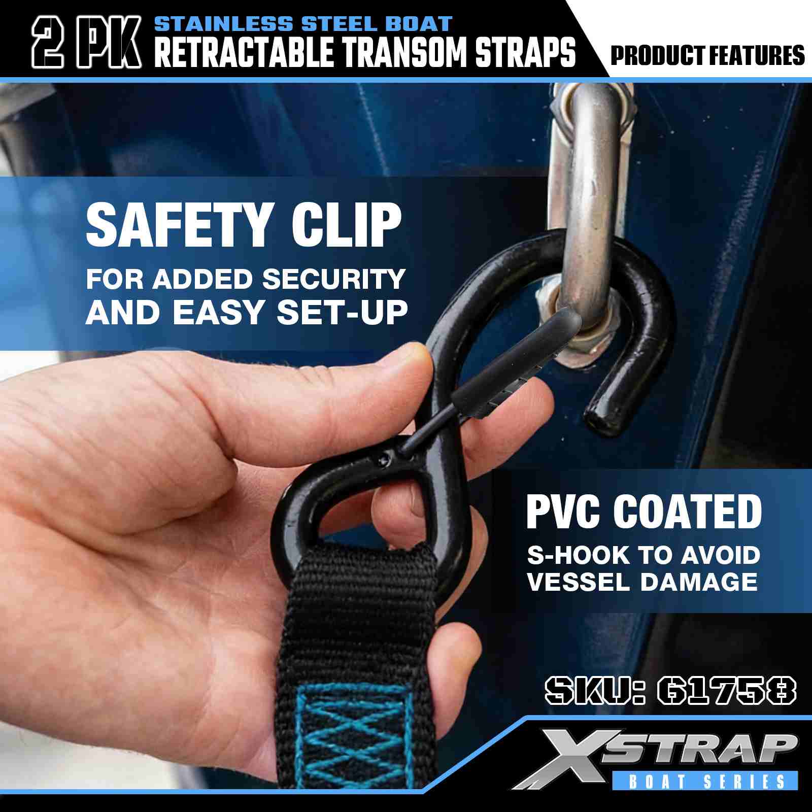 2” x 3,6’ 2PK remen za krmeno zrcalo na uvlačenje za čamac sa sigurnosnim S kukama
