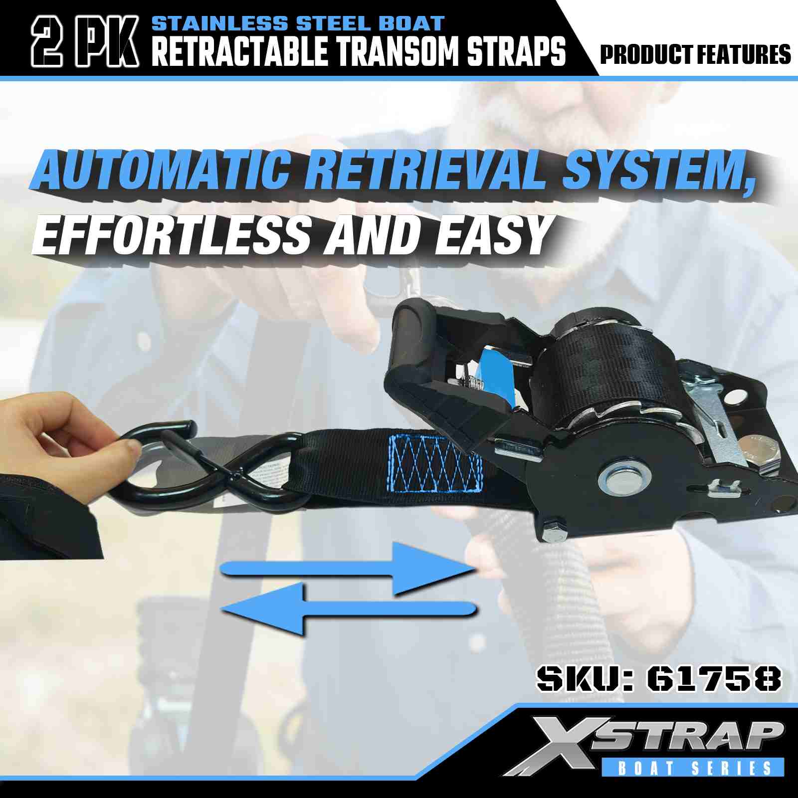 Xstrap 2PK remen za uvlačenje krmenog zrcala za čamac sa sigurnosnim S kukama, 2” x 3,6’ poliesterski remen za vezivanje, remen za pričvršćivanje tereta nosivosti 1000 lbs sa sigurnosnom S kukom za ozbiljnog profesionalca za pričvršćivanje teretne prikolice, prikolice s ravnim krevetom, skijaškog čamca, malog automobila.