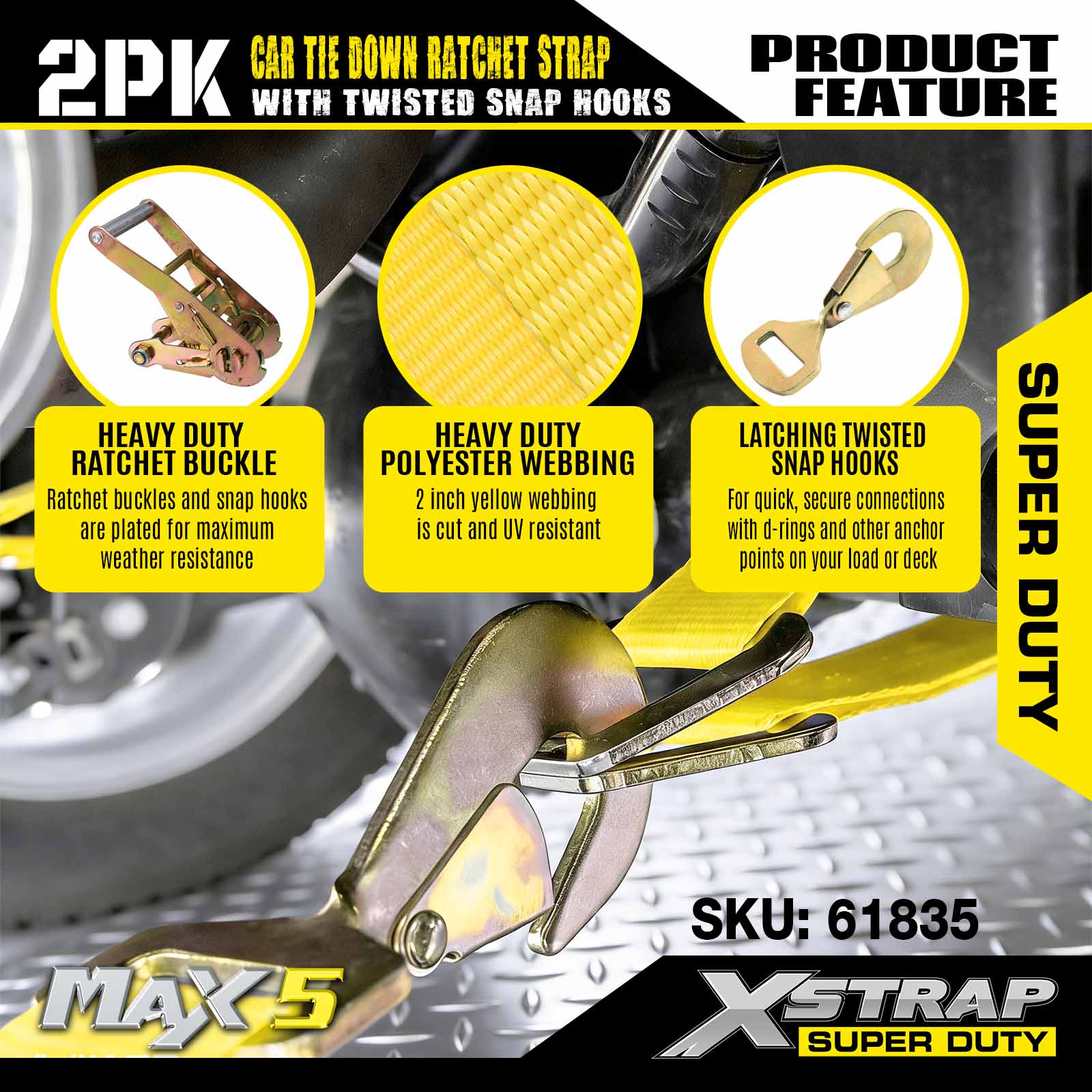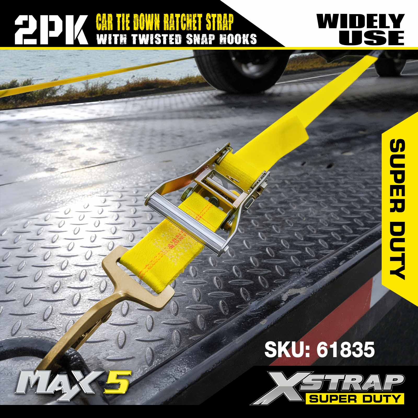 - Svestrani dizajn od 2 paketa: set od 2 dijela može se koristiti za učvršćivanje manjih tereta (npr. jedna osovina vozila) ili kao dopuna punom setu vezica za dodatnu stabilnost. Svaki remen je lagan i lako se sklopi, s kompaktnim pakiranjem koje stane u odjeljke za pohranu prikolice ili kutije za alat.