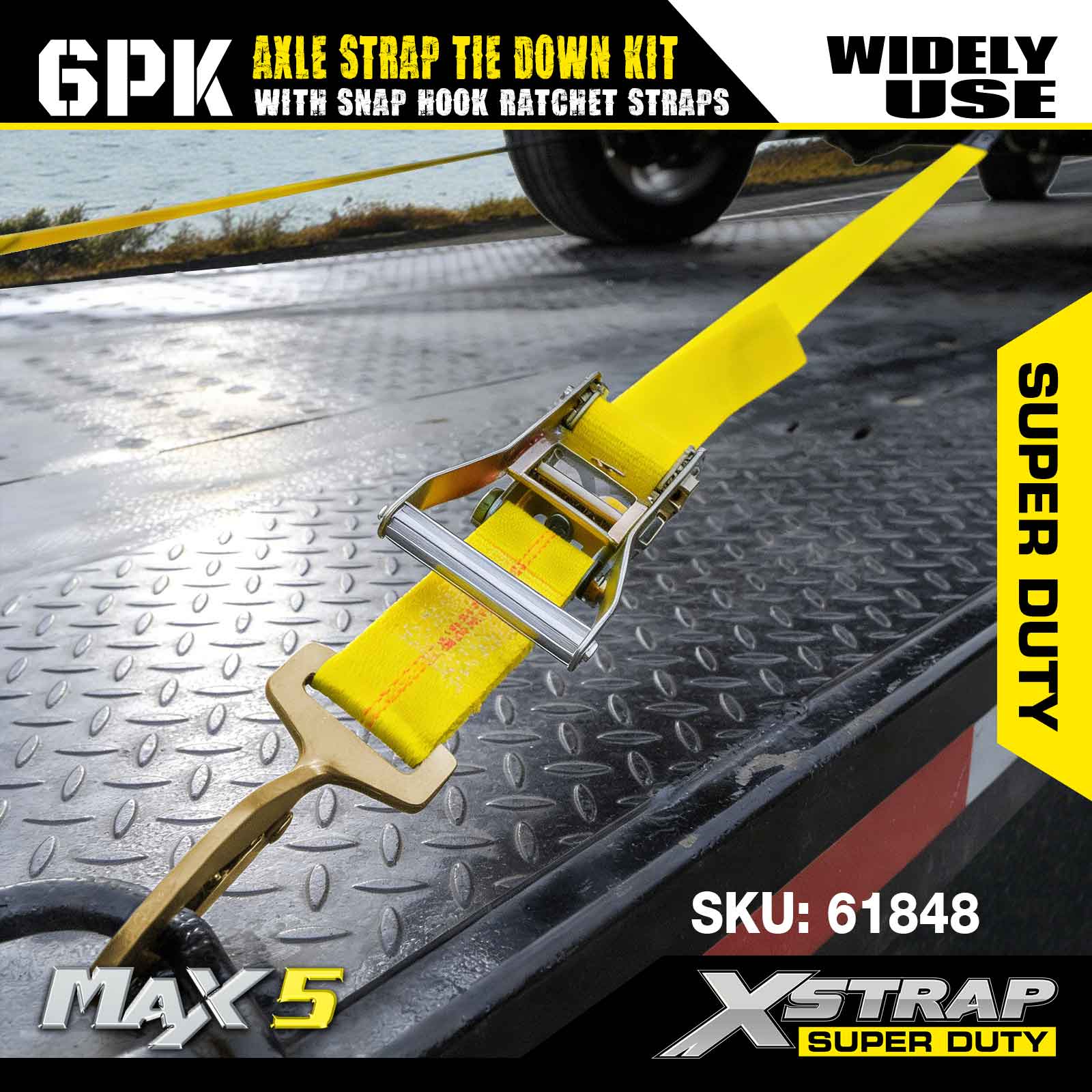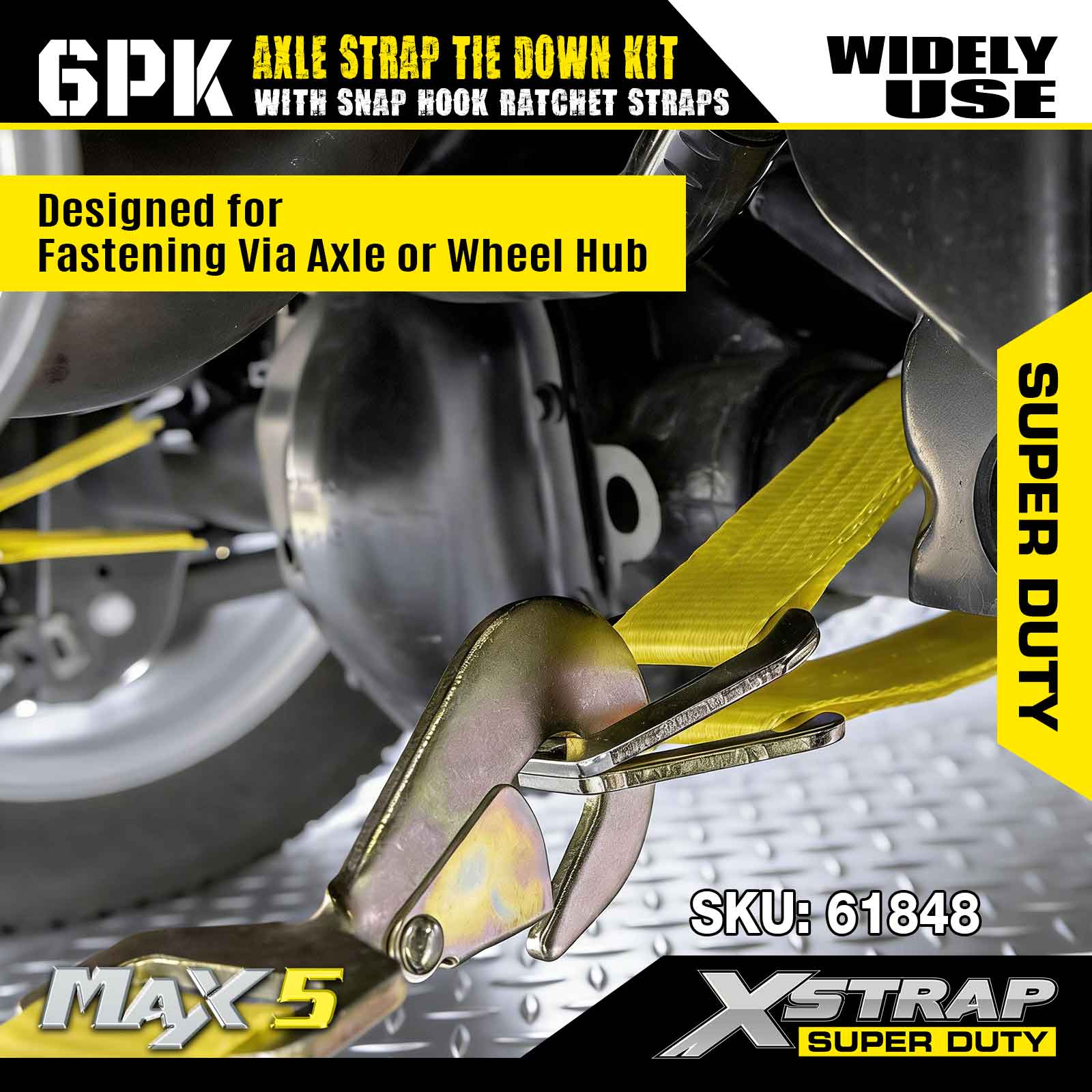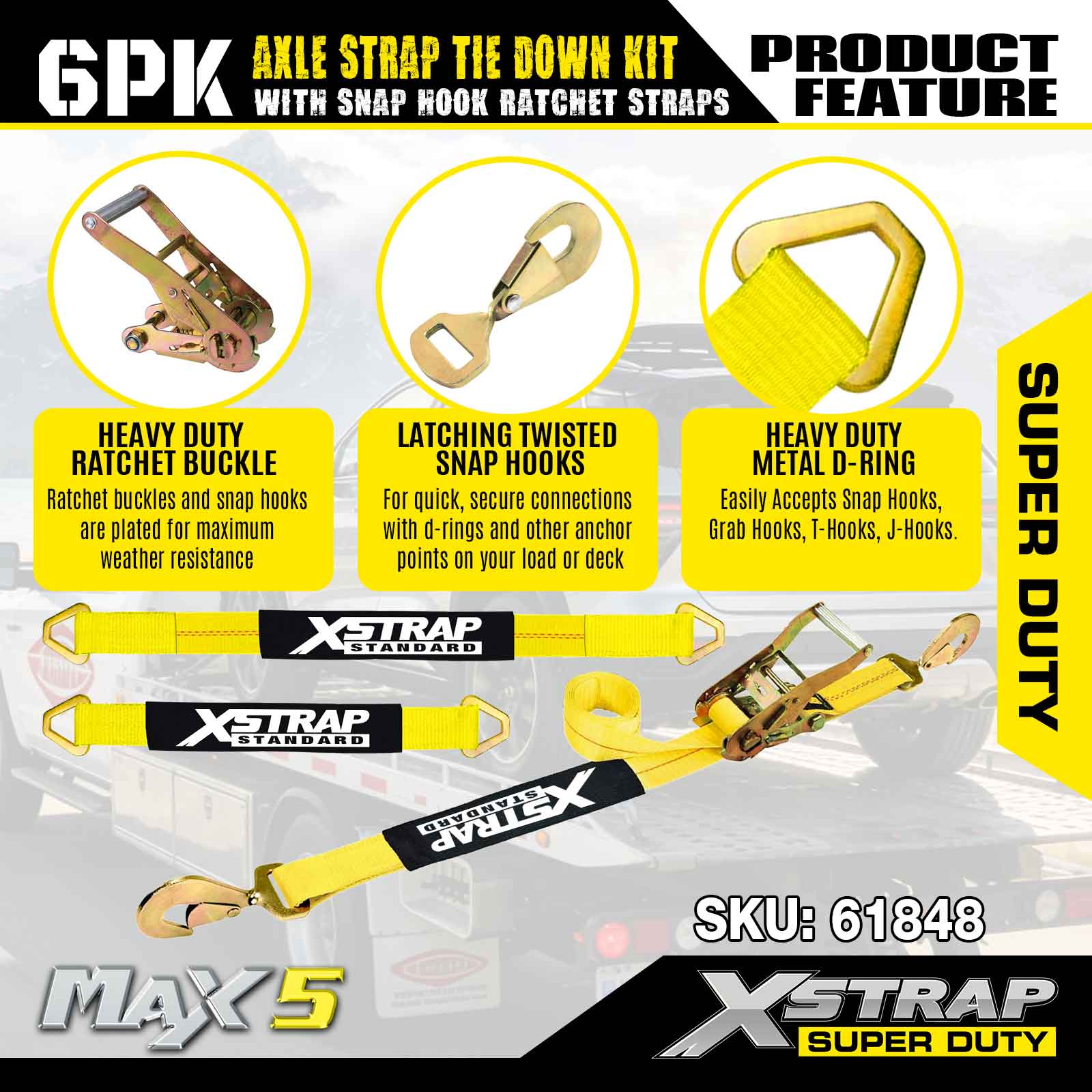 Xstrap 6PK komplet za pričvršćivanje remena za osovinu (s karabinom s čegrtaljkom) – Super Duty. Ima sigurno radno opterećenje od 3,300 LBS (1,496 KG) i čvrstoću na prekid od 9,900 LBS (4,490 KG).