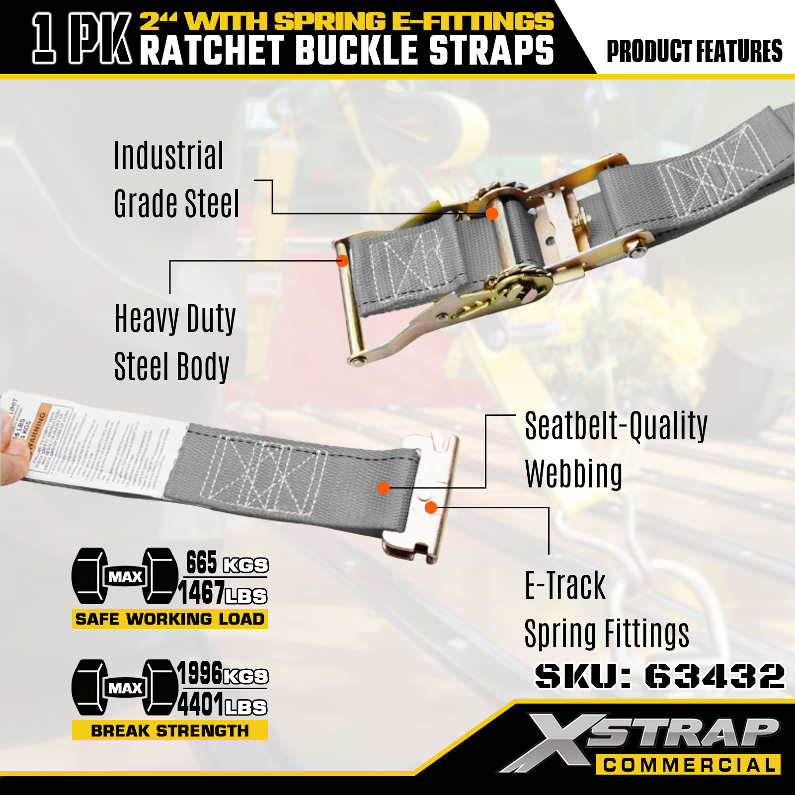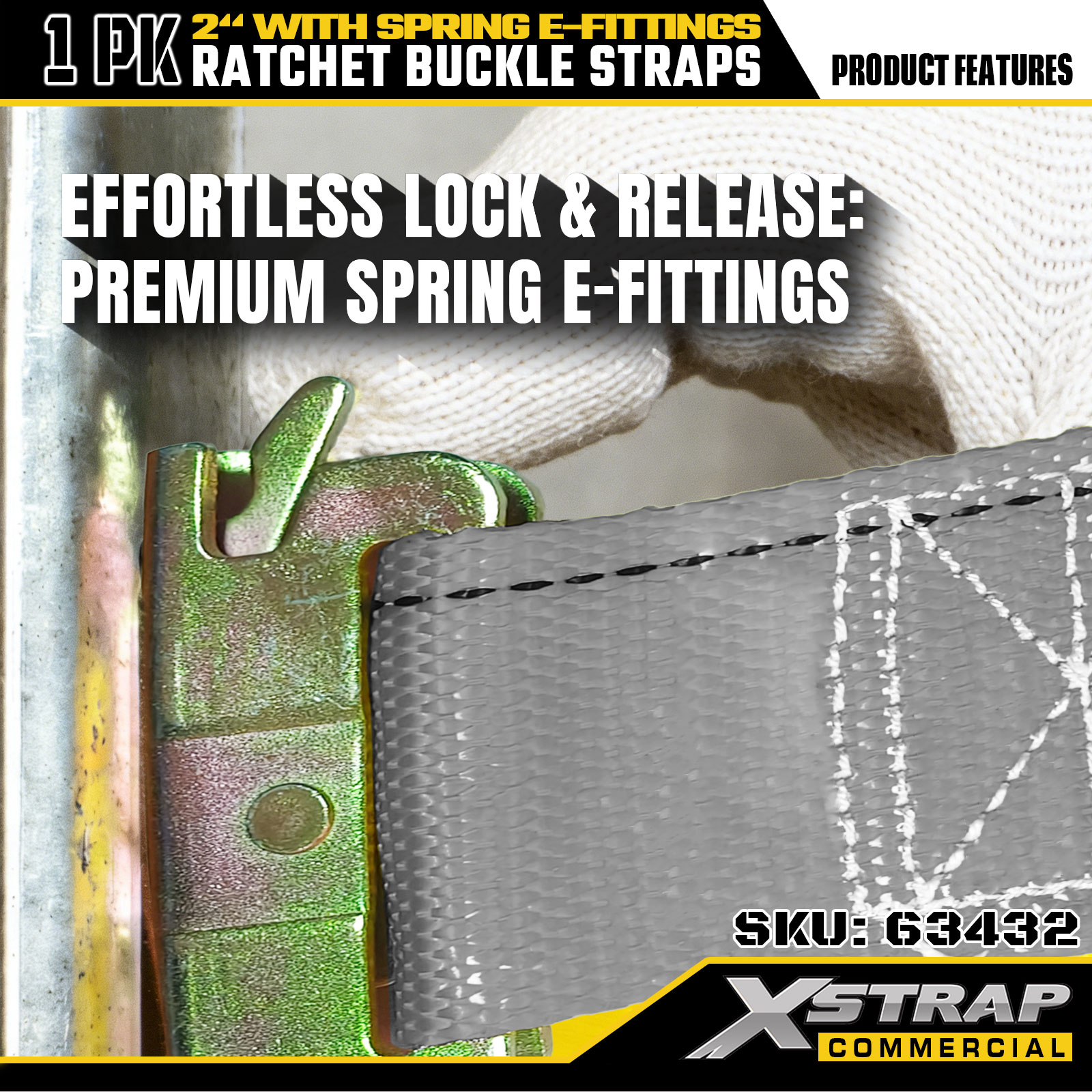Xstrap 1-Paket traka za pričvršćivanje s čegrtaljkom, 2" x 16' poliesterskih traka za pričvršćivanje tereta, 1467 lbs sigurno radno opterećenje i 4401 lbs otpornost na lomljenje, s opružnim e-priključcima za kamione, kosilice, terenska vozila
