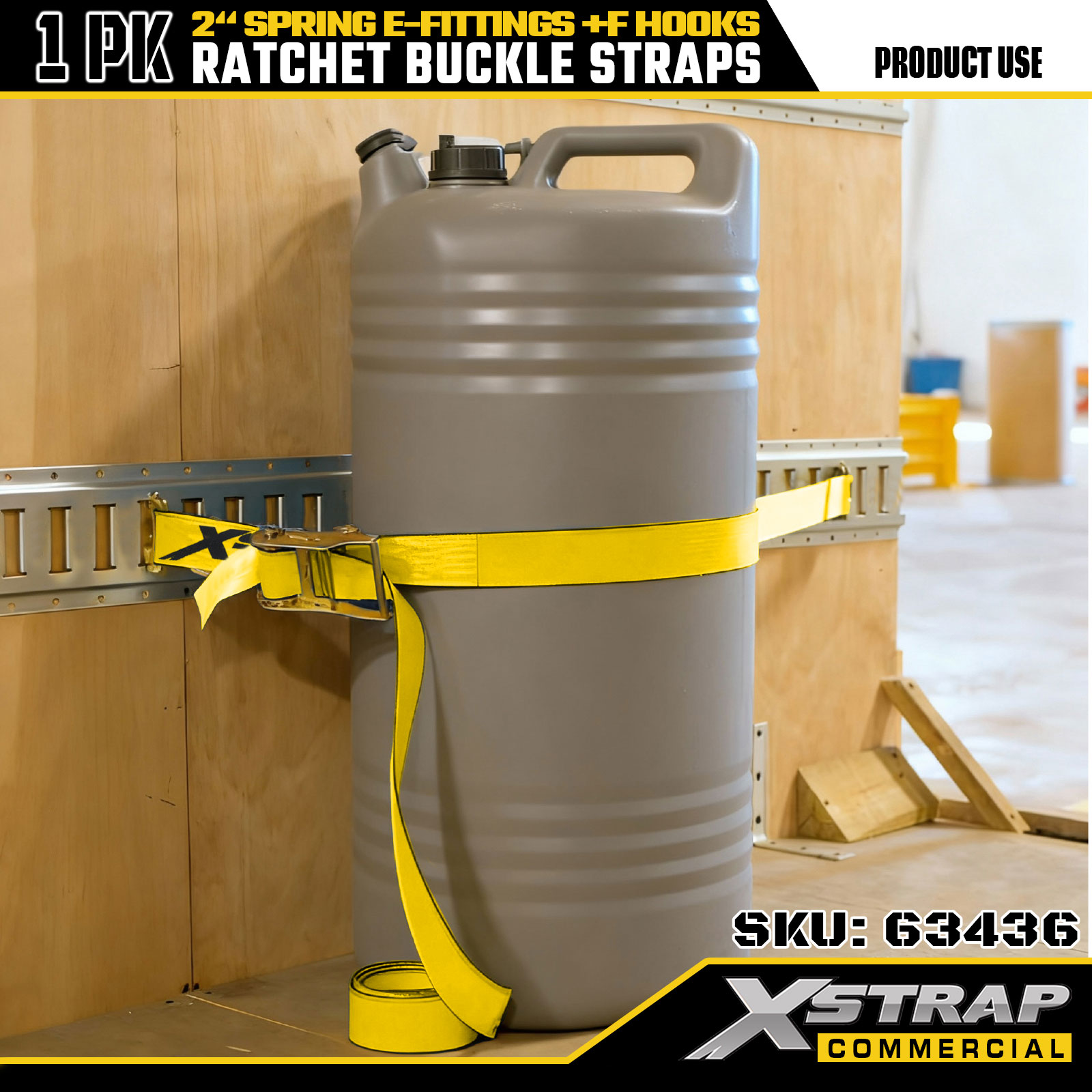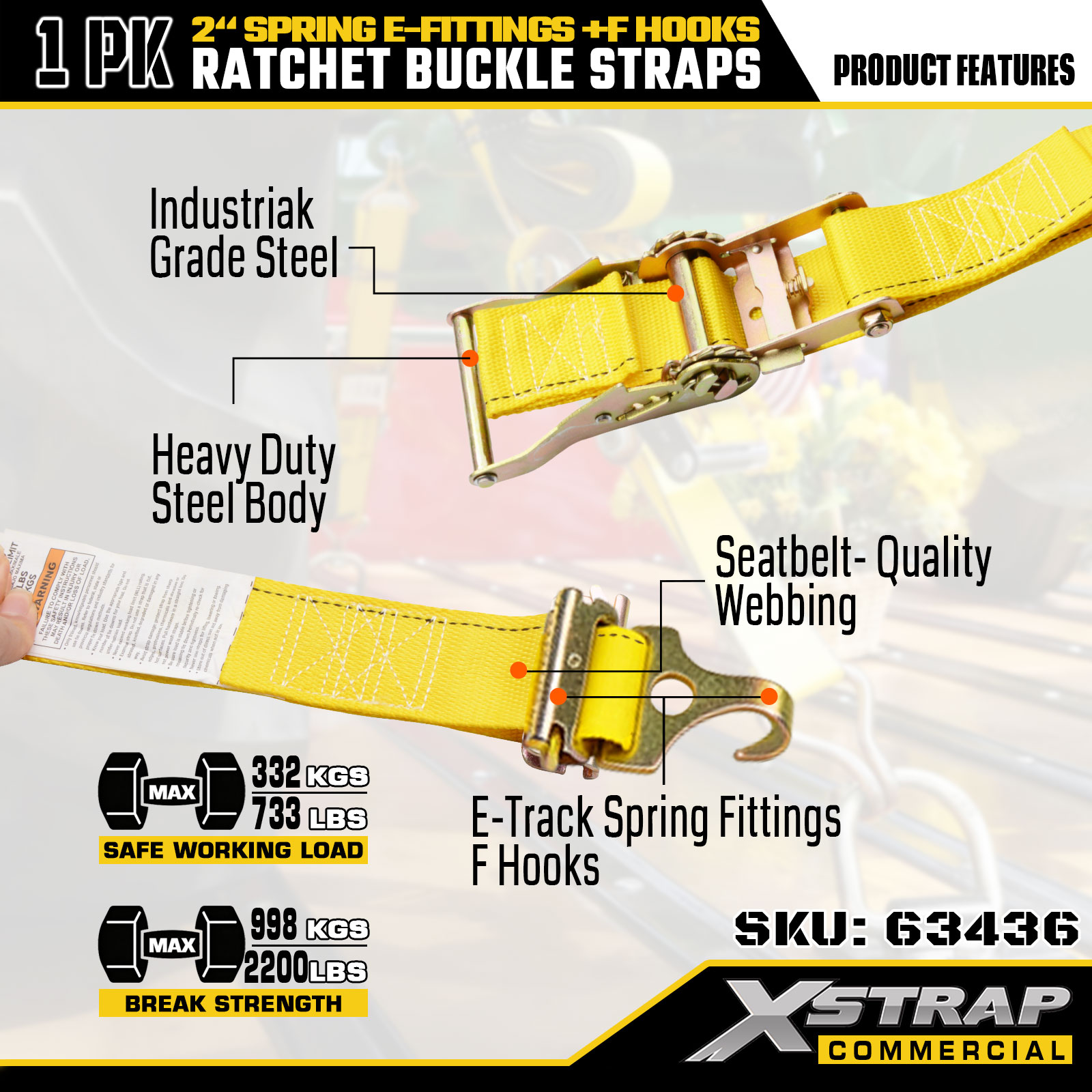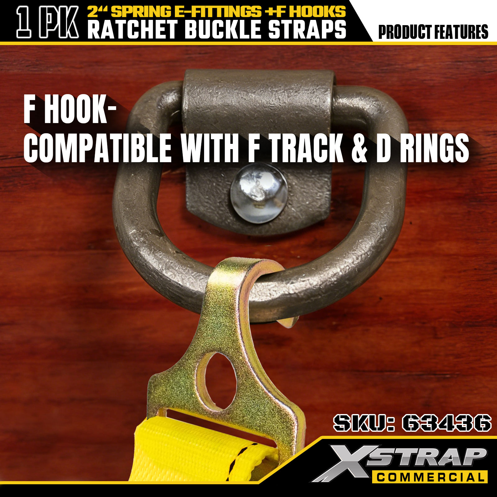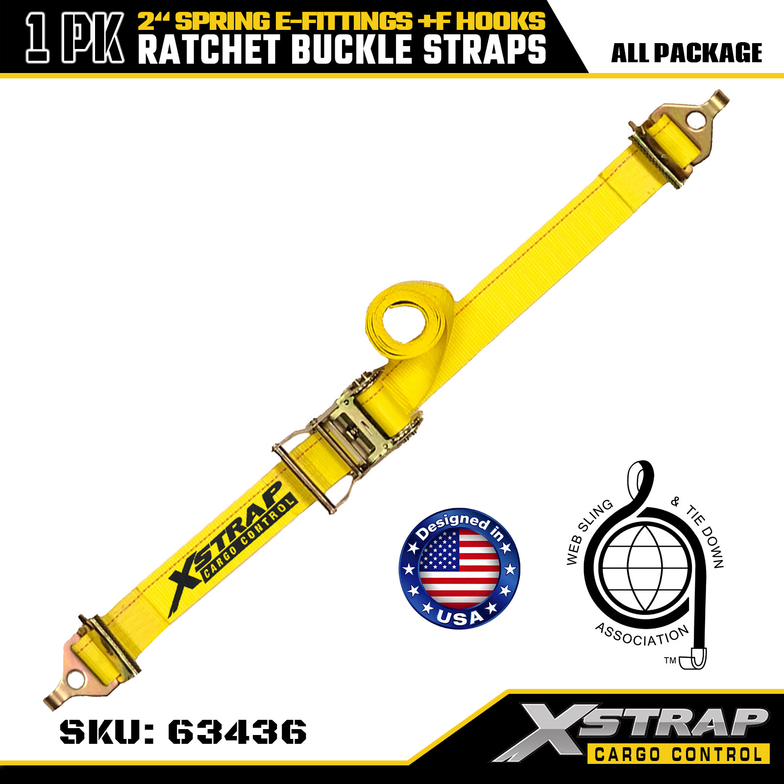 Xstrap 1-paket traka za pričvršćivanje s čegrtaljkom, 2" x 12' pričvrsnice za teške terete s opružnim E-priključcima i F kukama (žute), 733 lbs nosivosti za prikolice, kamione, kombije i osiguranje motocikala