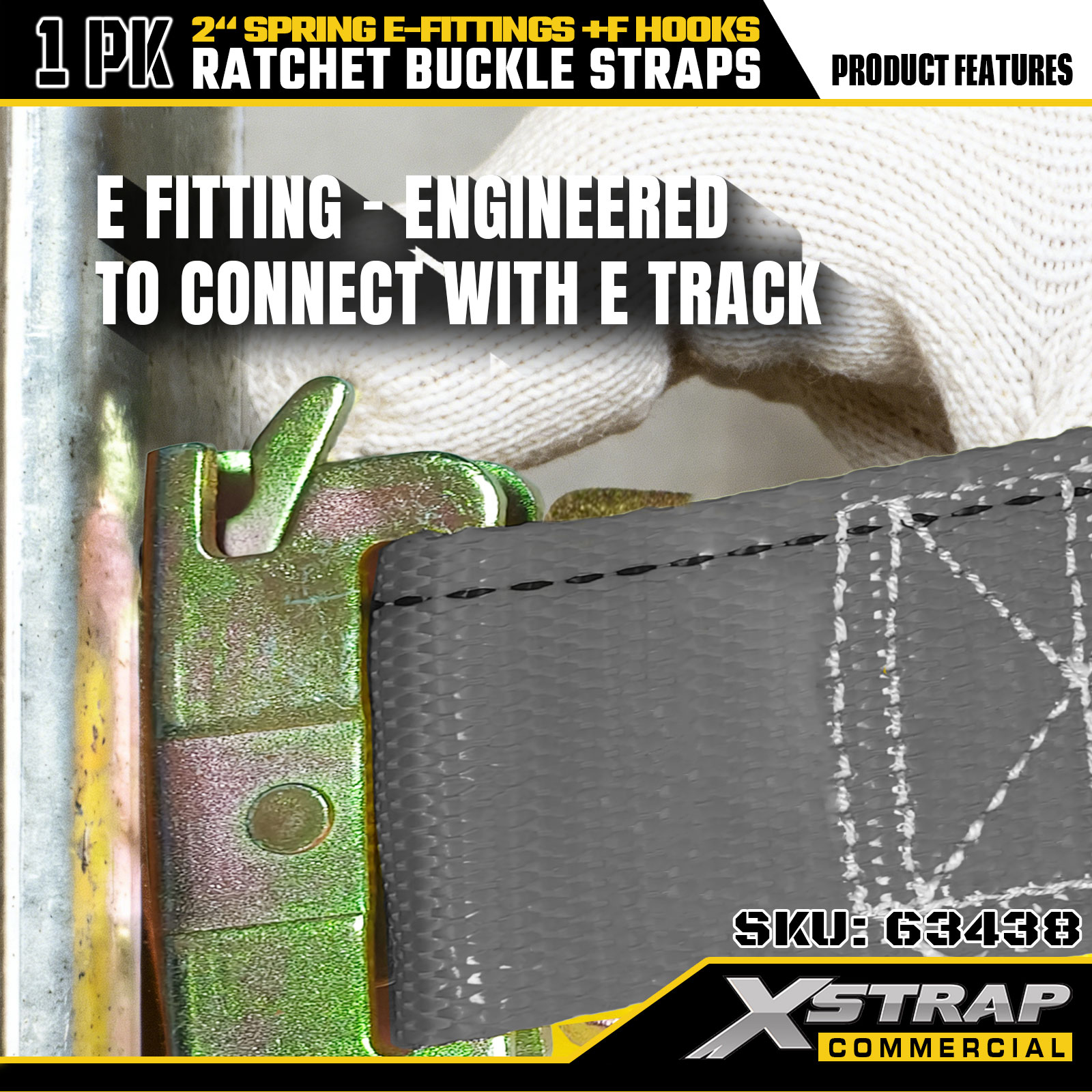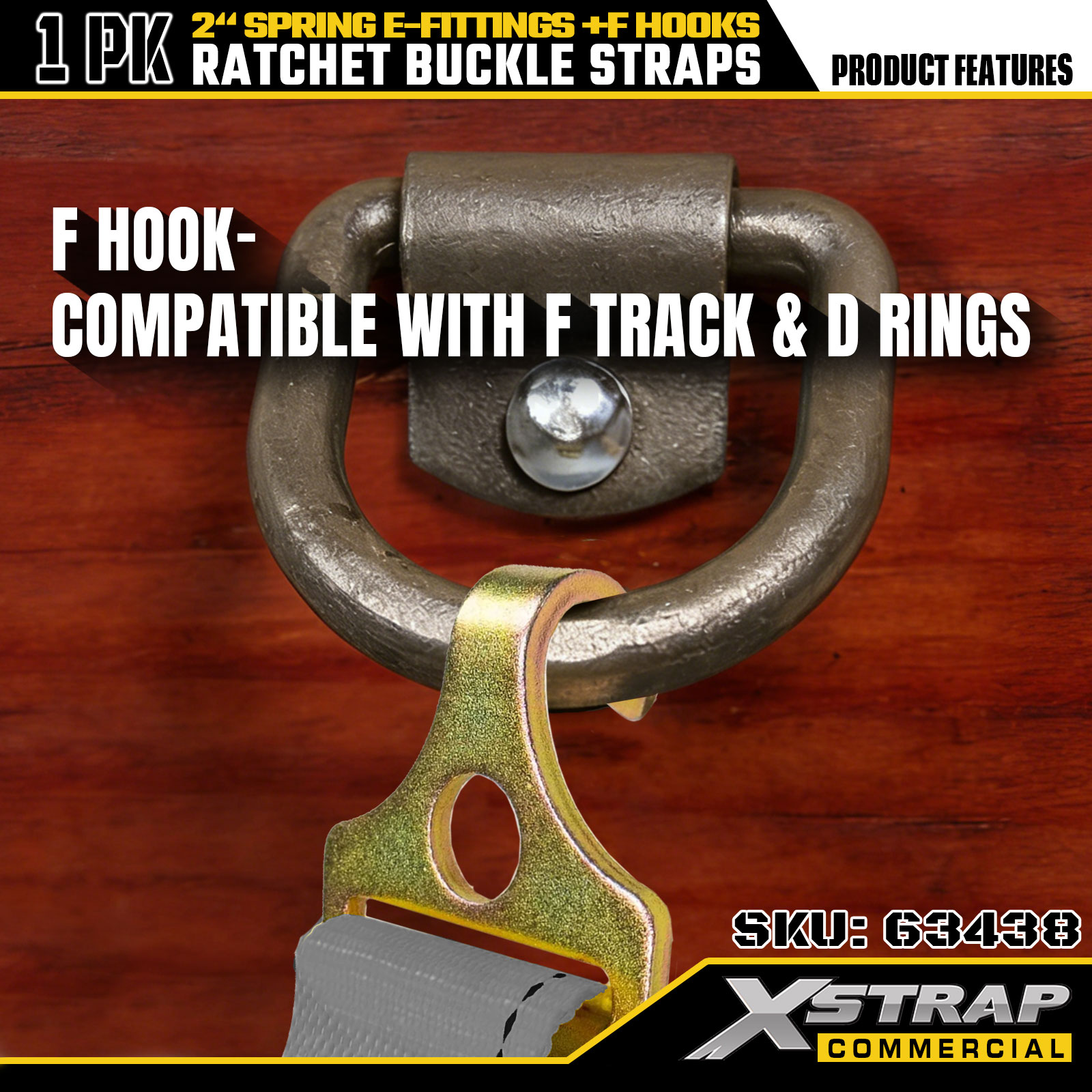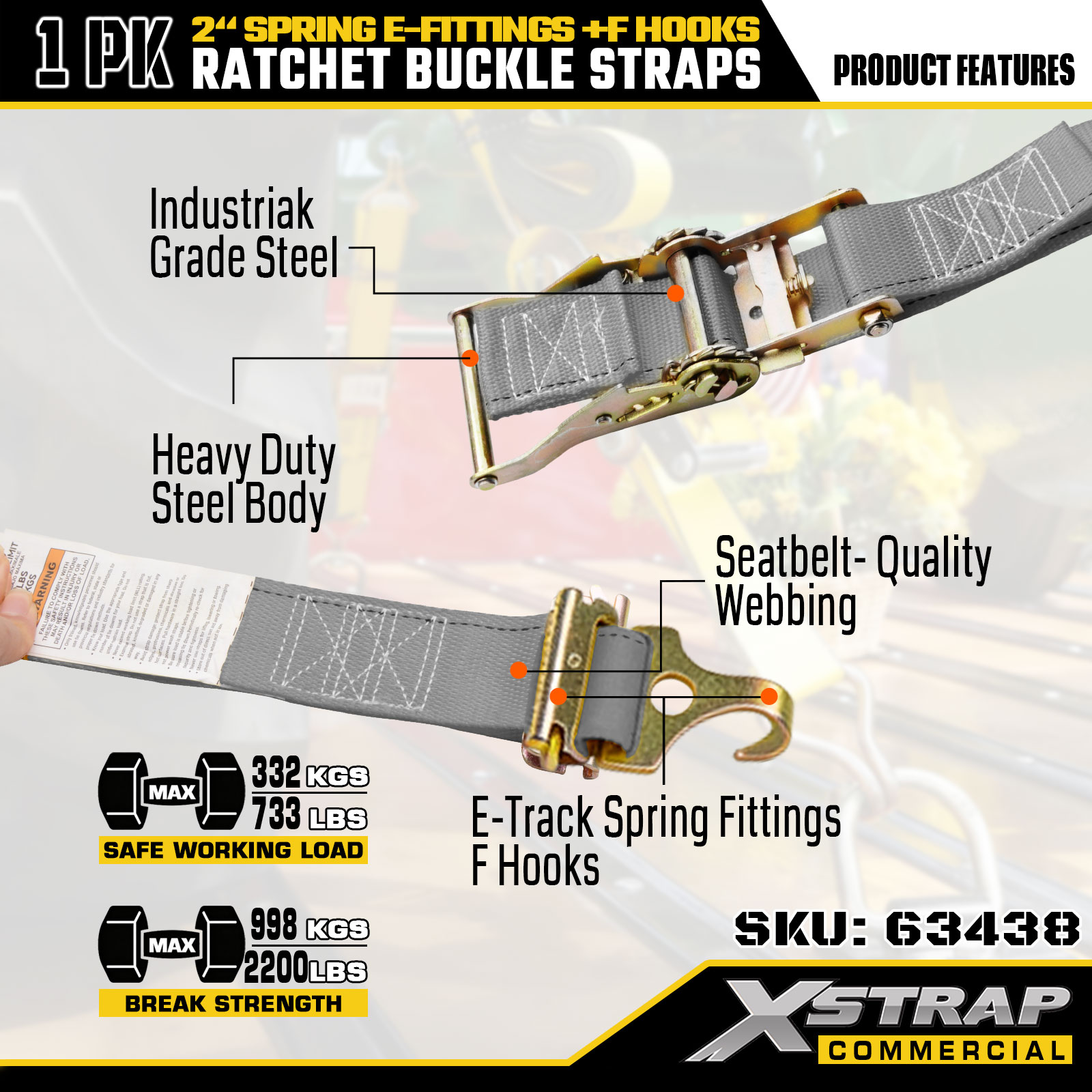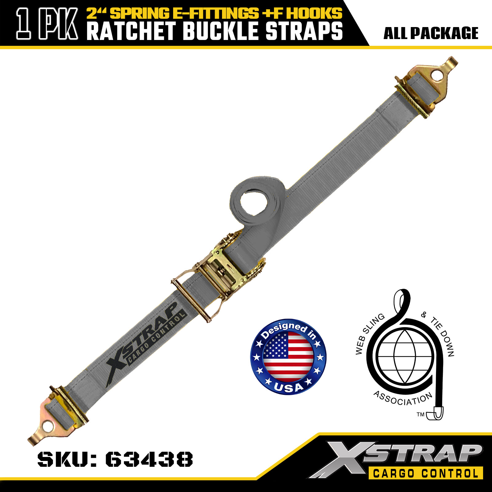 Xstrap 1 paket traka za vezivanje s čegrtaljkom 2" x 16' poliester s opružnim E-priključcima i F kukama, 733 lbs SWL i 332 lbs čvrstoće na kidanje za kamione, pokretne, opće teretne prijevoze