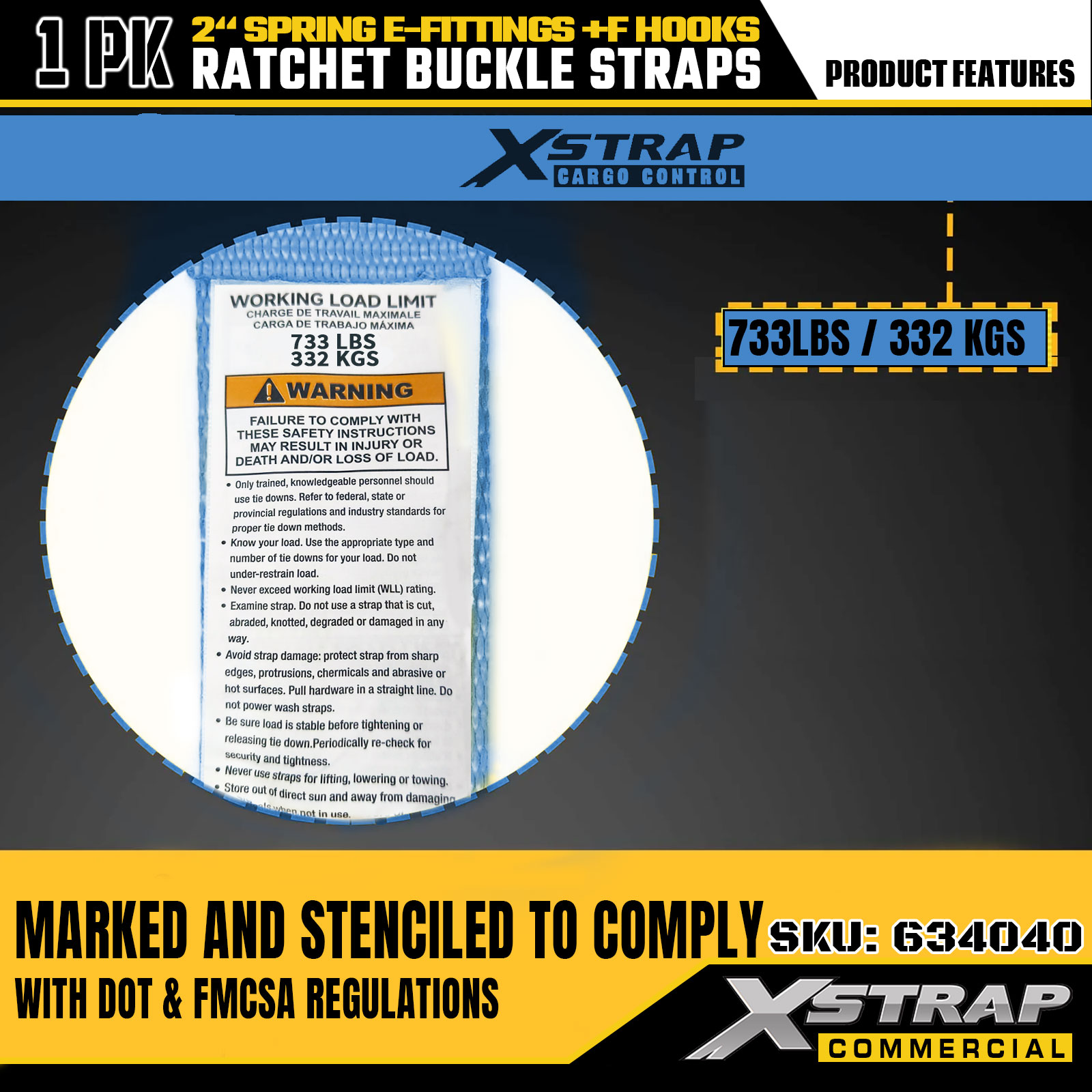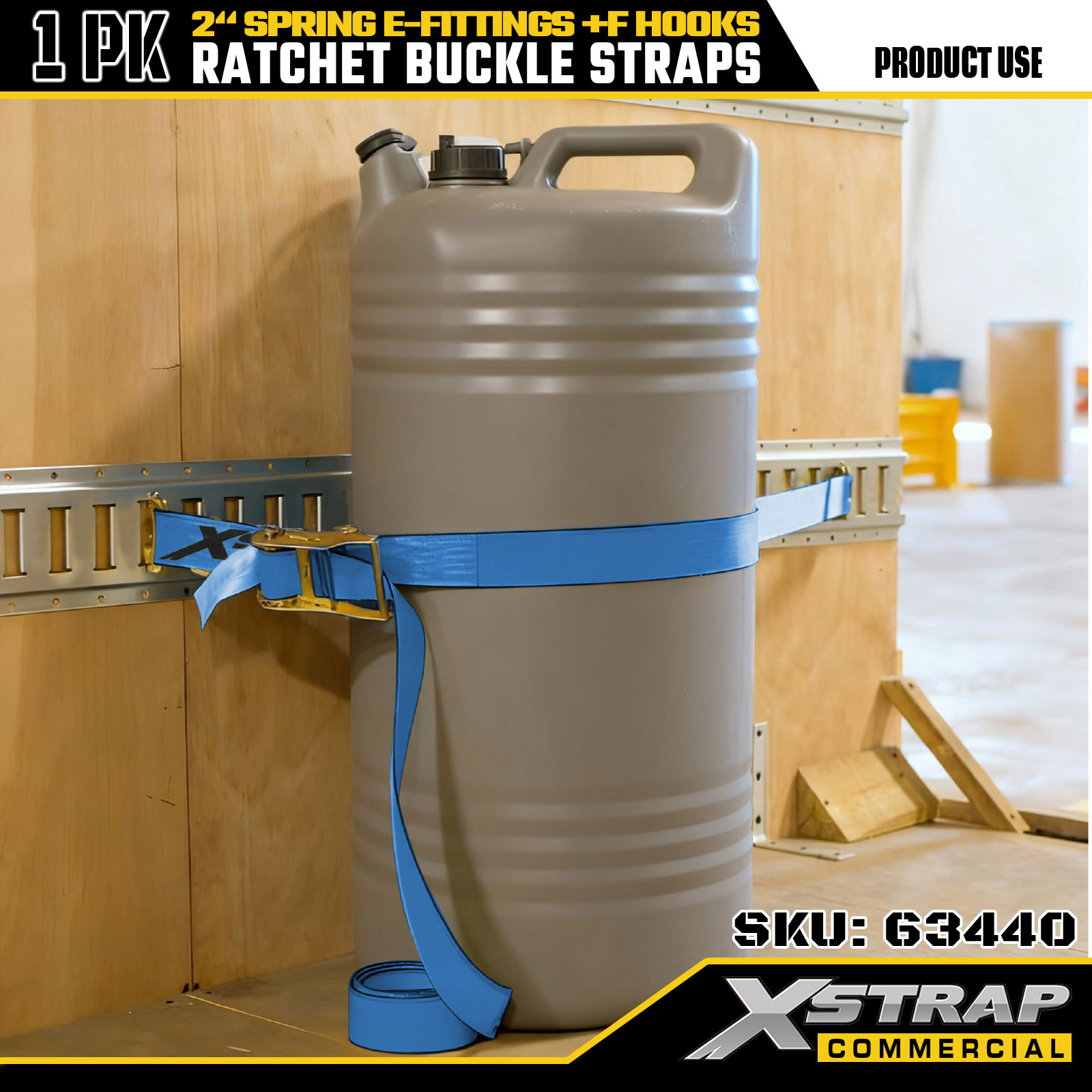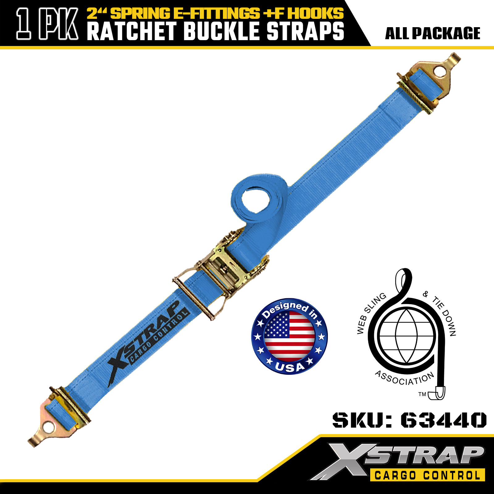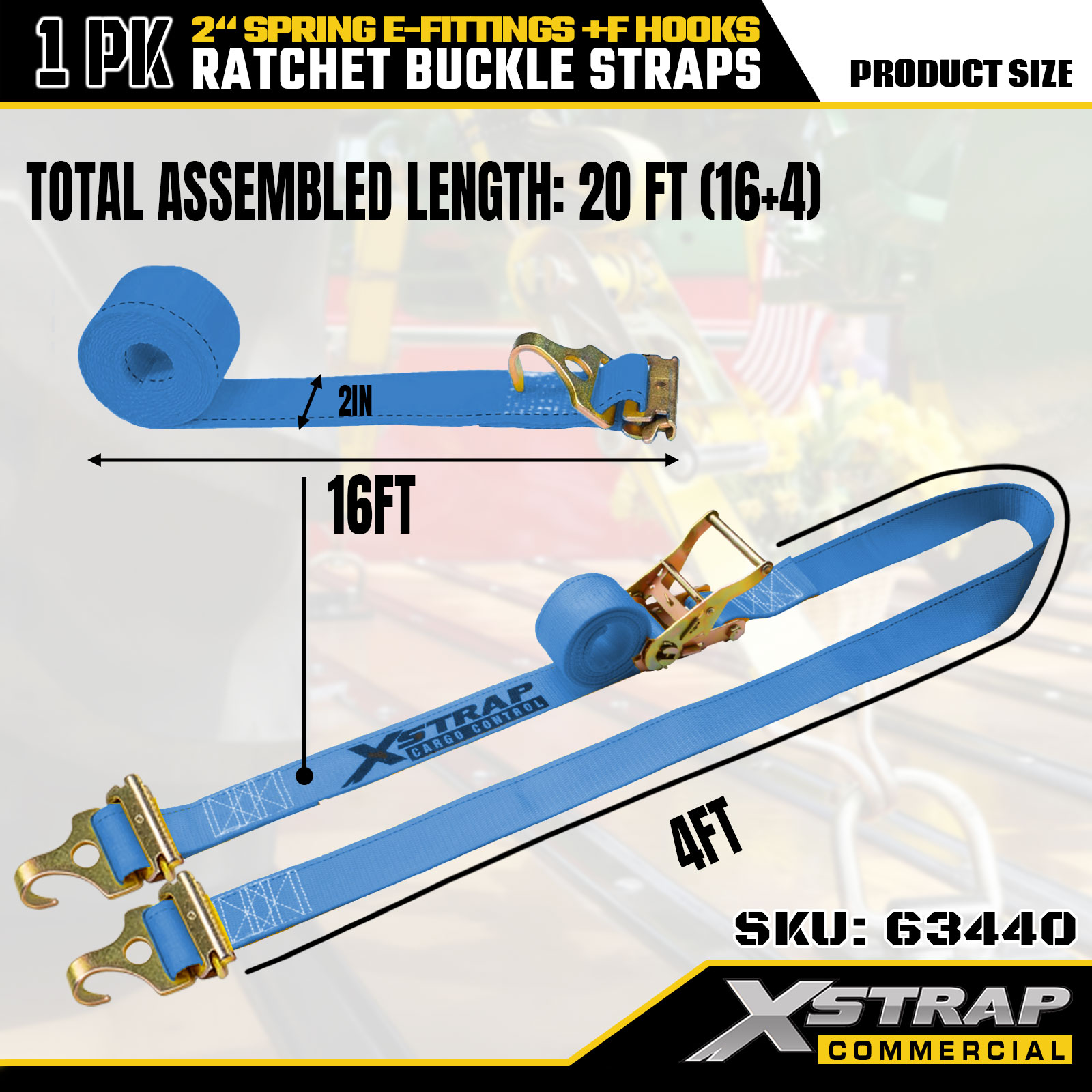 Xstrap 63440 Remen s čegrtaljkom za teške uvjete rada 2" x 20' (1PK) - plava traka, opružni E-priključci i F kuke, 733 lbs SWL za selidbu, prijevoz tereta i upotrebu kamiona