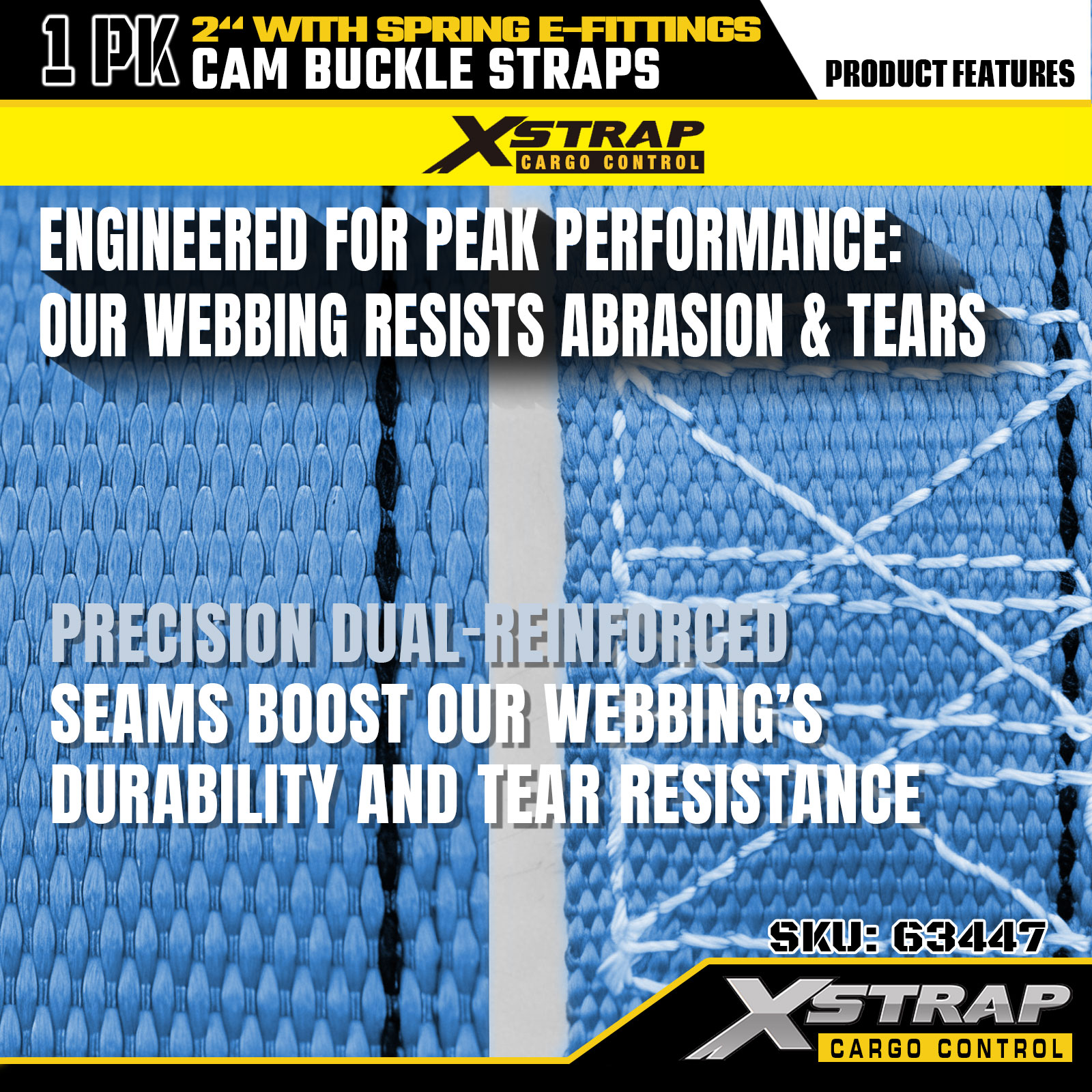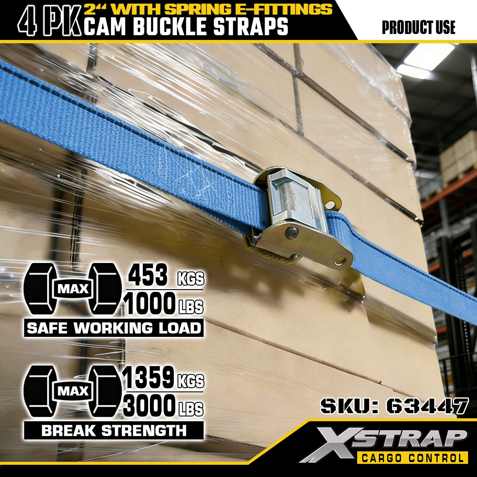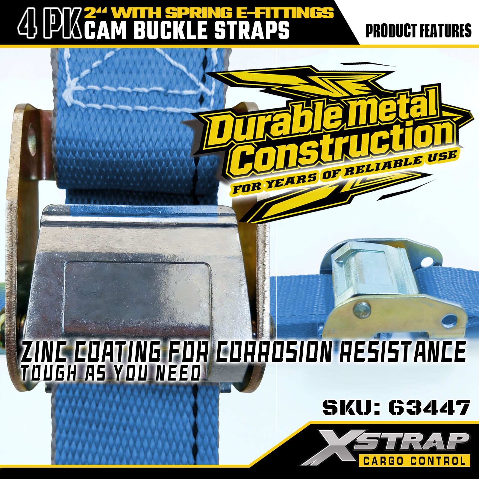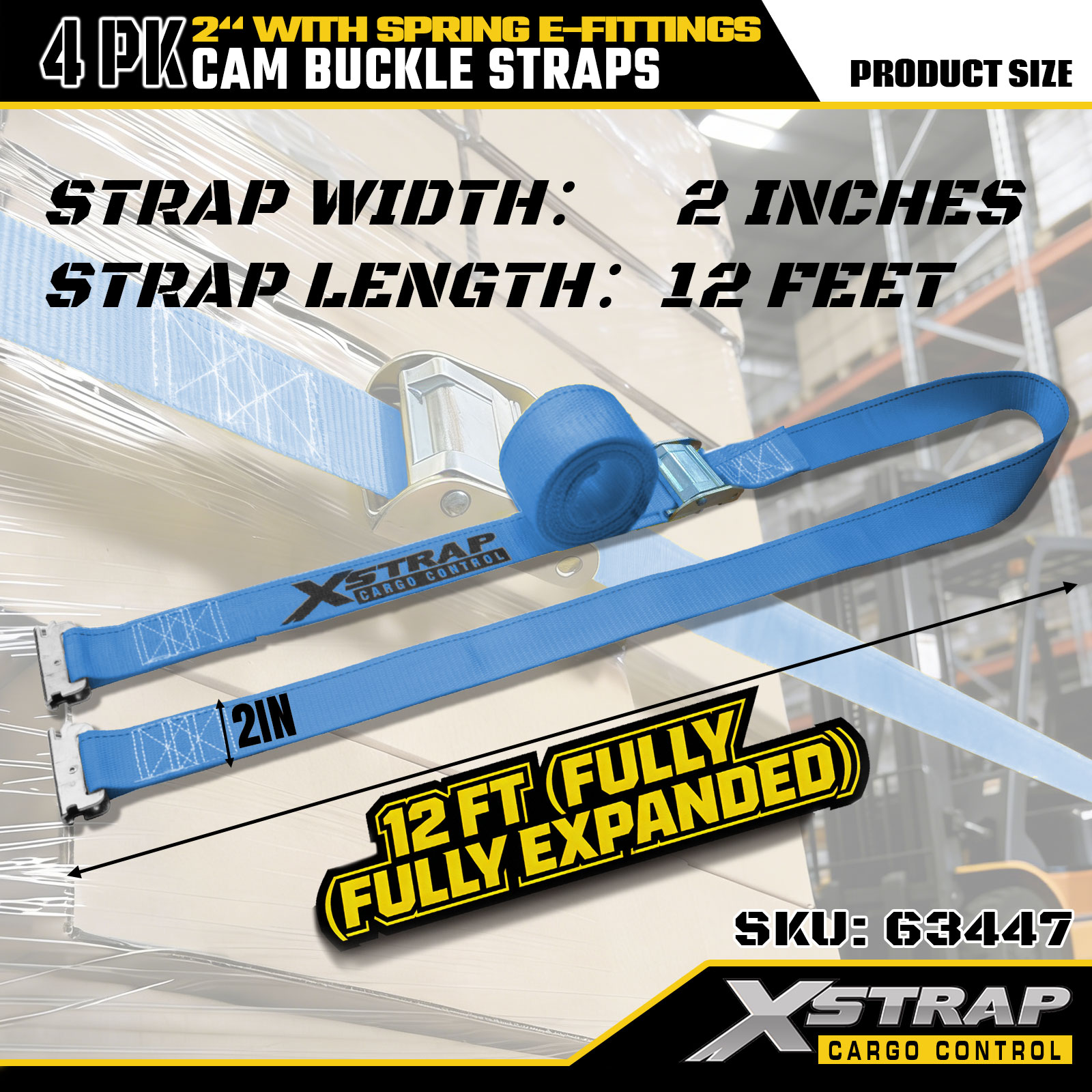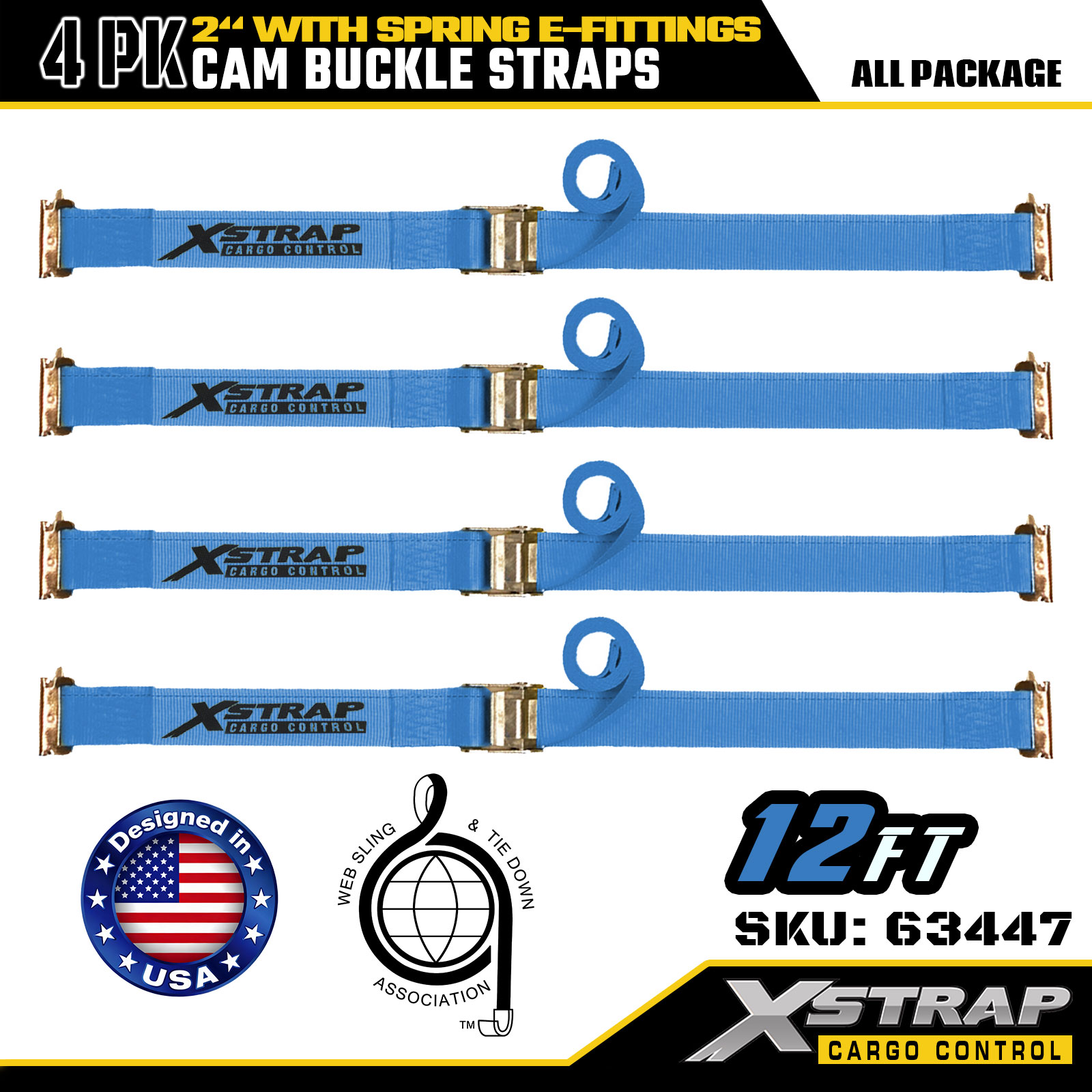 Xstrap 63447 4 paketa 2" x 12' plave trake s čegrtaljkom s opružnim E-priključcima i F kukama, 733 lbs SWL i 332 lbs otpornost na prekid za kontrolu tereta, premještanje i transport