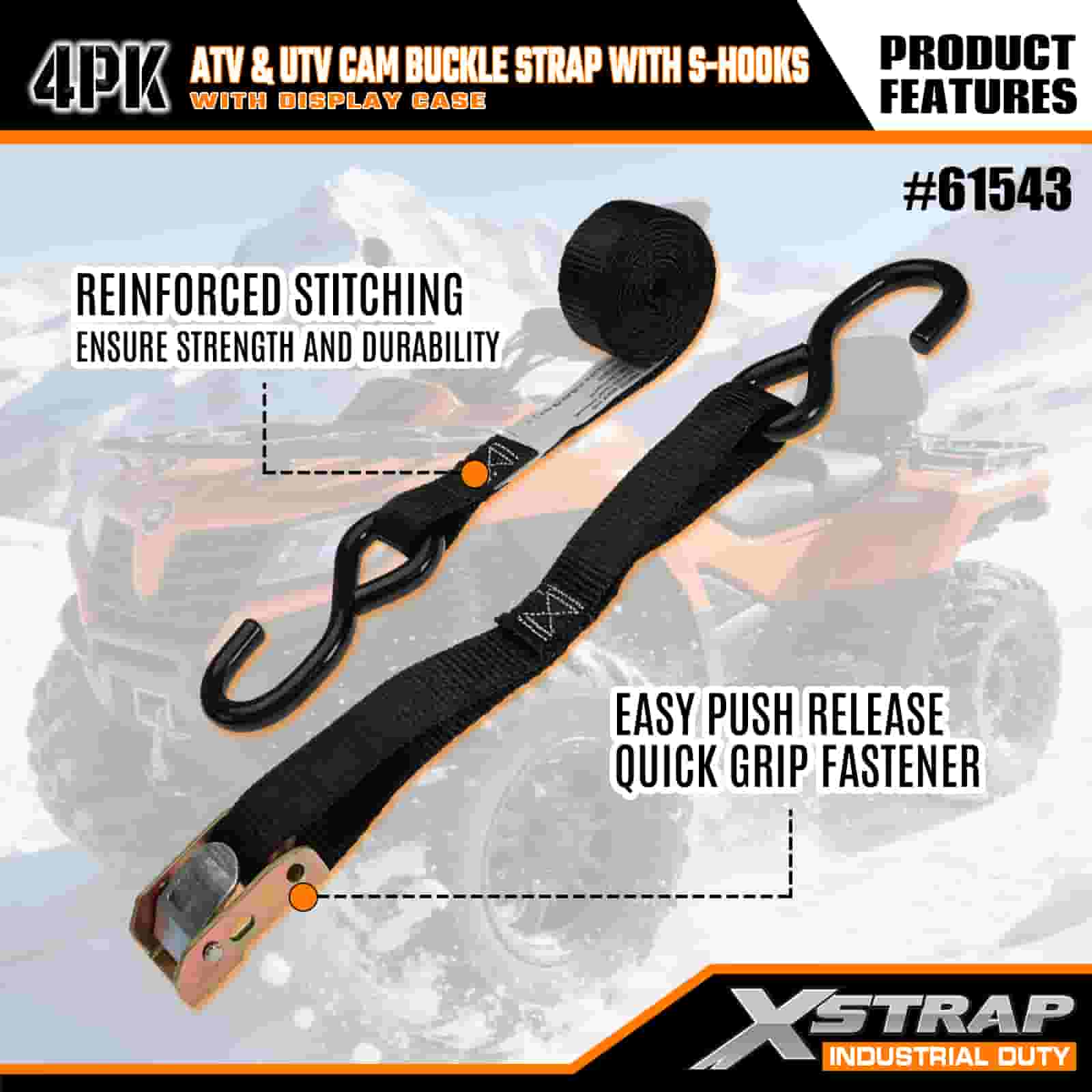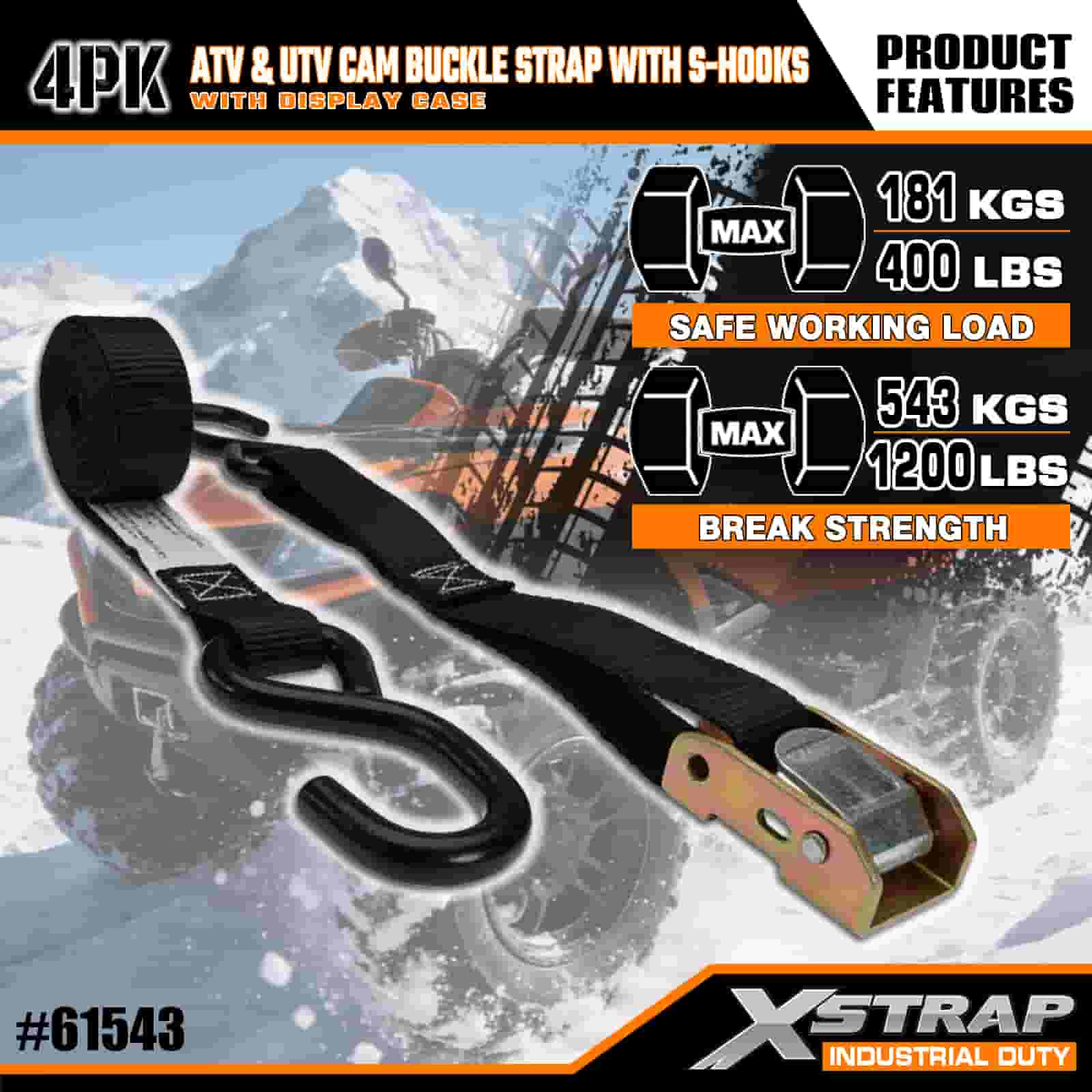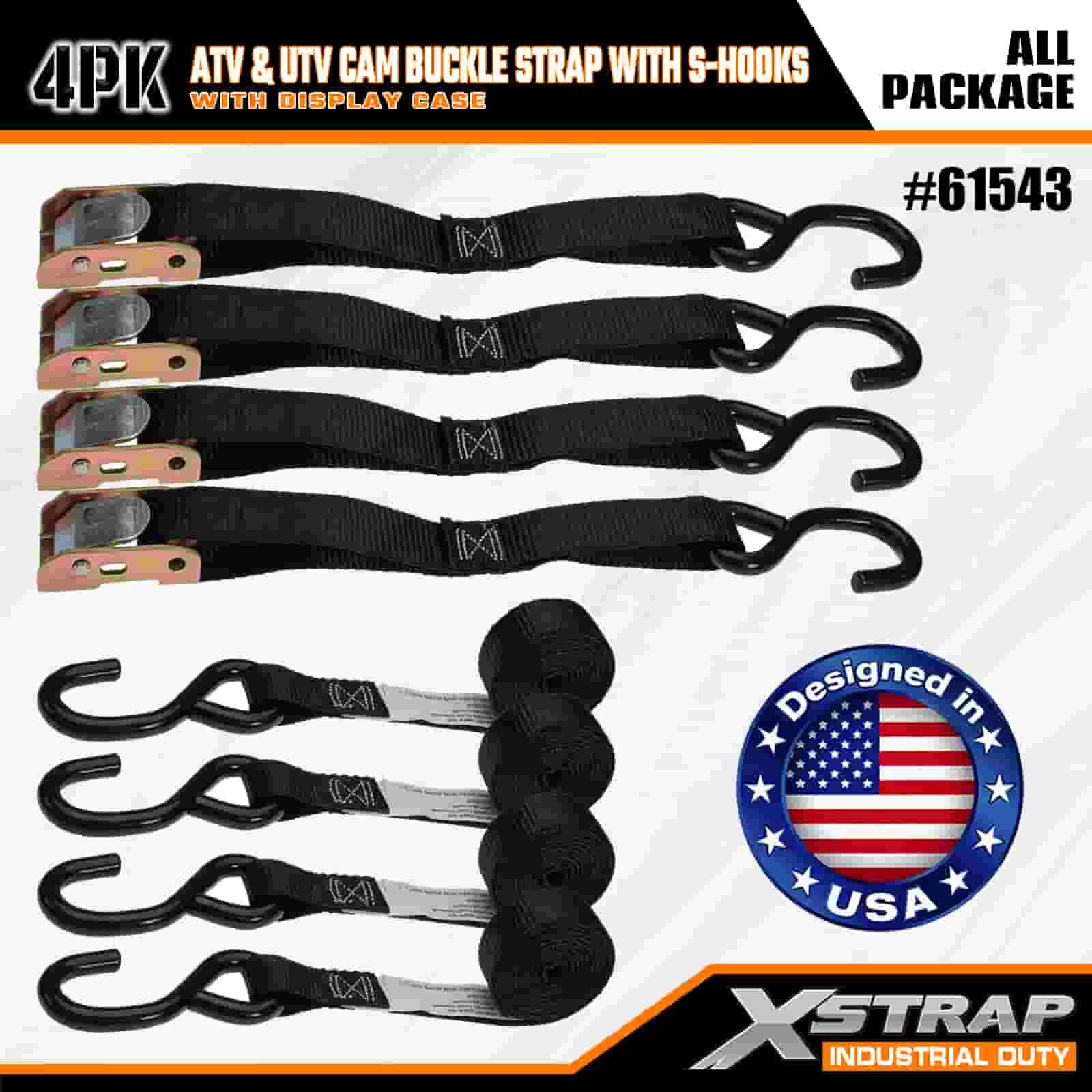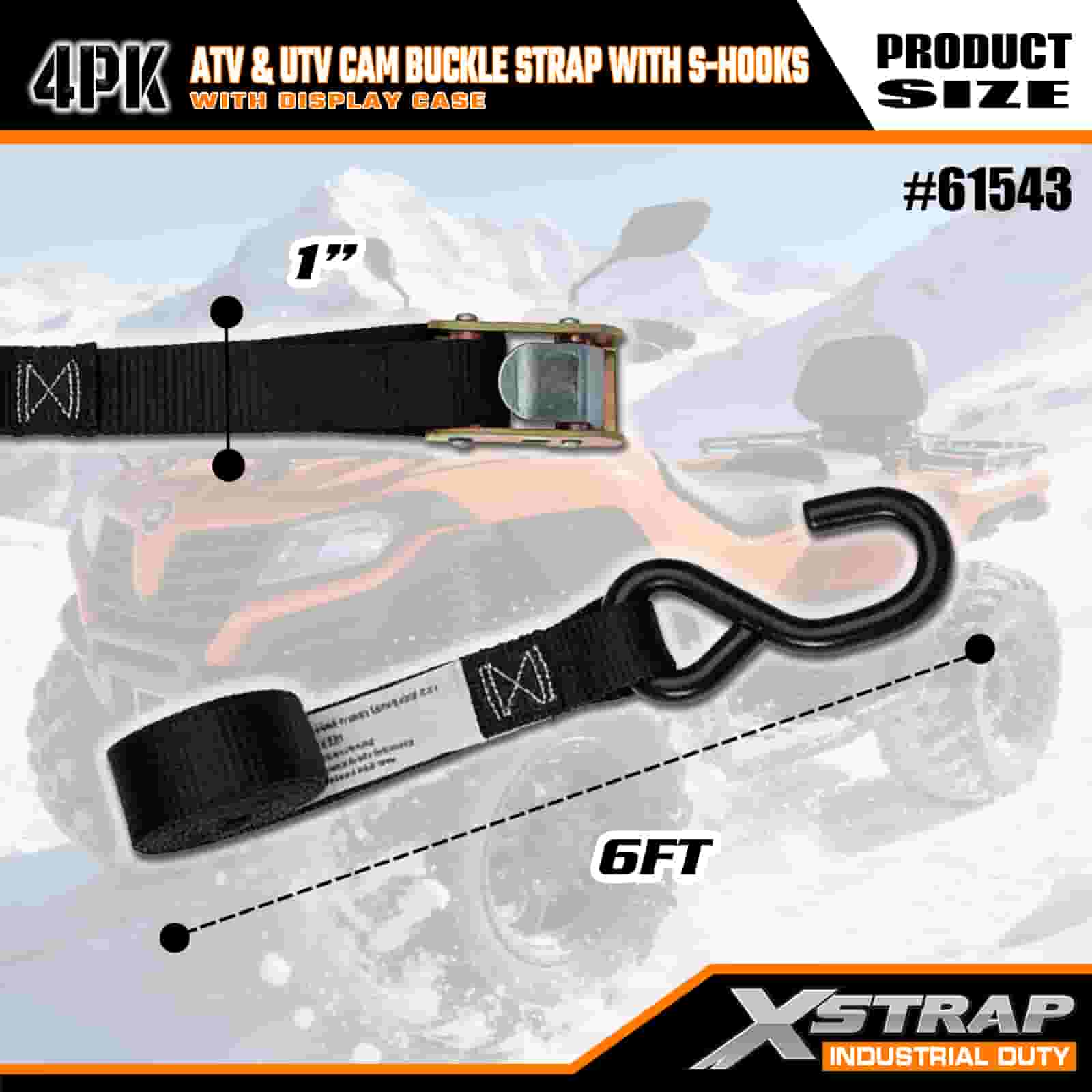 Xstrap 4PK ATV & AUV remen s kopčom sa S kukama, 1” x 6’ poliesterski remen za pričvršćivanje, remen s kopčom s čegrtaljkom, kapacitet 400 lbs Trake za pričvršćivanje tereta sa S kukom za ozbiljnog profesionalca za pričvršćivanje teretne prikolice, prikolice s ravnim krevetom, skijaškog čamca, malog automobila.
