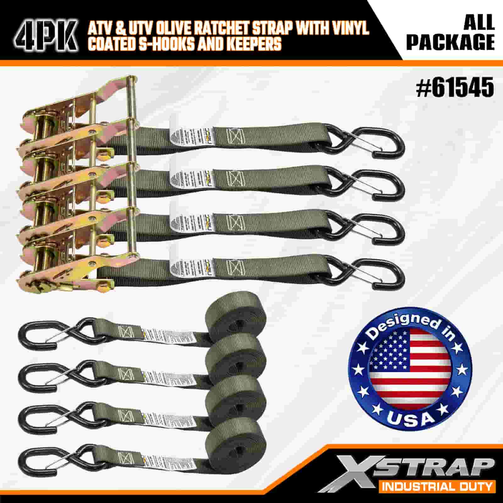 Xstrap 4PK remen s čegrtaljkom sa sigurnosnim S kukama obloženim vinilom, 1” x 8’ poliesterski remen za vezivanje, remen s čegrtaljkom kapaciteta 833 lbs Kapacitet trake za pričvršćivanje tereta sa sigurnosnim S kukama za prikolicu za teške uvjete, prikolicu s ravnim krevetom, skijaški čamac, mali automobil, tešku opremu.