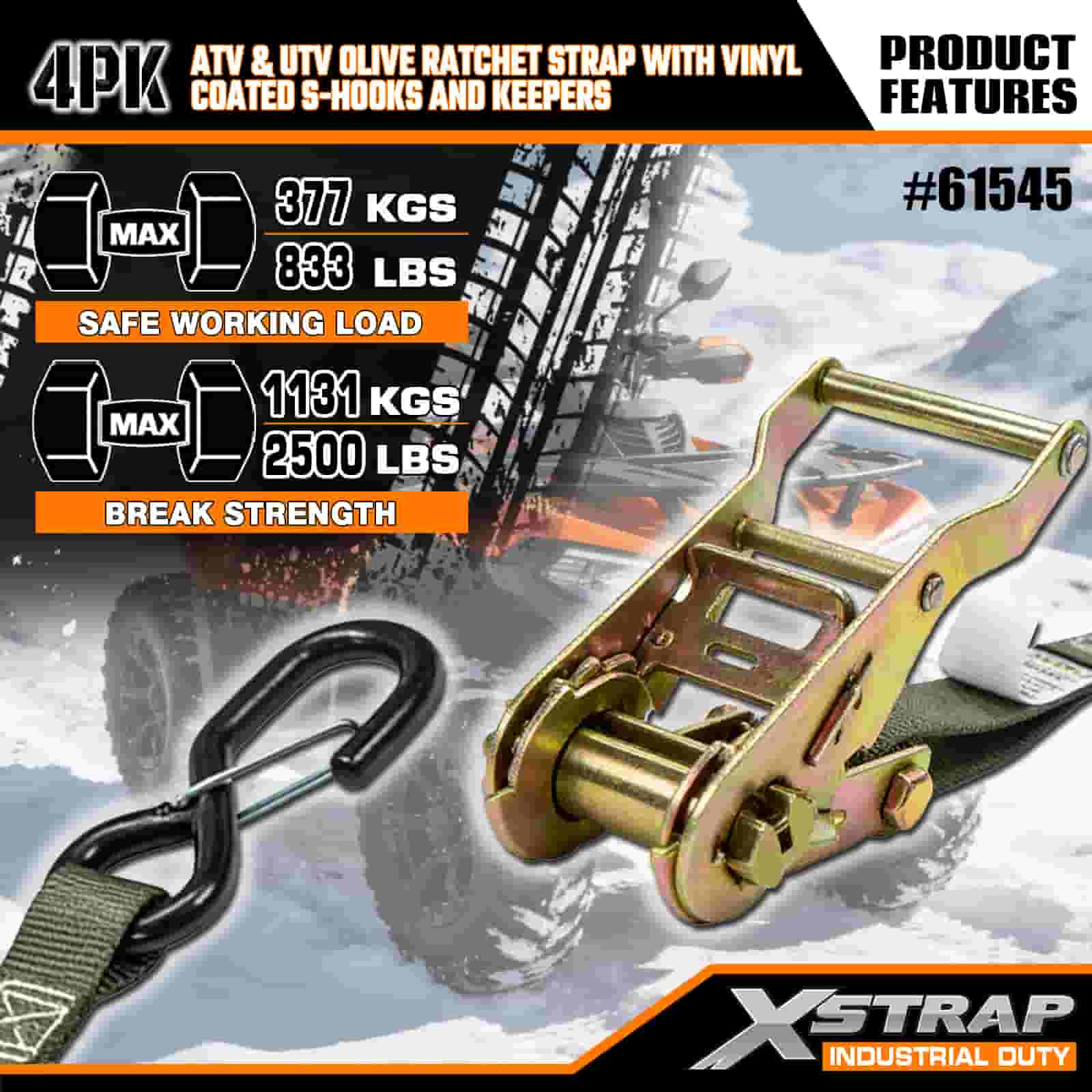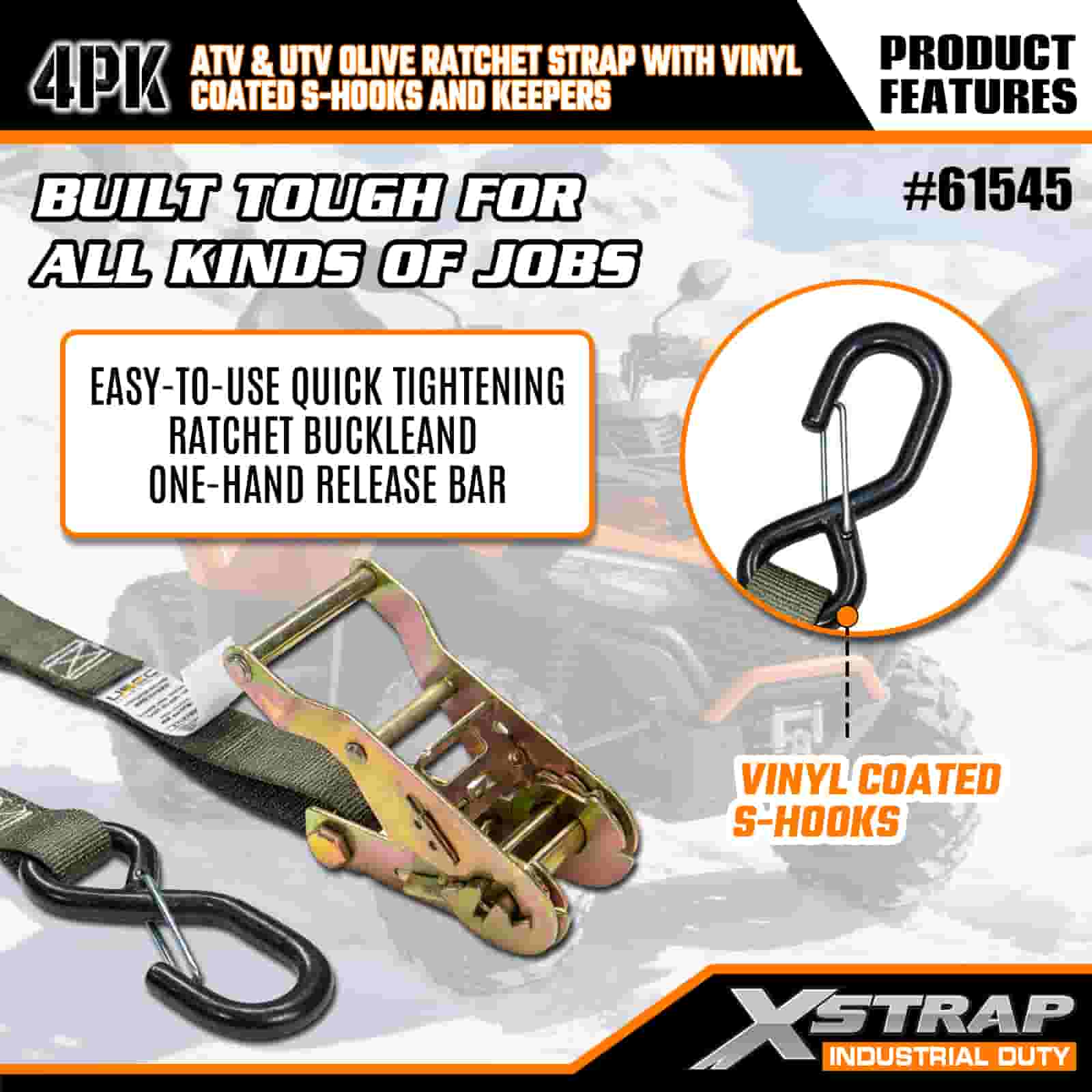 - Paket od 4 komada za potpunu pokrivenost: ovaj set uključuje 4 remena, što vam daje dovoljno za pričvršćivanje prednje i stražnje strane vašeg ATV-a ili UTV-a. Duljina od 8 stopa odgovara krevetima kamiona, prikolicama ili točkama za pričvršćivanje, tako da svaki put možete imati stabilan položaj.