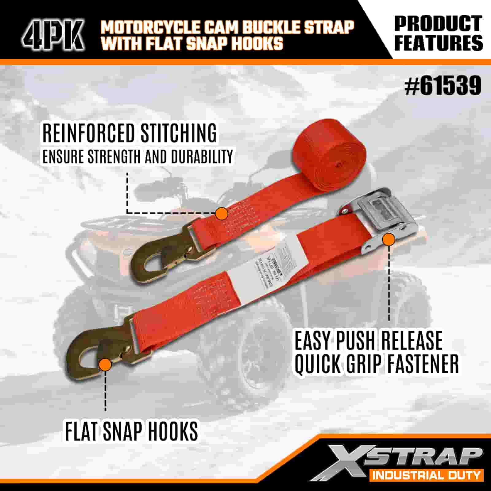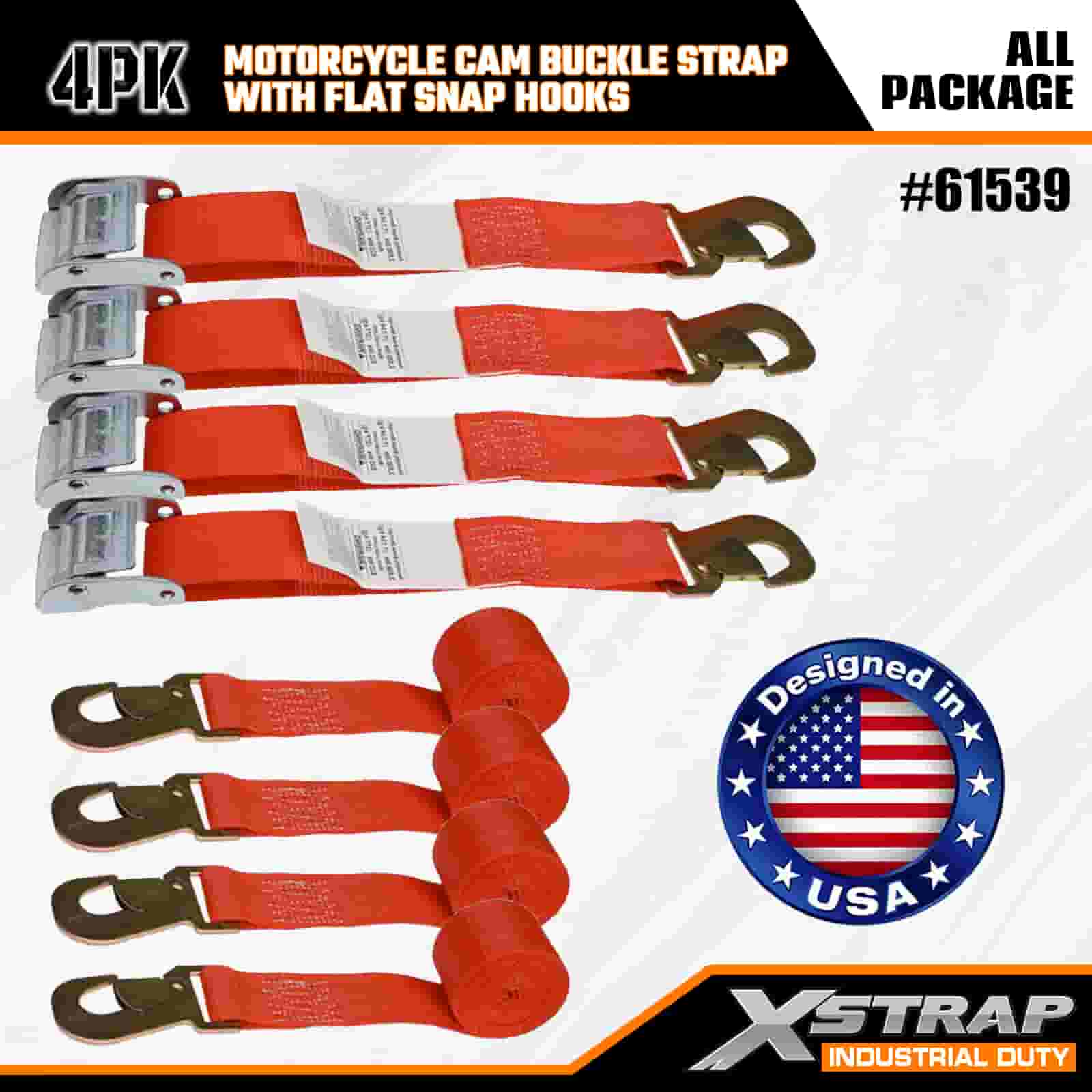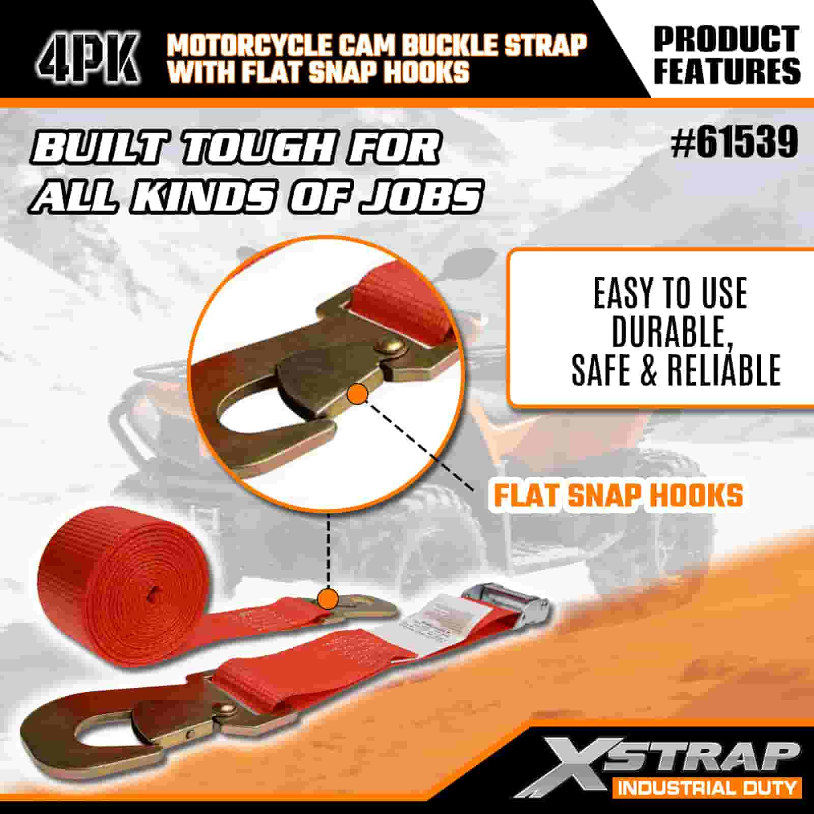 Xstrap 4PK remen s kopčom za motocikle s ravnim karabinom, 2” x 8’ poliesterski remen za pričvršćivanje, remen s kopčom s čegrtaljkom, nosivost 400 lbs Trake za pričvršćivanje tereta s ravnom karabinom za ozbiljne profesionalce za pričvršćivanje teretne prikolice, prikolice s ravnim krevetom, skijaškog čamca, malog automobila.