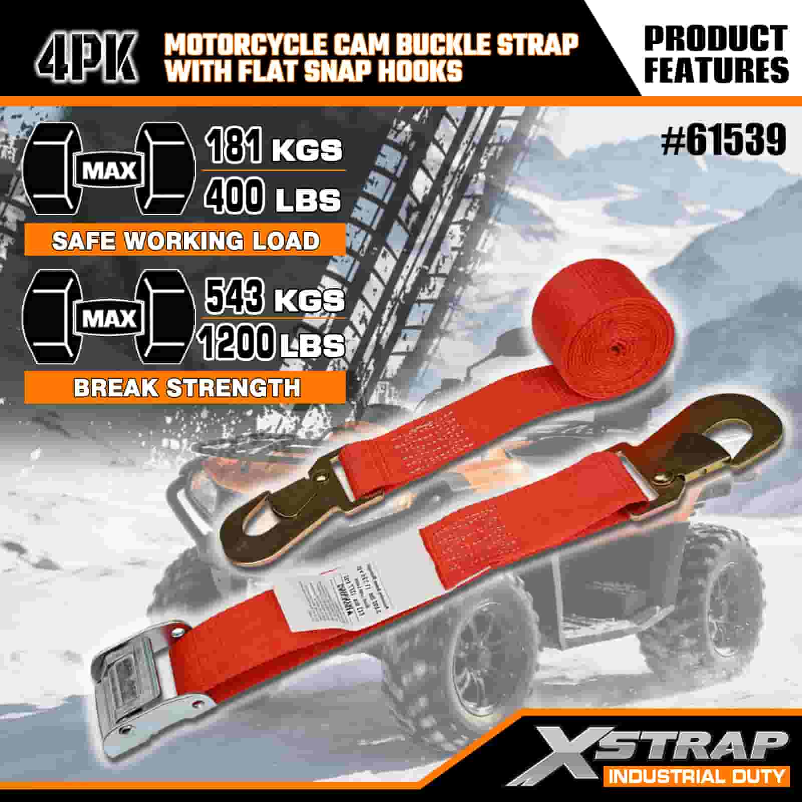 - Certificirane vrijednosti nosivosti (bez nagađanja): Svaki remen jasno prikazuje sigurno radno opterećenje od 181 KGS/400 LBS i prekidnu čvrstoću od 543 KGS/1200 LBS (zadovoljava sigurnosne standarde u transportu). Nikada se nećete pitati je li vaš motocikl siguran.