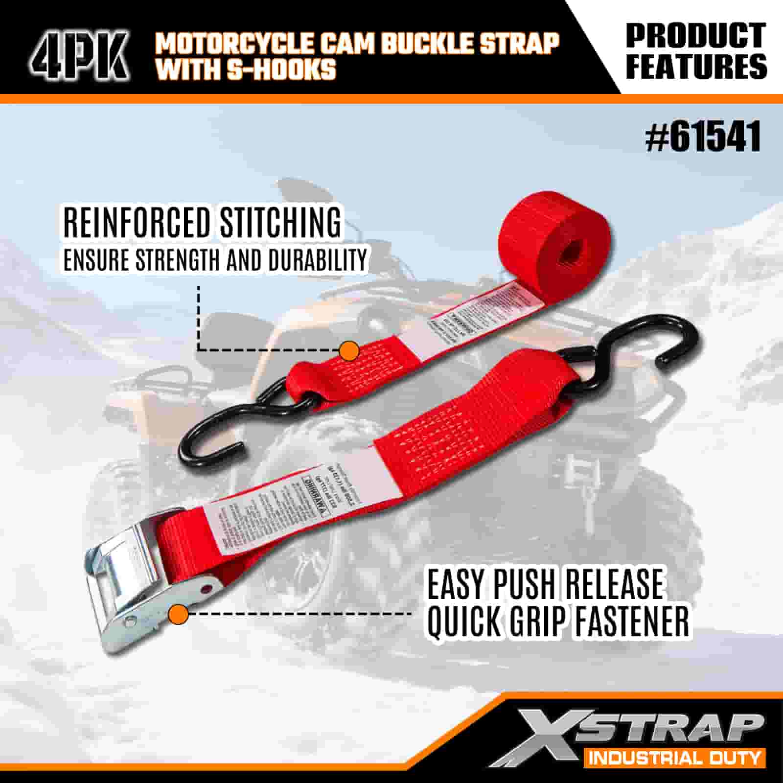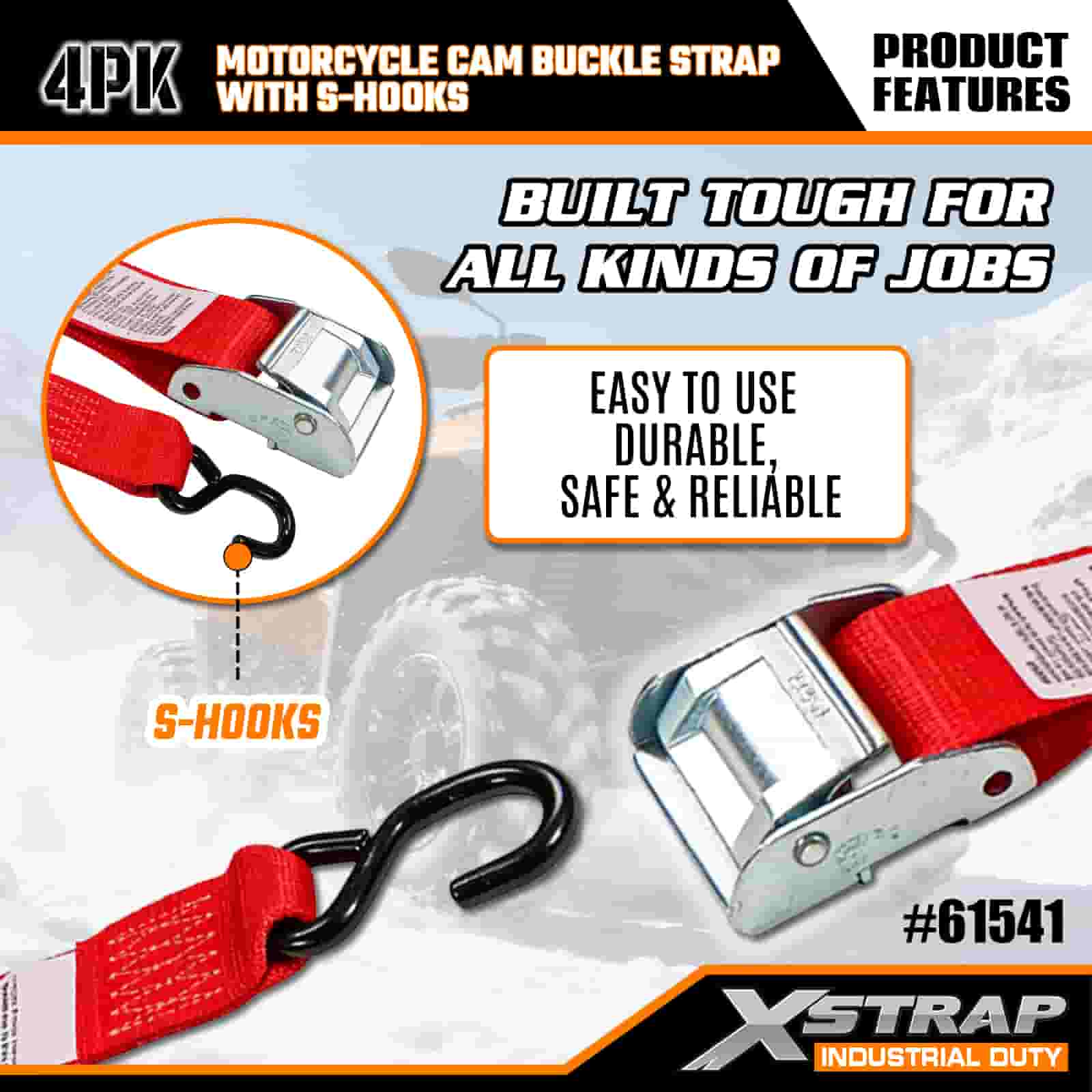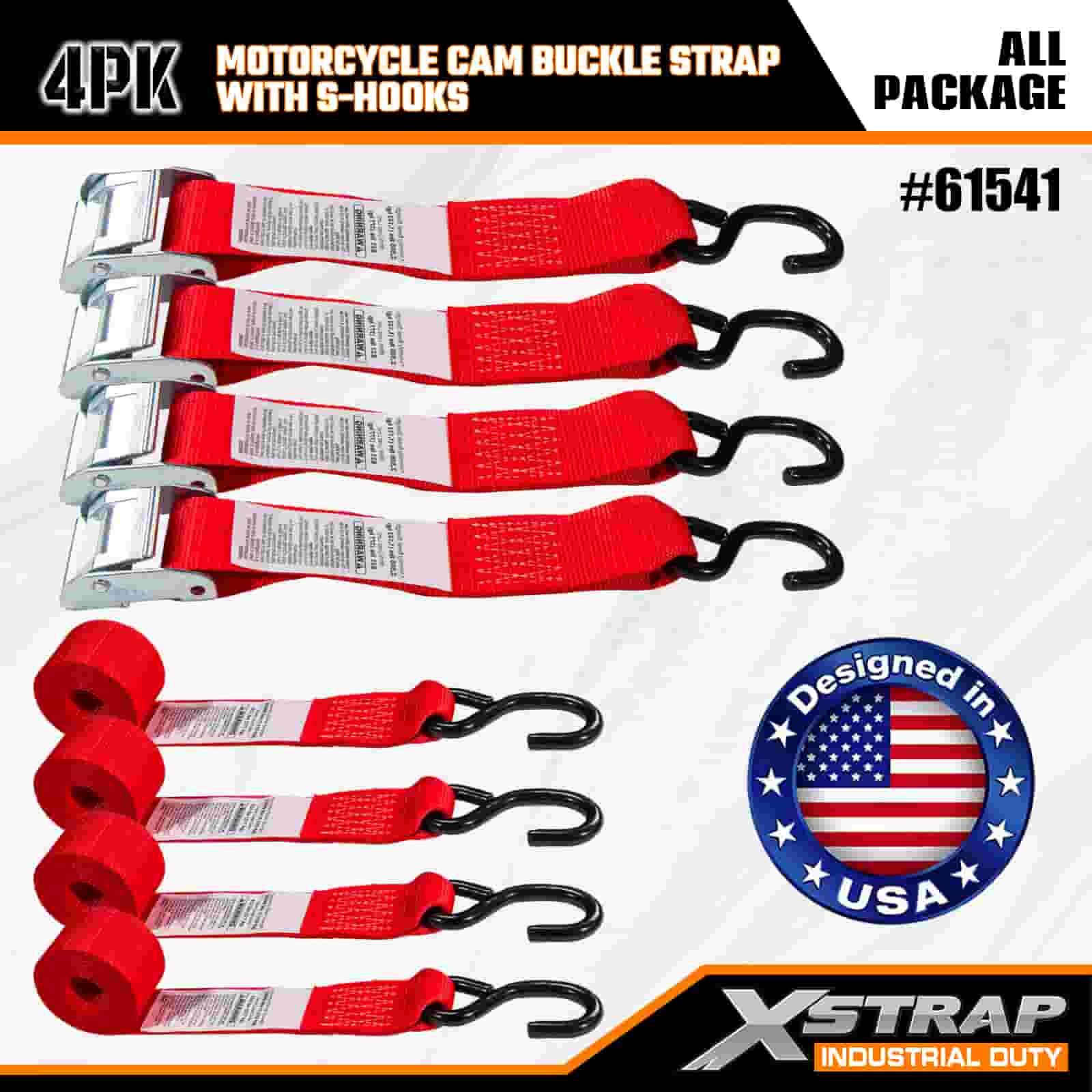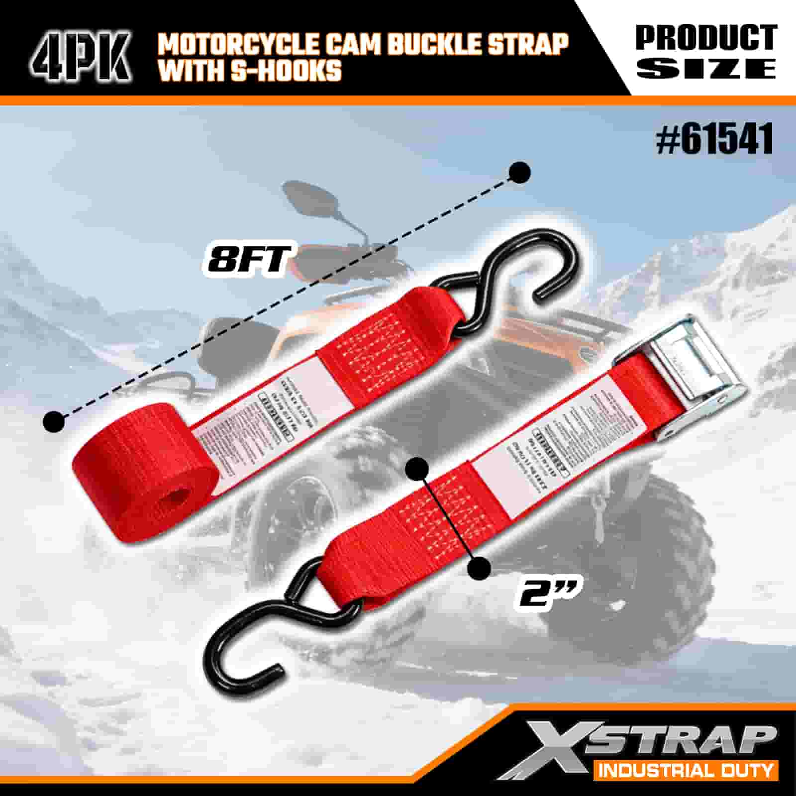 Xstrap 4PK remen s kopčom za motocikle sa S kukom, 2” x 8’ poliesterski remen za pričvršćivanje Remen s kopčom za povlačenje, 400 lbs Kapacitet trake za pričvršćivanje tereta sa S kukom za ozbiljne profesionalce za pričvršćivanje teretne prikolice, prikolice s ravnim krevetom, skijaškog čamca, malog automobila.