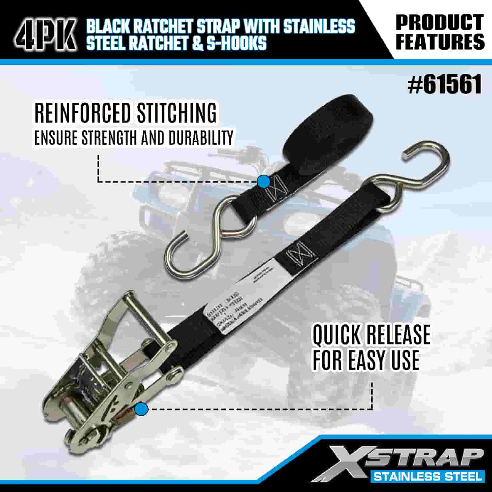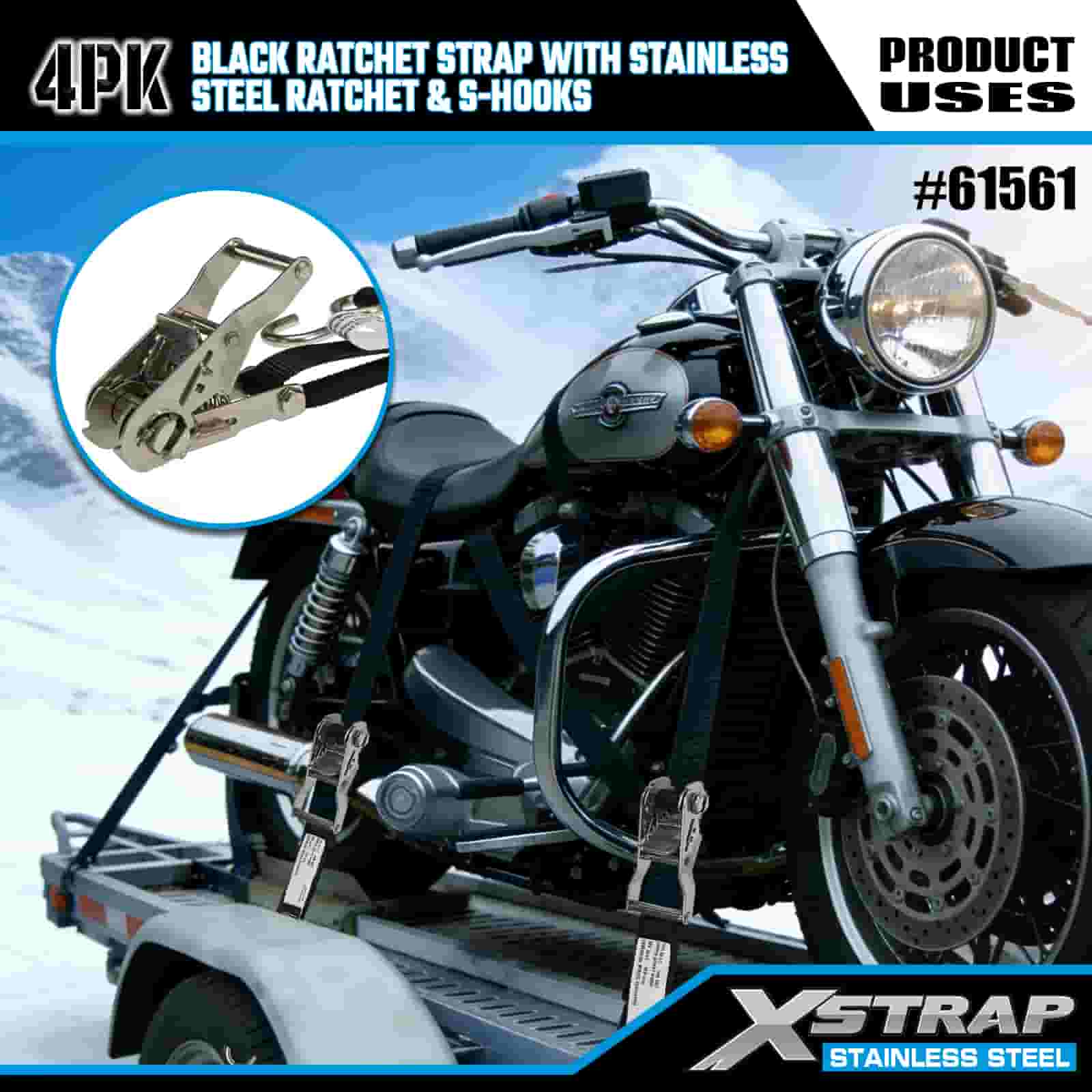 - Kompaktna pogonska jedinica, napravljena za prijevoz motocikala i ATV-a: Dizajnirana posebno za pričvršćivanje motocikala i ATV-a na prikolicama, ova 4 paketa traka s čegrtaljkom pružaju pouzdano držanje bez opterećenja. XStrapova 20-godišnja stručnost u kontroli tereta osigurava da vaša vožnja ostane zaključana na mjestu, čak i na neravnim planinskim cestama.