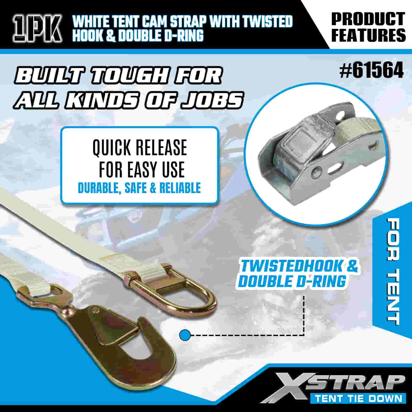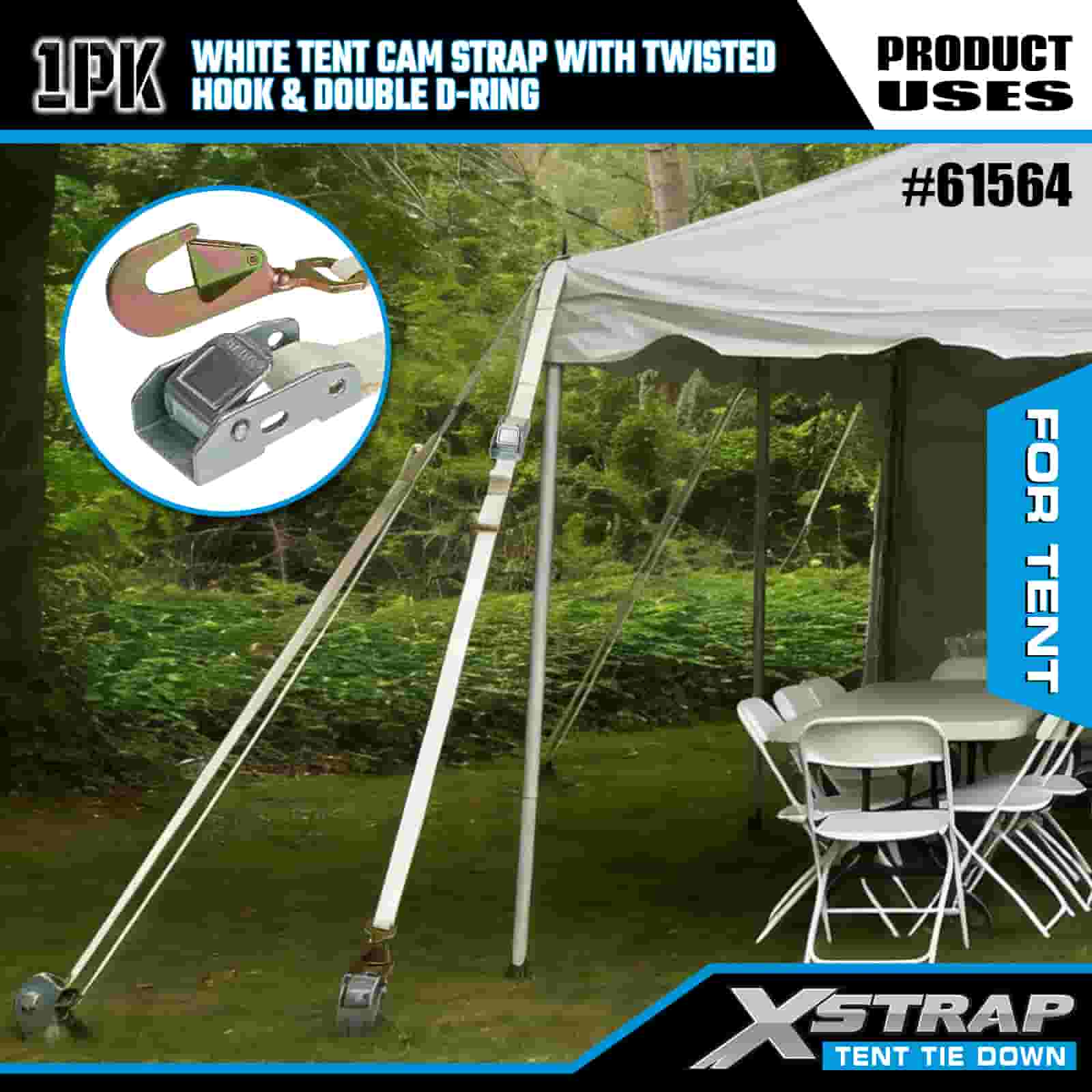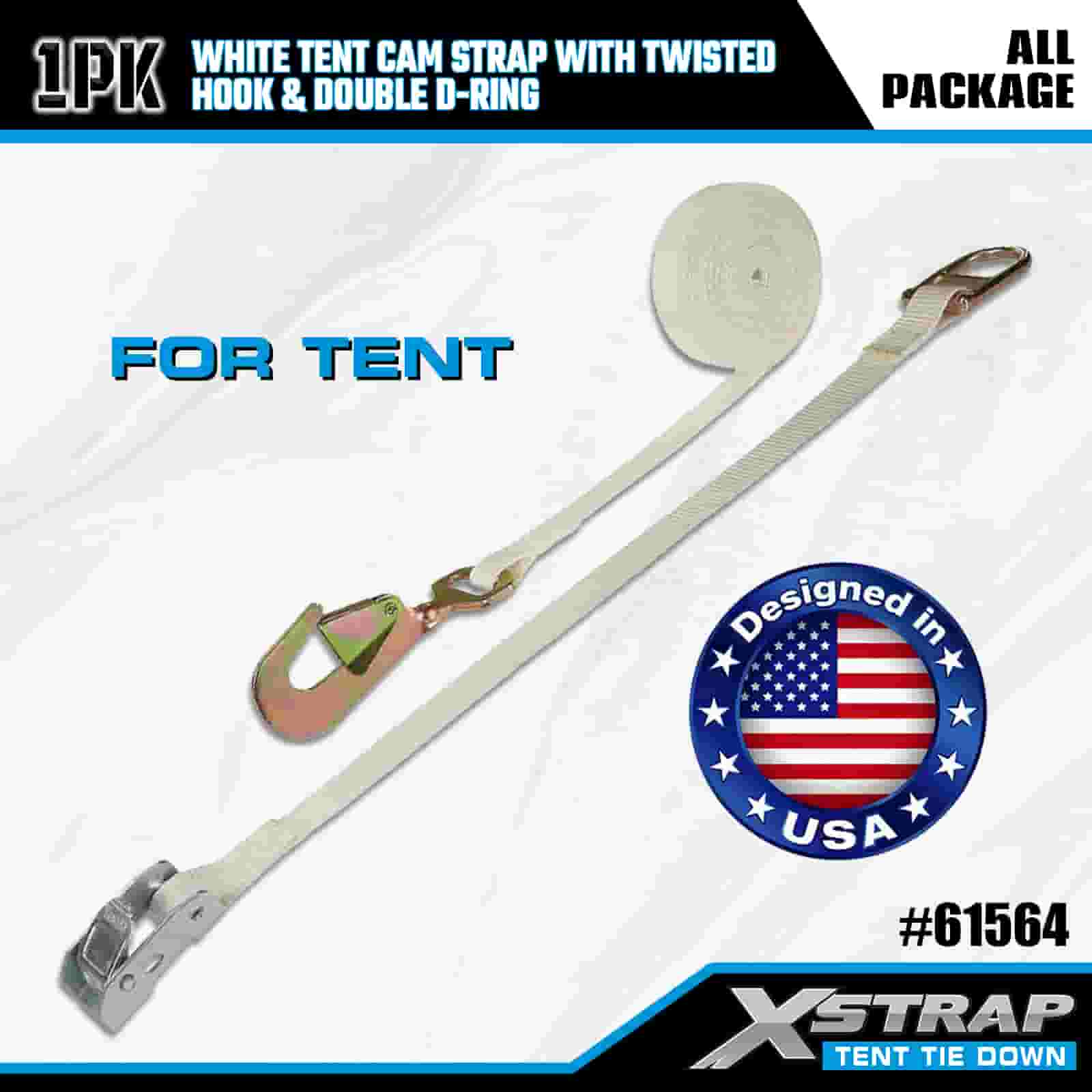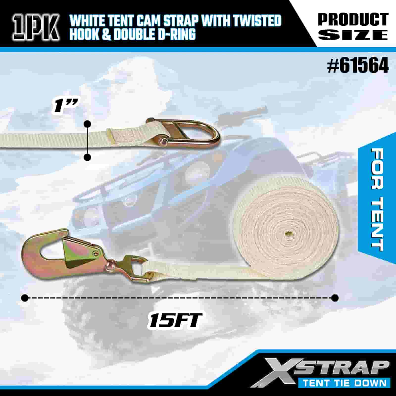 Xstrap bijeli remen za šator s upletenom kukom i dvostrukim D prstenom, 1” x 15’ poliesterski remen za vezivanje, remen s čegrtaljkom, nosivost 440 lbs Trake za pričvršćivanje tereta s Uvijena kuka i dupli D prsten za kontrolu tereta, pričvršćivanje šatora.