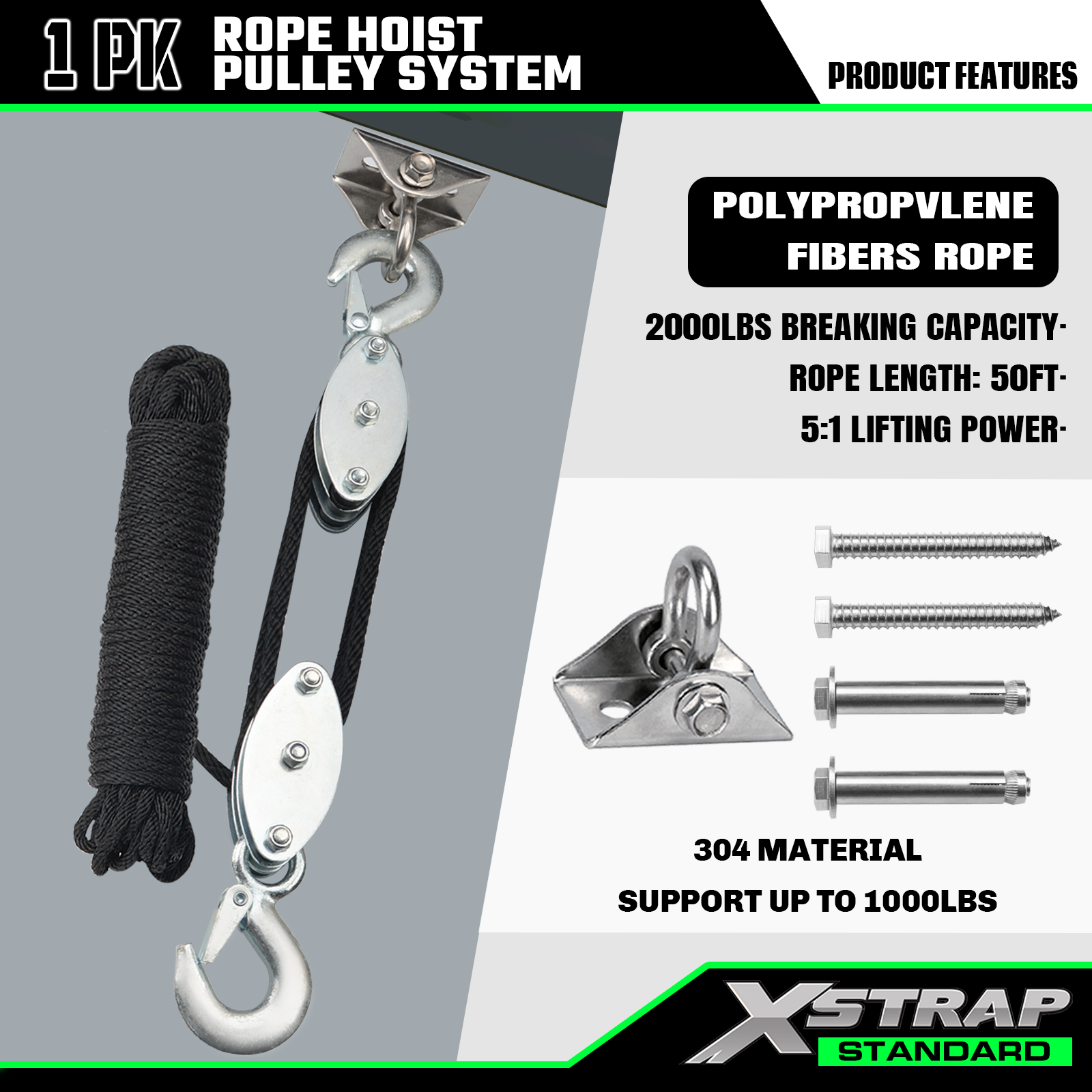 Xstrap AHLT0004 50 Ft sustav remenica za dizanje užeta 1000 LB