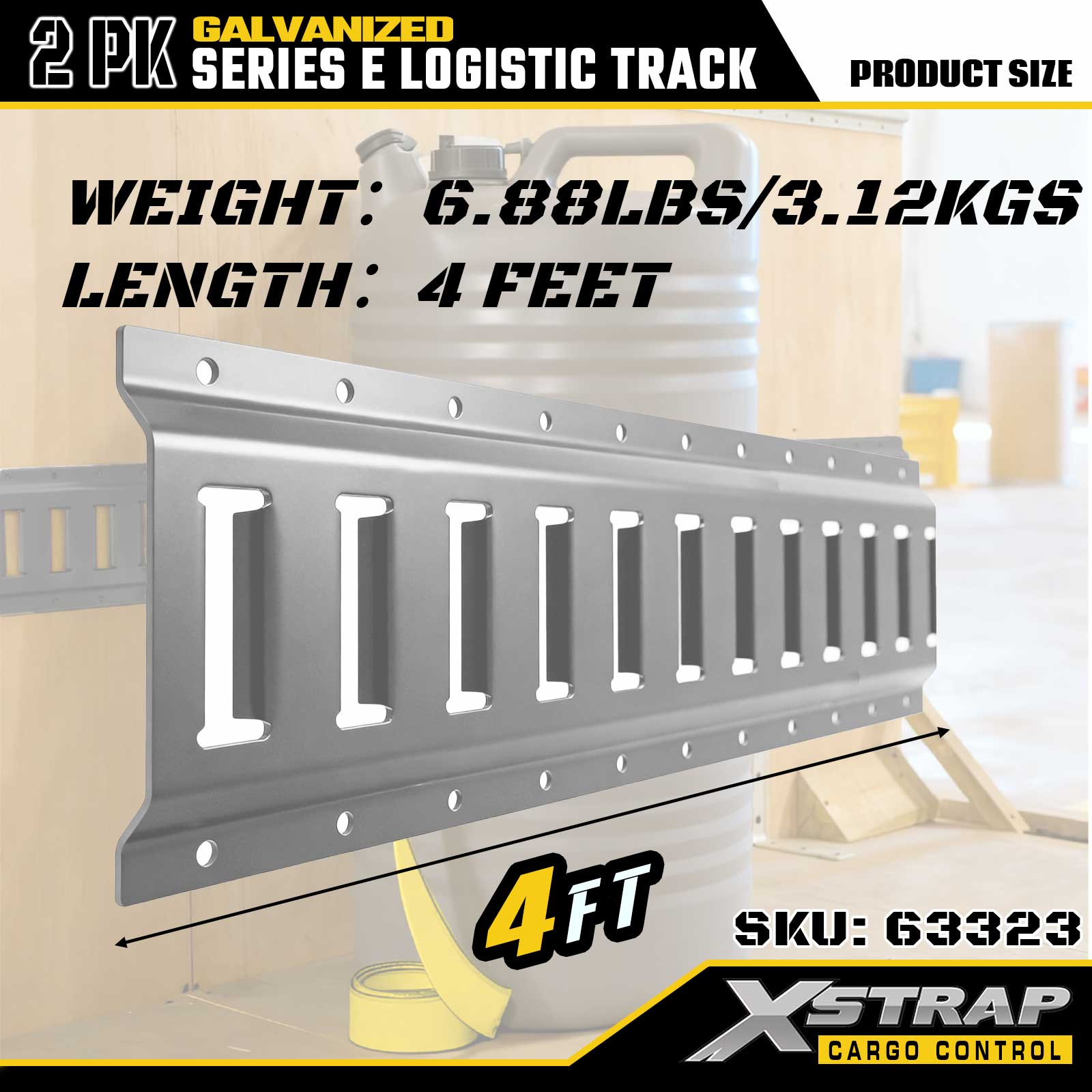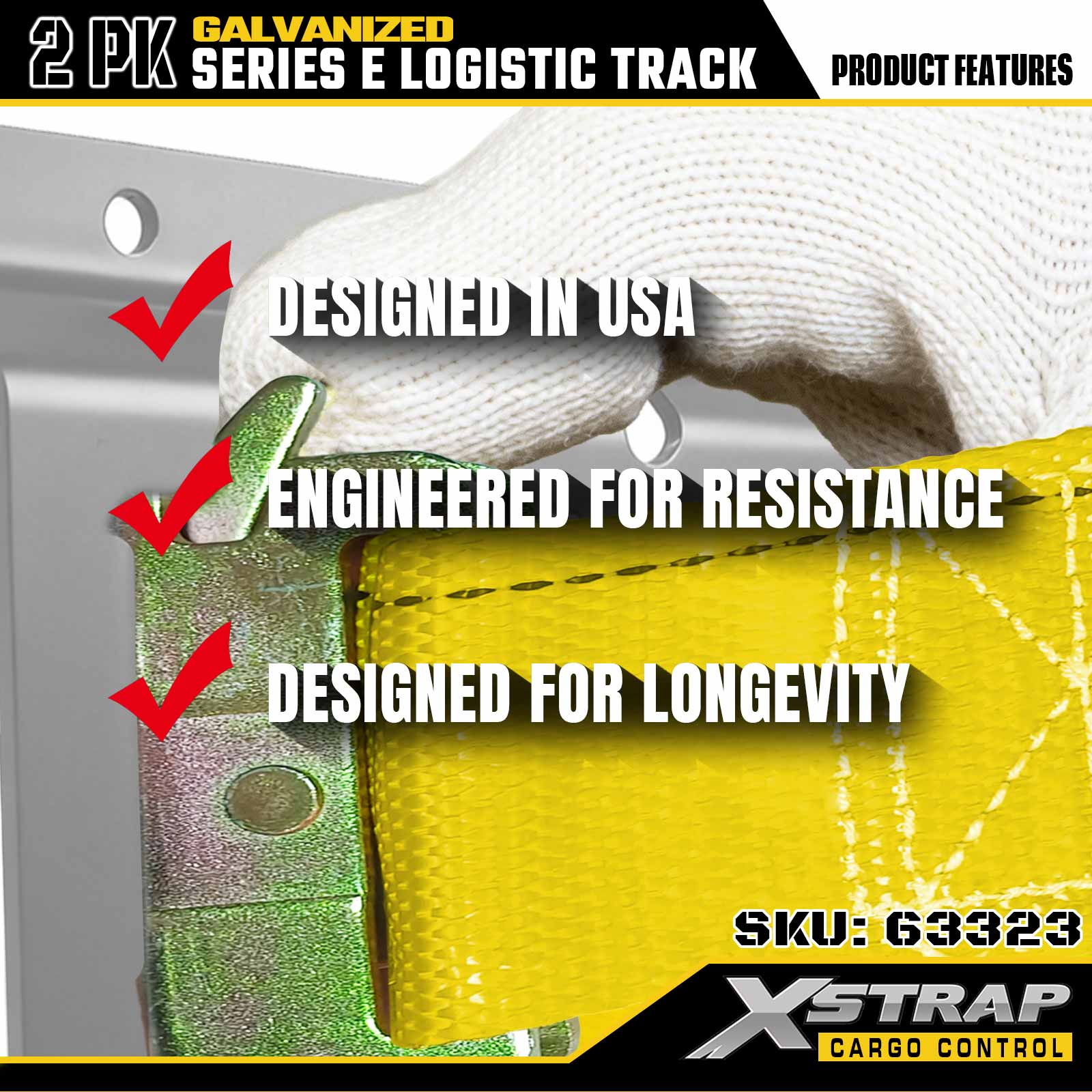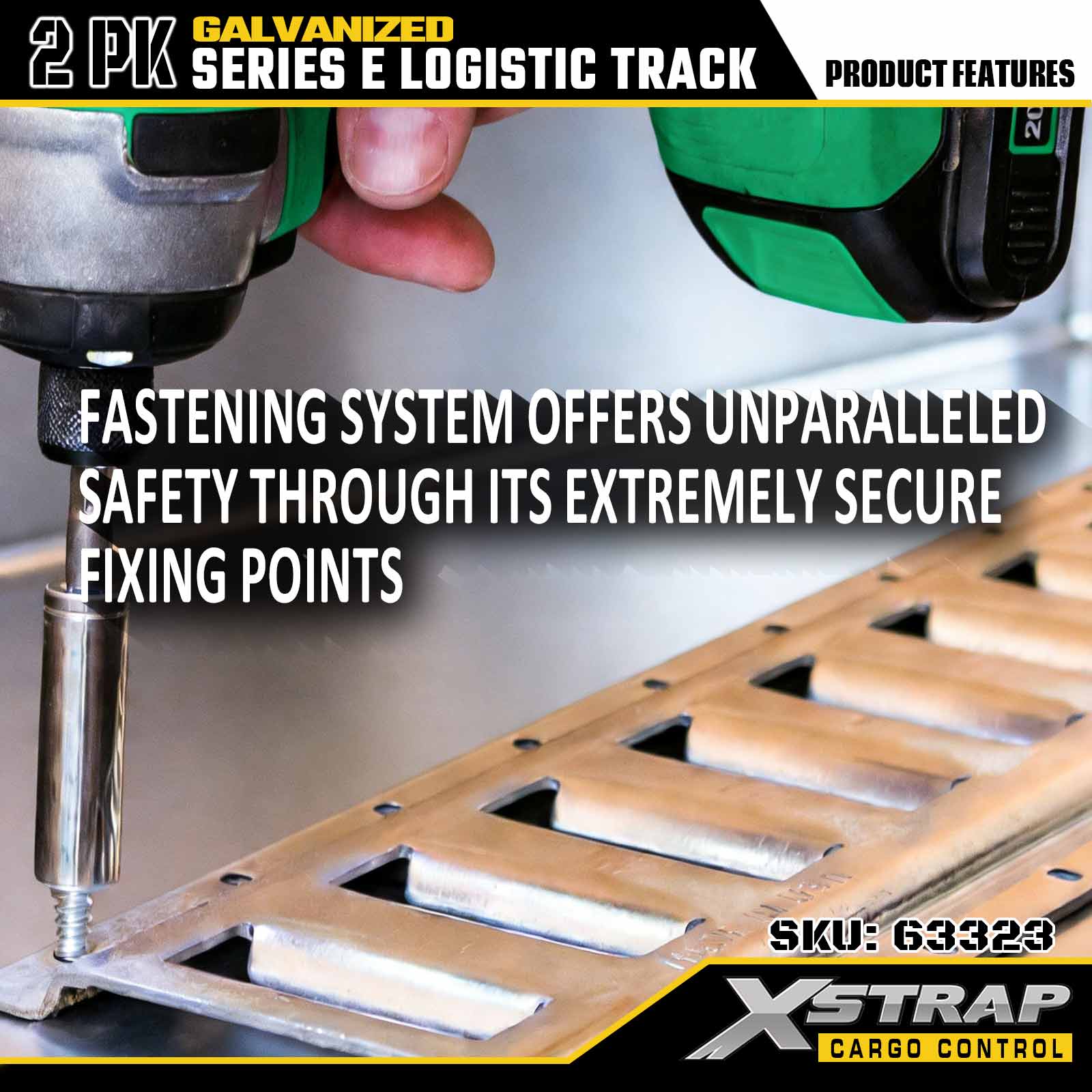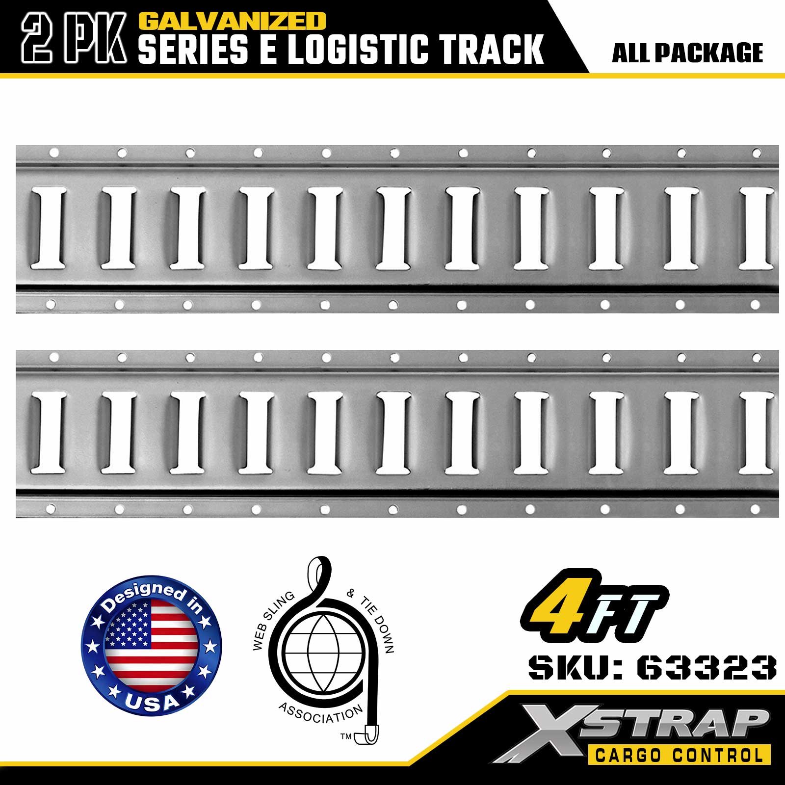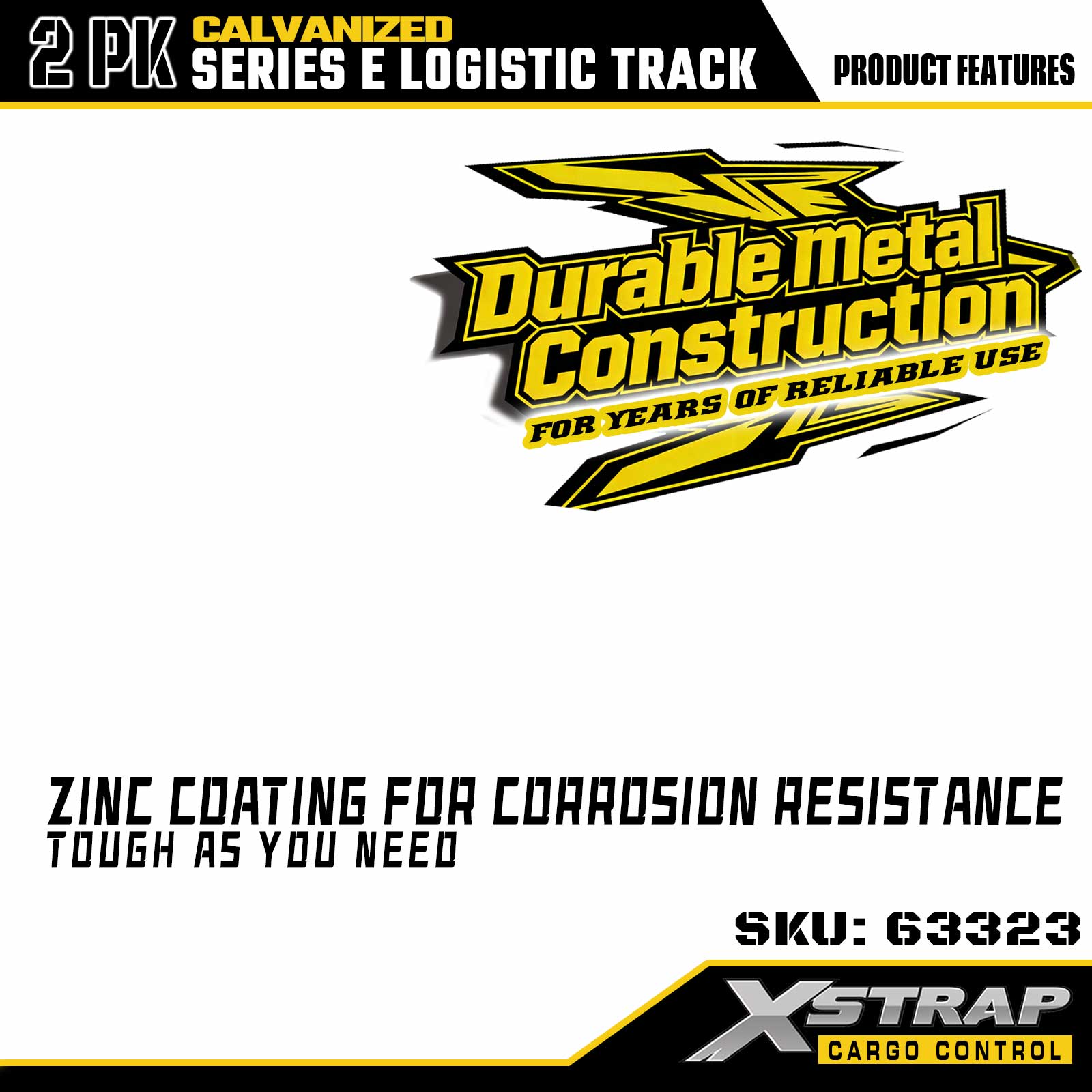 Xstrap 63322 4 stope galvanizirana srebrna tračnica za pričvršćivanje E-Traka - čelik kalibra 12 s pocinčanom završnom obradom, nosivost 6000 LBS, 2 paketa za osiguranje tereta