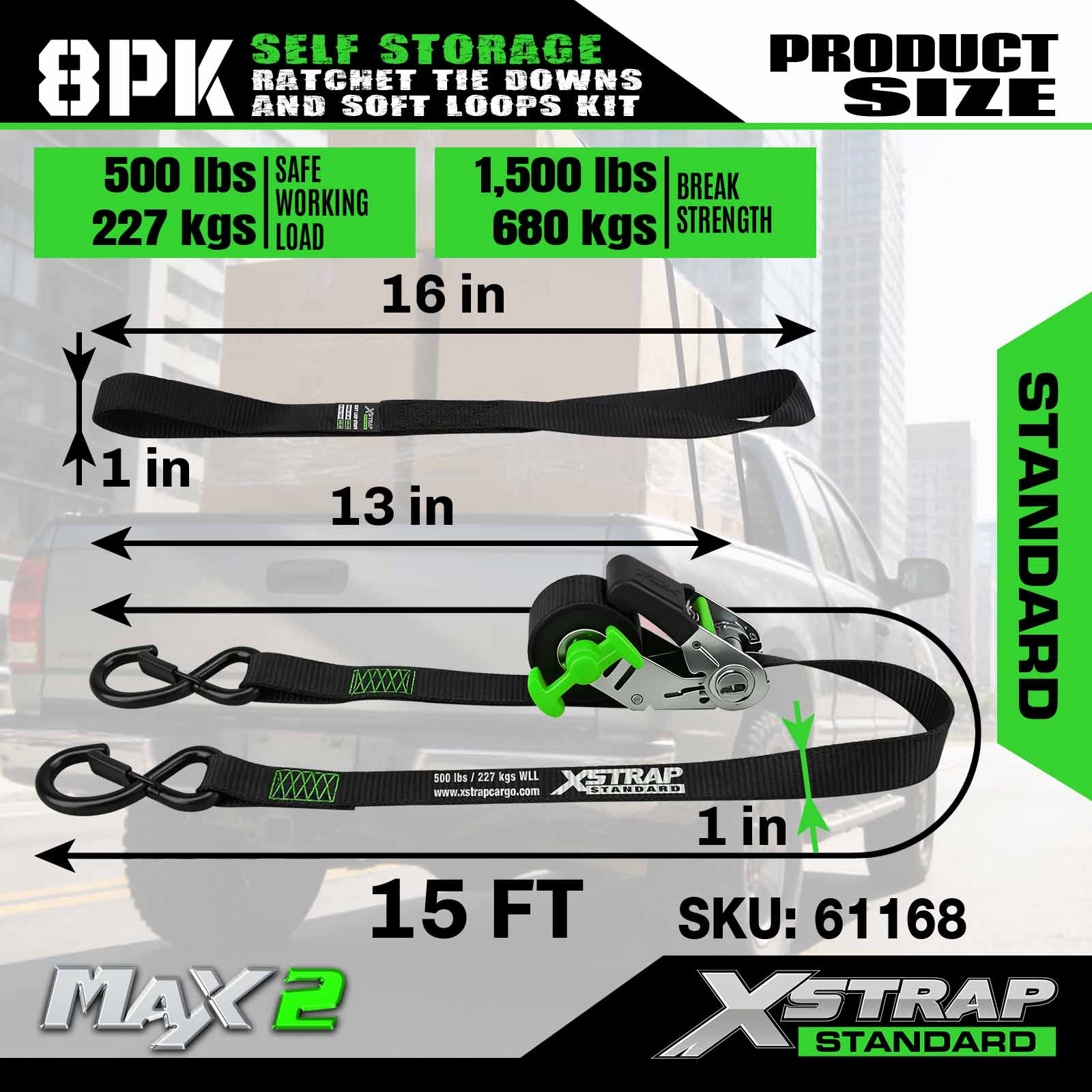 Xstrap 61168 1 inč 15 stopa Self Storage Ratchet Vezice 500LB SWL