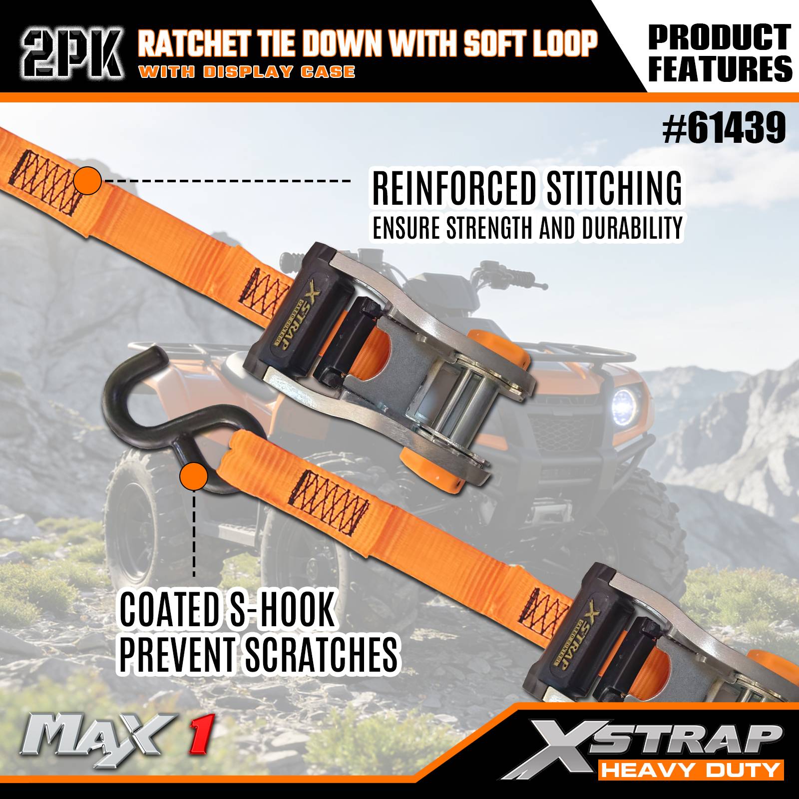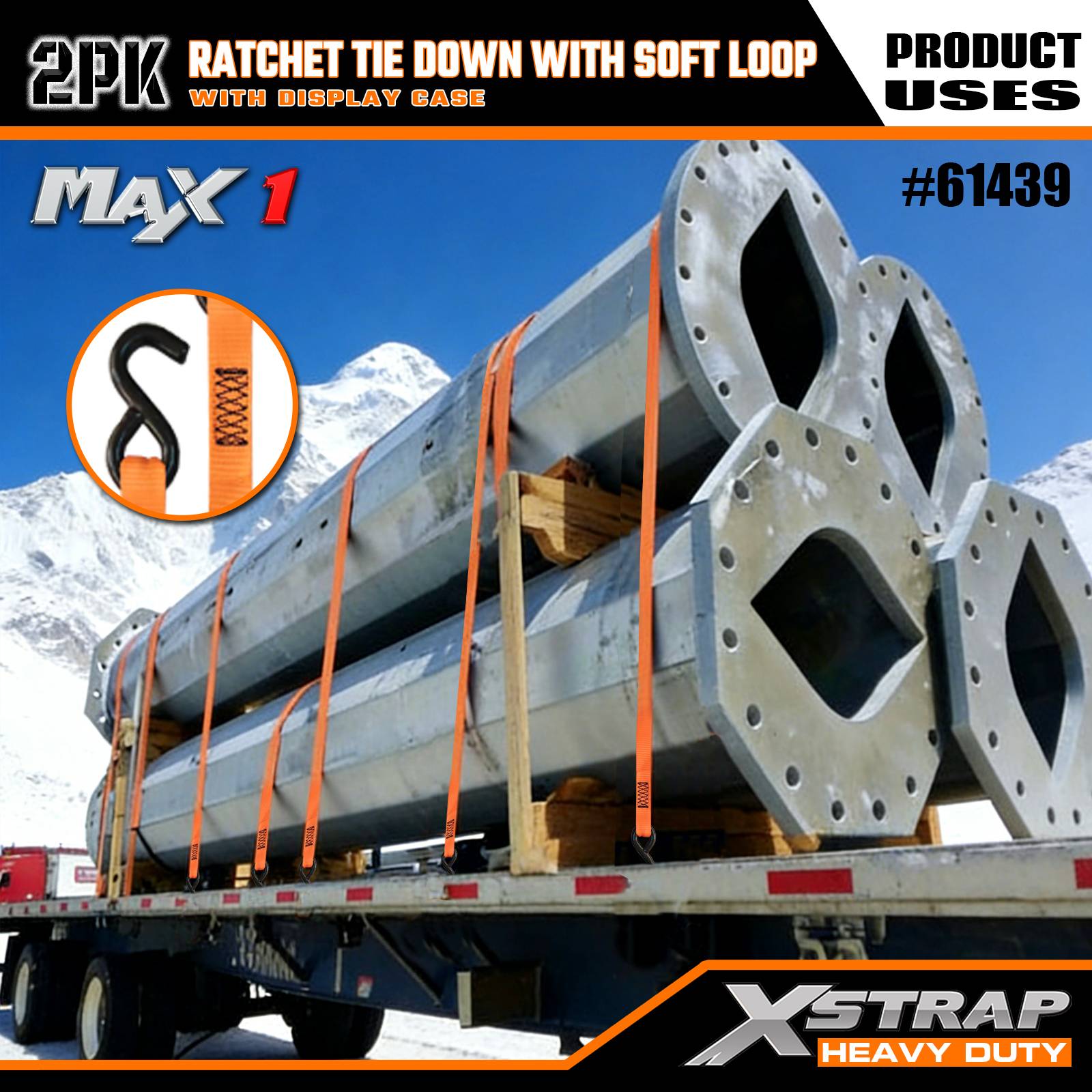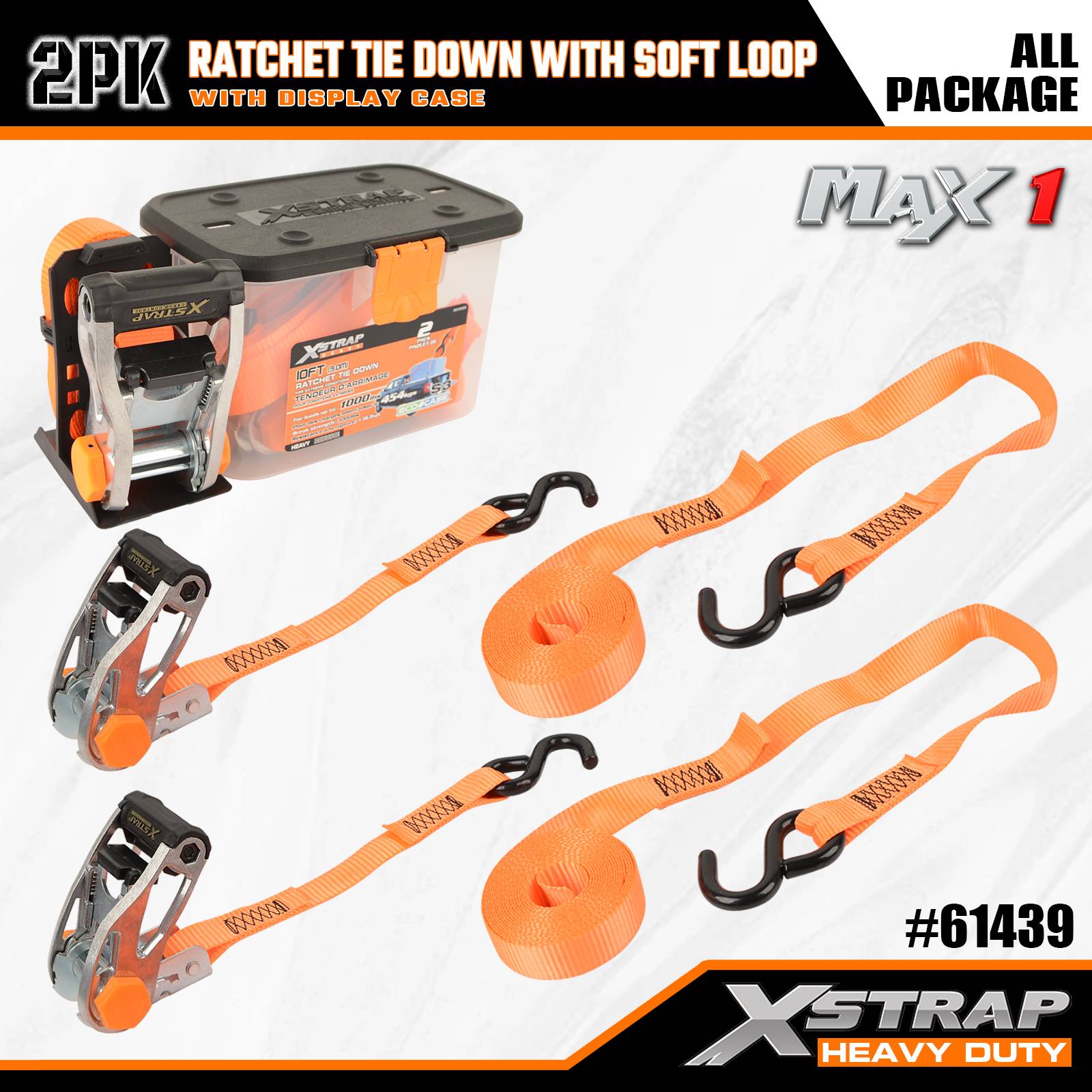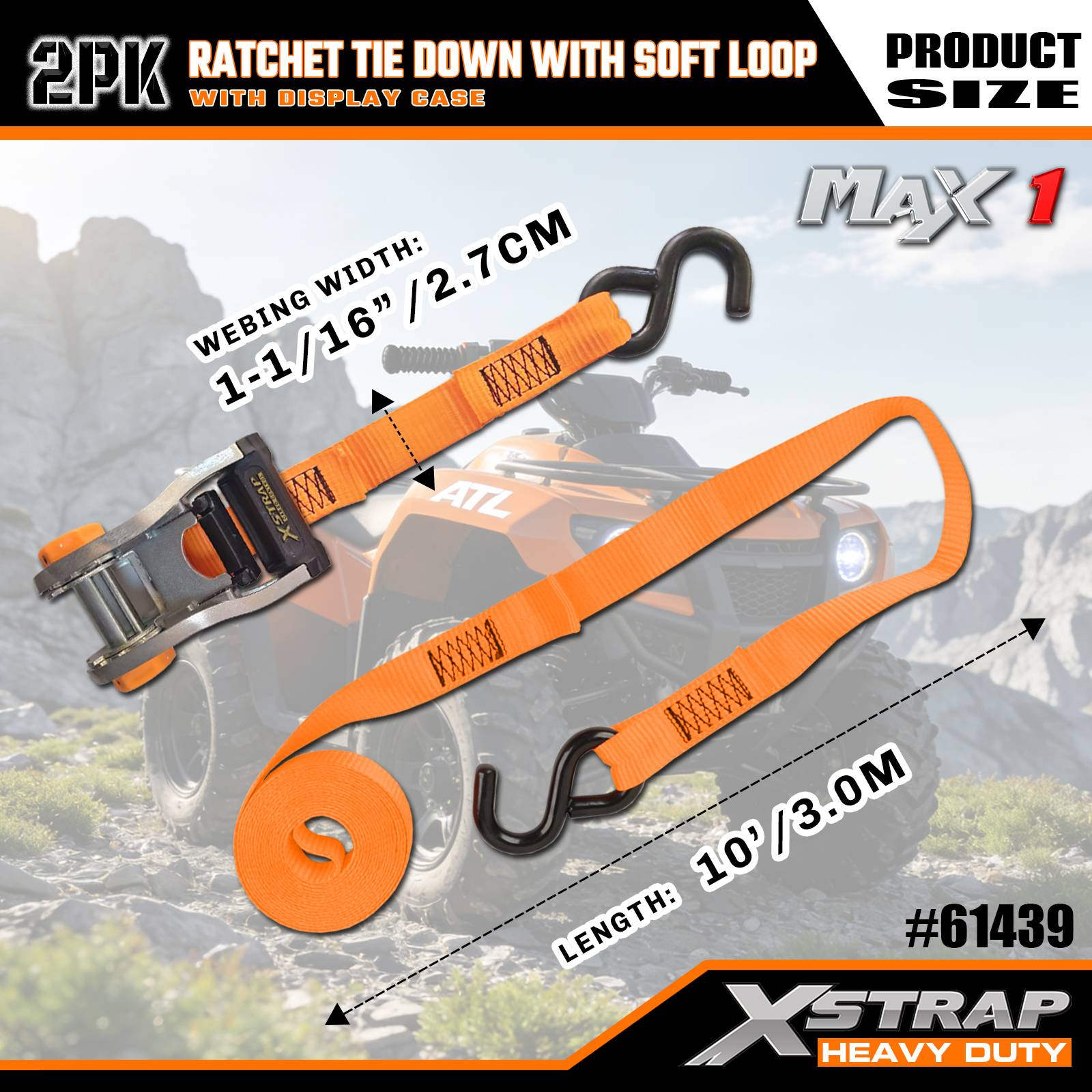 Xstrap 2 paketa čegrtaljke za vezivanje s mekom petljom, 1-1/16” x 10’ poliesterske vezice za povlačenje remena s čegrtaljkom, nosivosti 1000 lbs trake za pričvršćivanje tereta sa S kukama za kamione, SUV, automobilske gornje nosače motocikla.