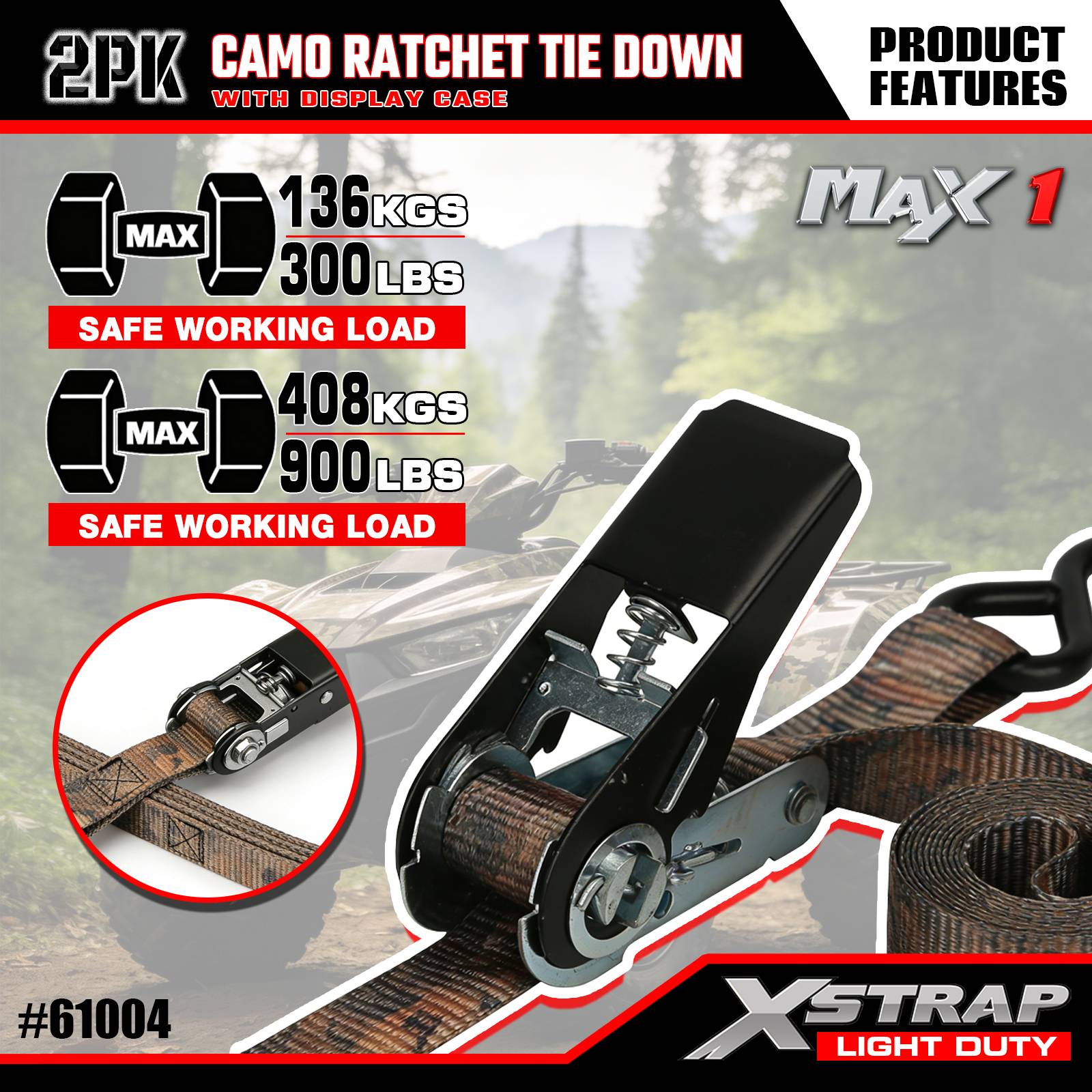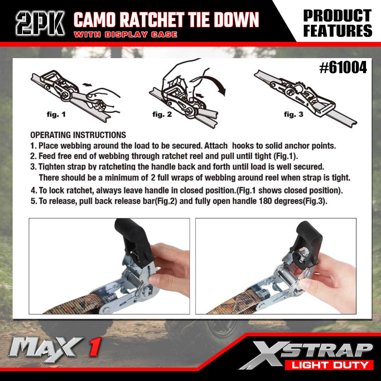 Xstrap 2 paketa remena za pričvršćivanje s čegrtaljkom, 1"x10' - 300 lbs nosivosti - 900 lbs otporne na kidanje trake za teret za pomicanje uređaja, opreme za travnjak, motocikla, kamuflaže