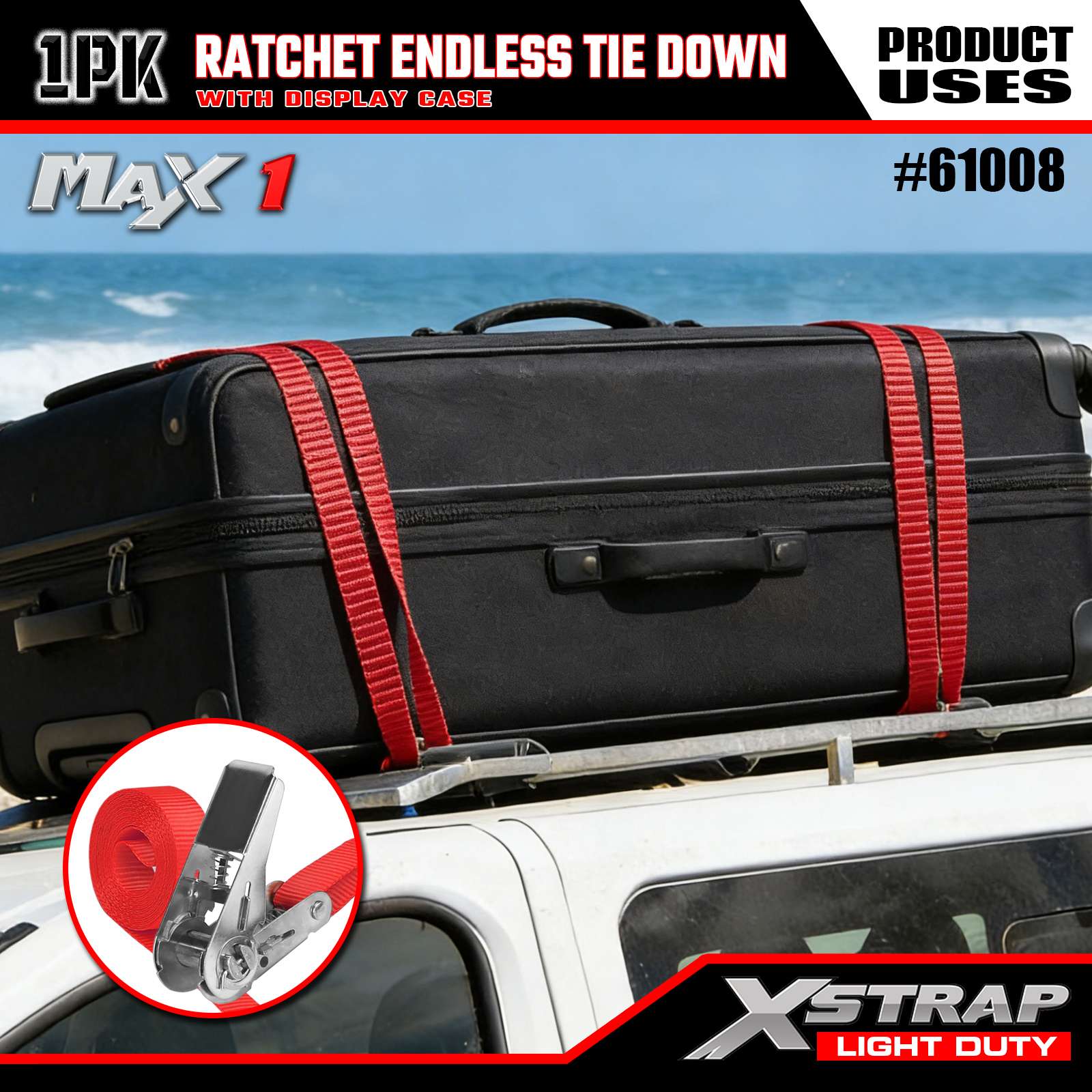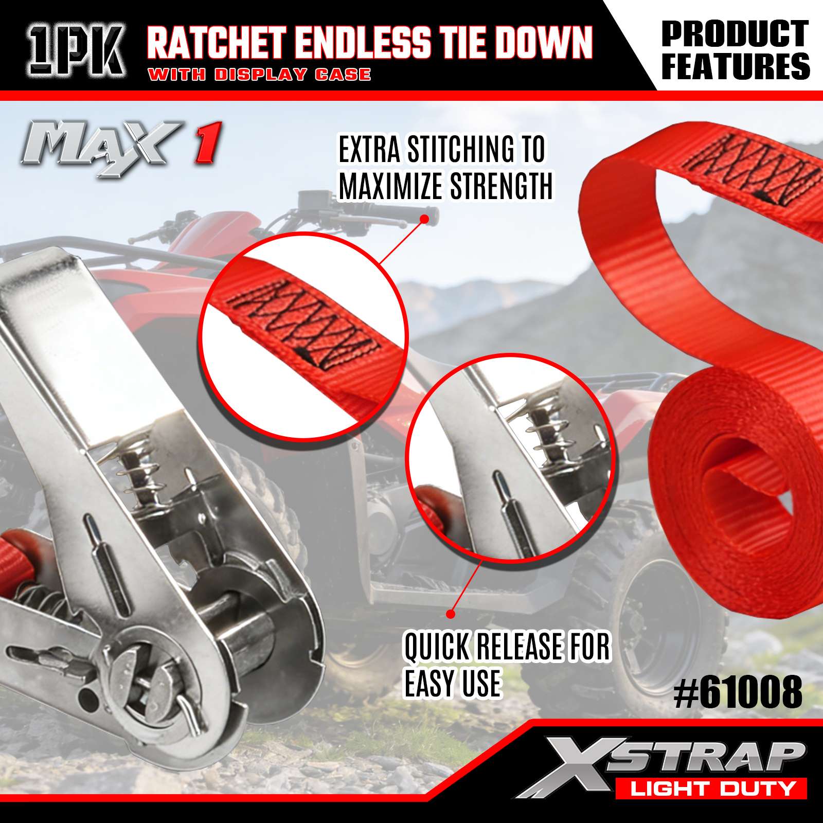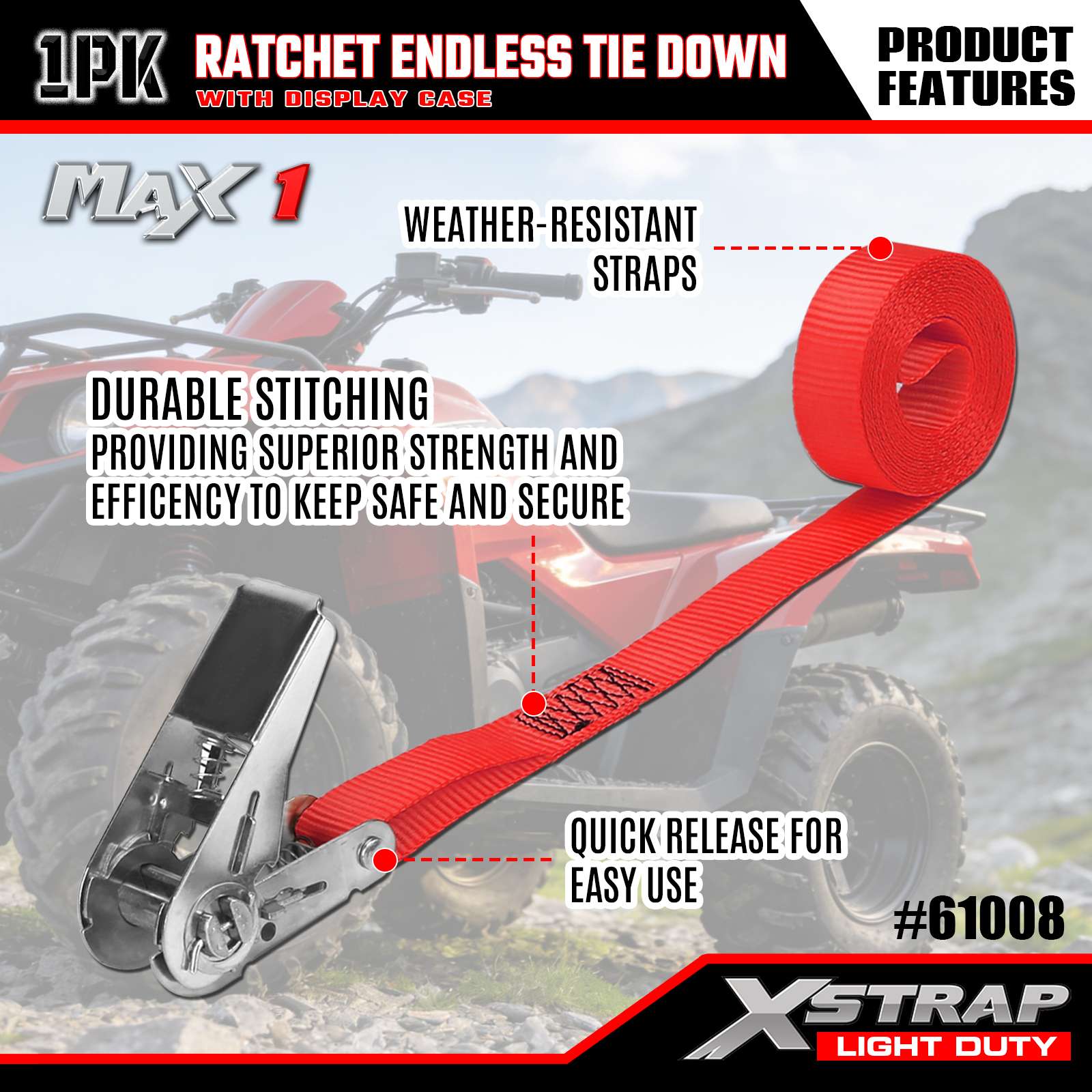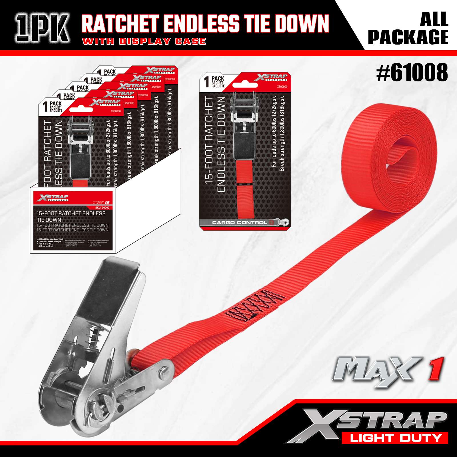 Xstrap 1 paket čegrtajućih beskonačnih traka za pričvršćivanje, 1"x15' - 600 lbs nosivosti - 1800 lbs otporne na kidanje trake za teret za pokretne uređaje, opremu za travnjake, motocikle, kamuflažu