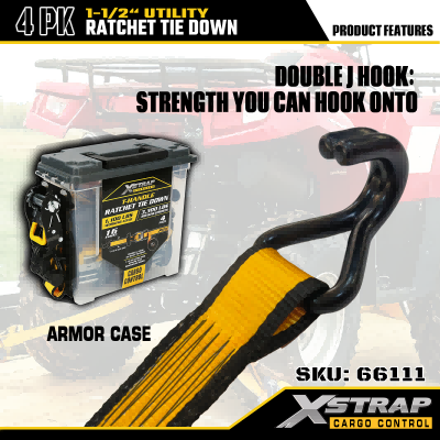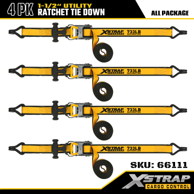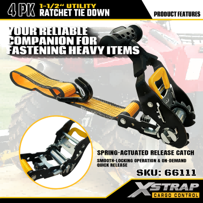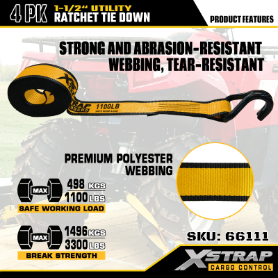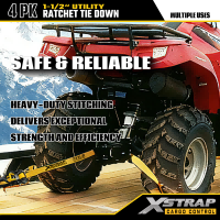 Xstrap 4 Paket T Handle Ratchet Tie Down, 1-1/2” x 16’ Poliesterski remen za vezivanje Pull Ratchet Remen, 1100 lbs Kapacitet trake za pričvršćivanje tereta s dvostrukim J kukama za kamionet s kontrolom tereta, SUV, automobilske gornje nosače motocikle,.