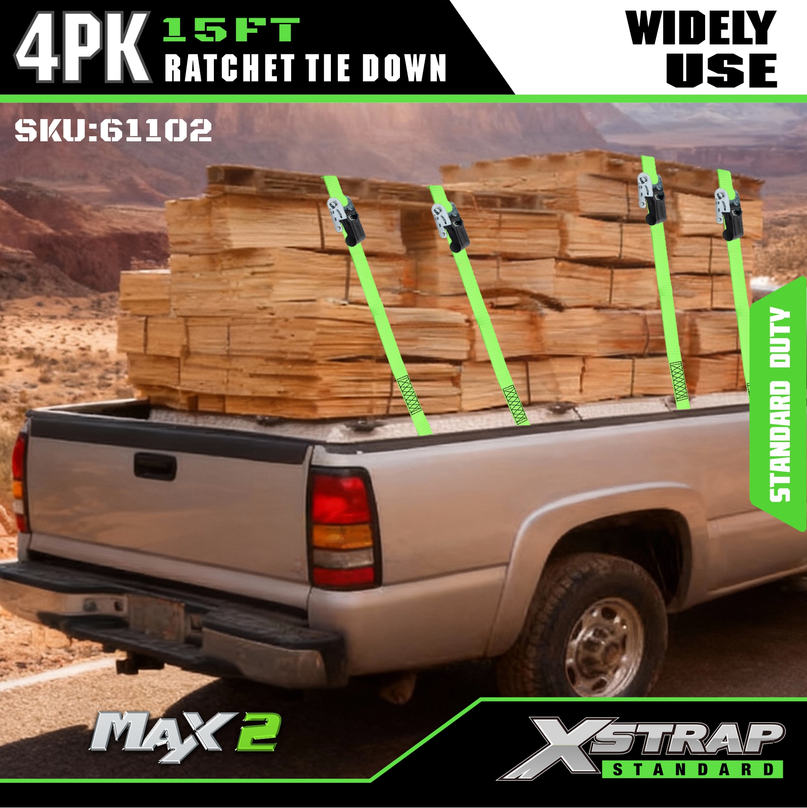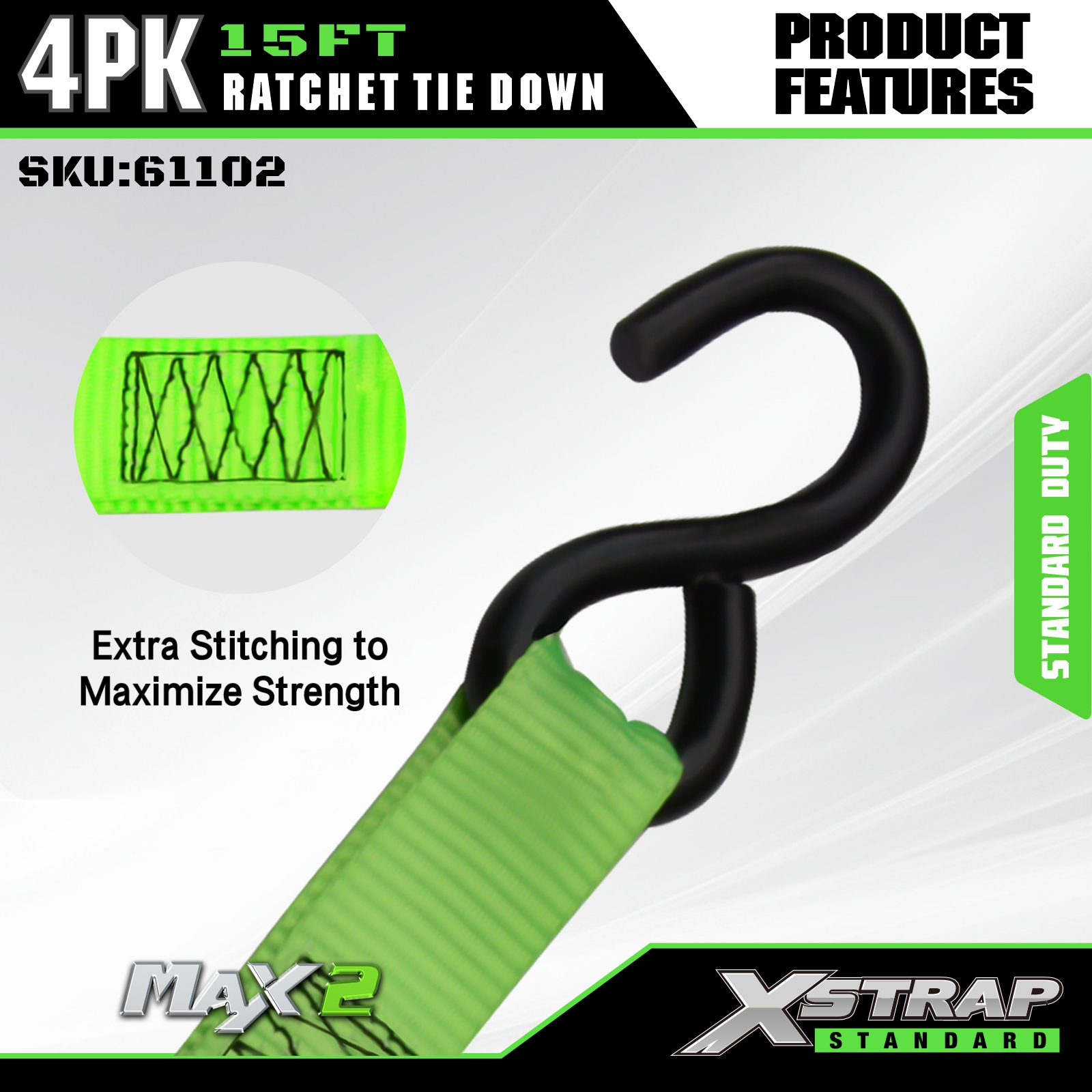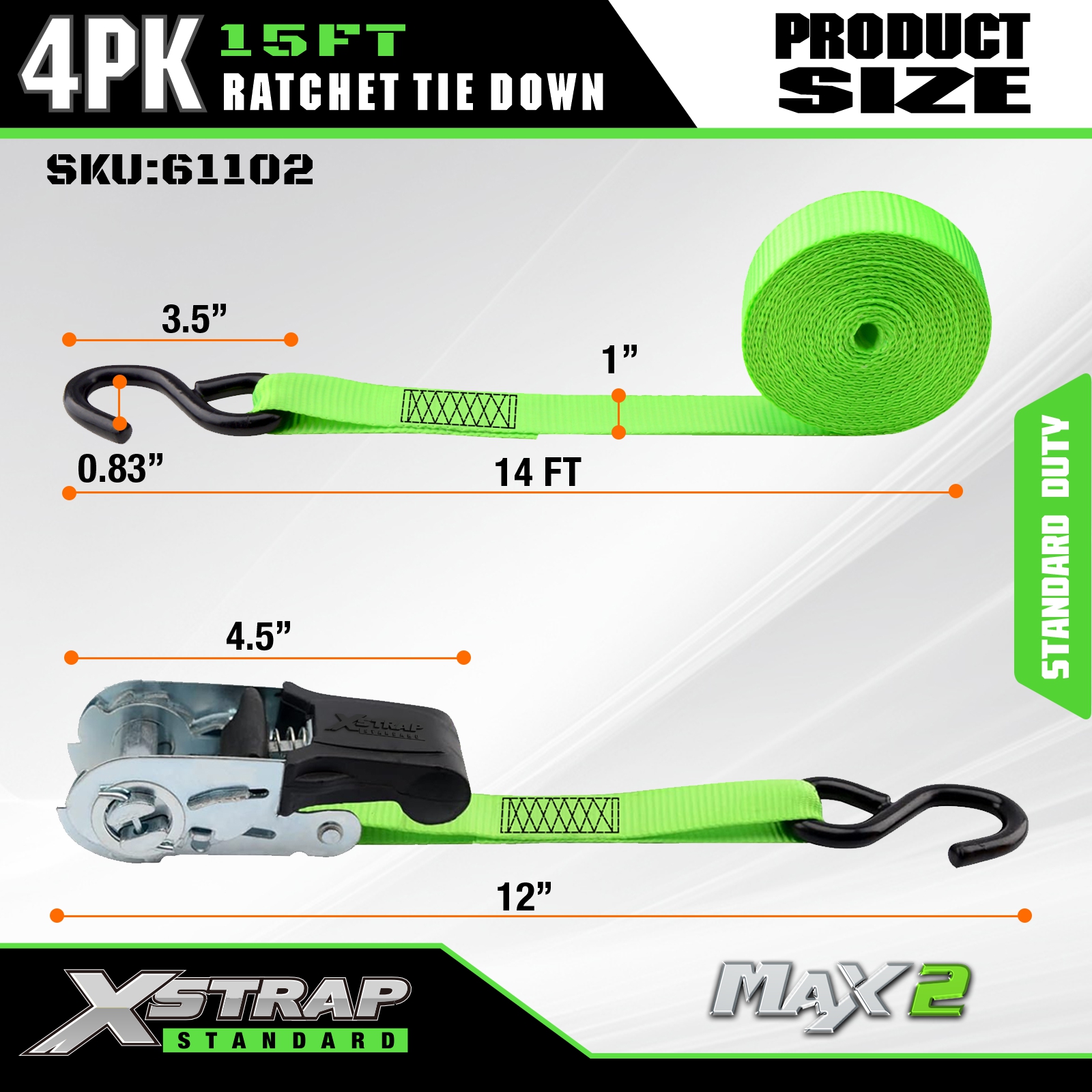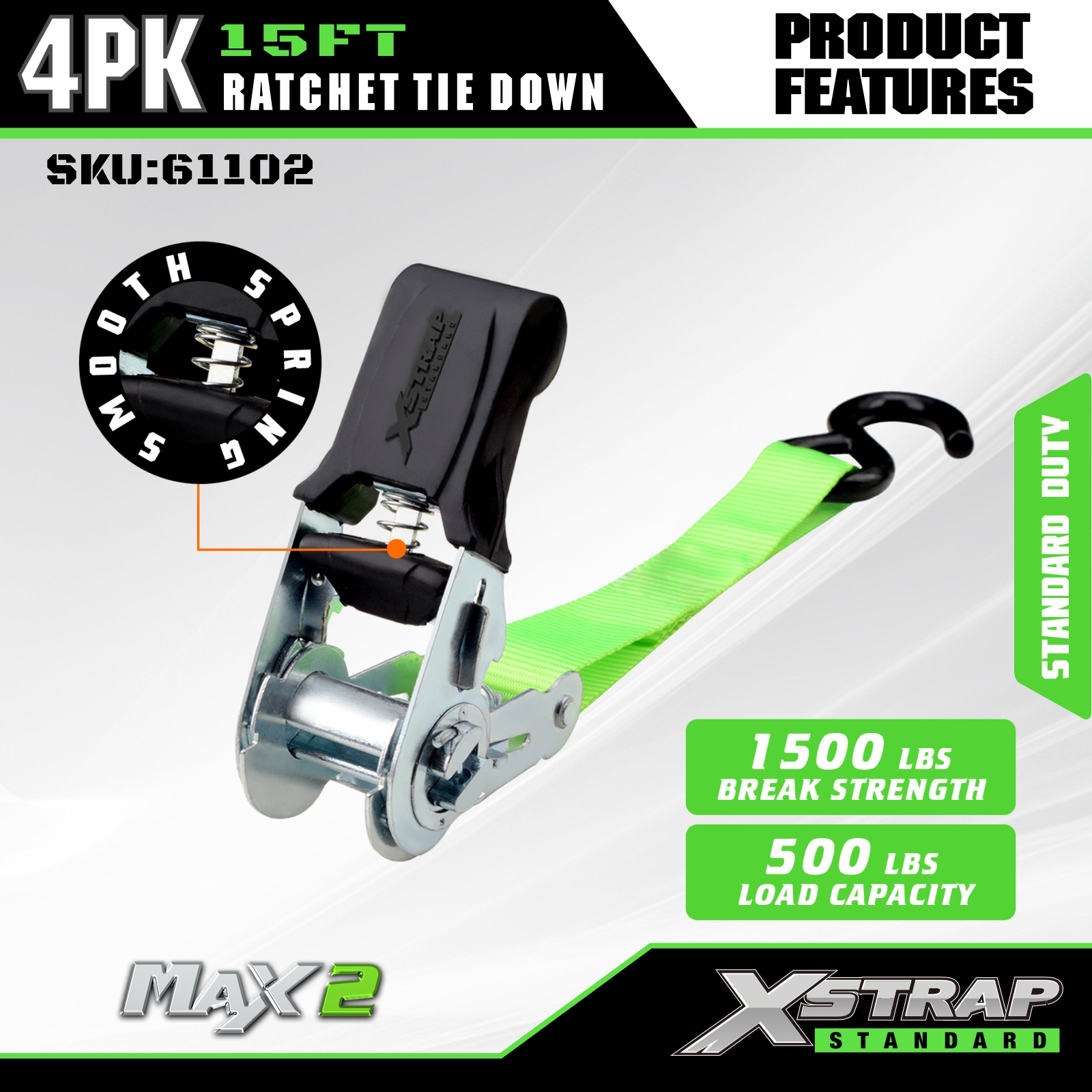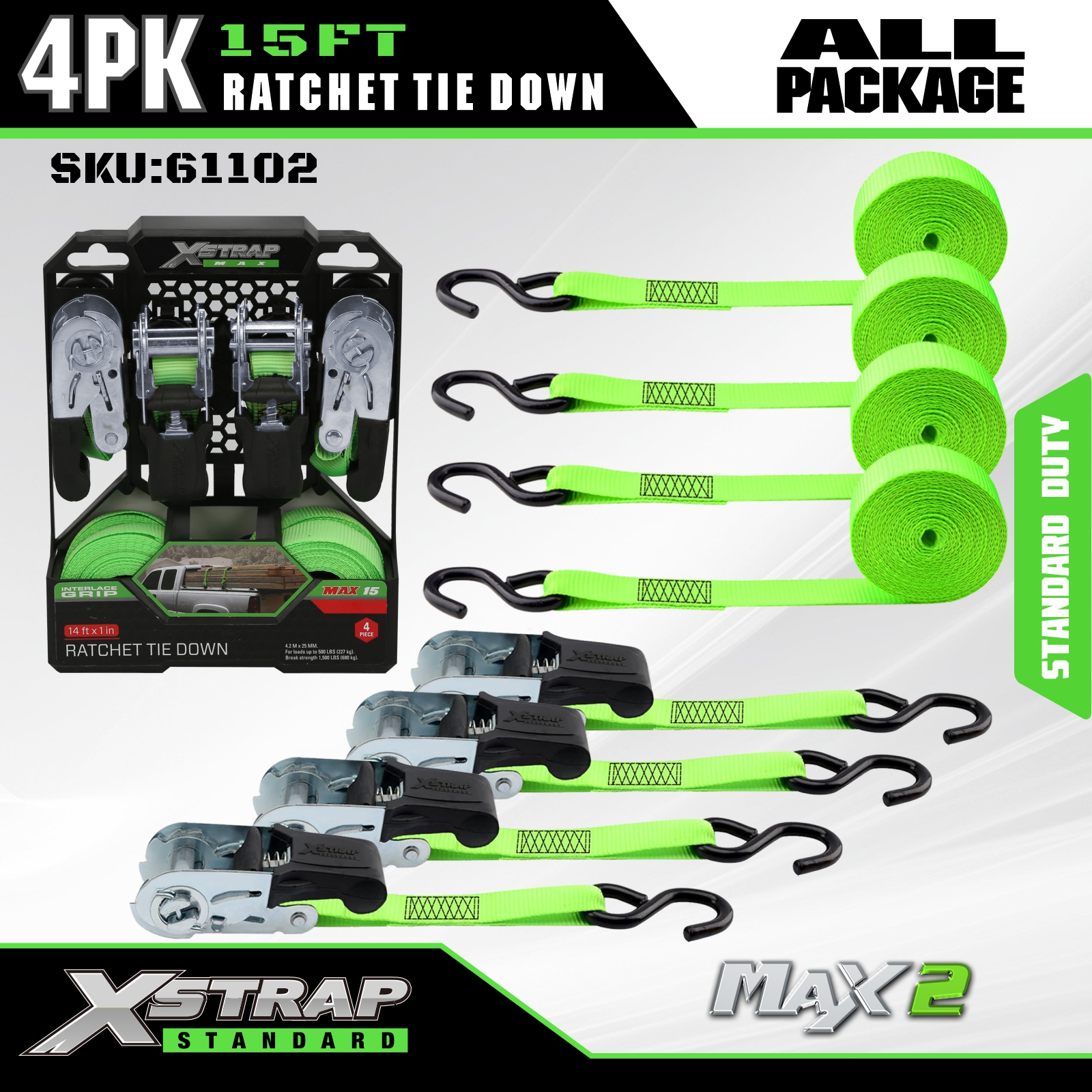 Xstrap Ratchet Trake za vezivanje 4 PK 15Ft- 500 lbs Nosivost 1500 lbs Čvrstoća na kidanje - trake za teret za pomicanje uređaja, opreme za travnjake, motocikla.