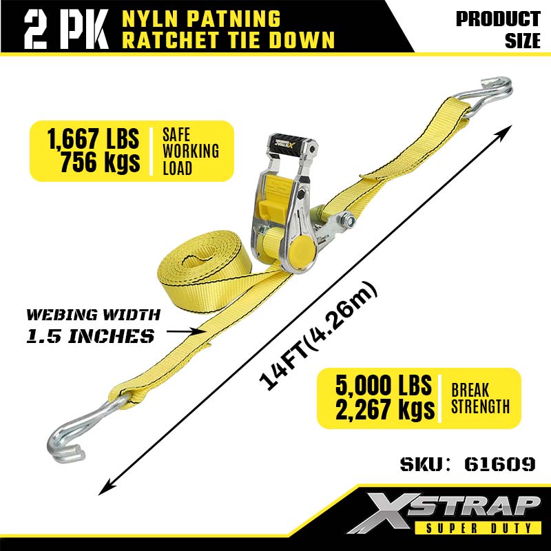 - 2 paketa od 14 FT Veličina: širina od 1,5 inča ravnomjerno raspoređuje napetost kako bi se izbjegla oštećenja. Duljine 14 stopa odgovara prikolicama s krevetima za kamione ili krovnim nosačima. Paket od 2 komada daje vam dovoljno remena za pričvršćivanje velike ili neuobičajene opreme.