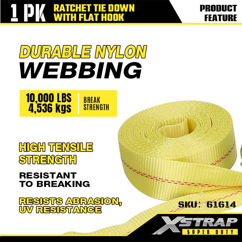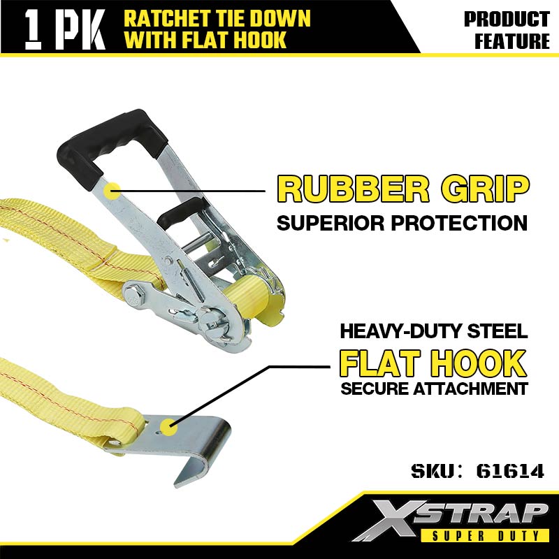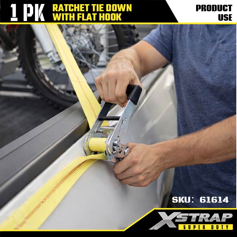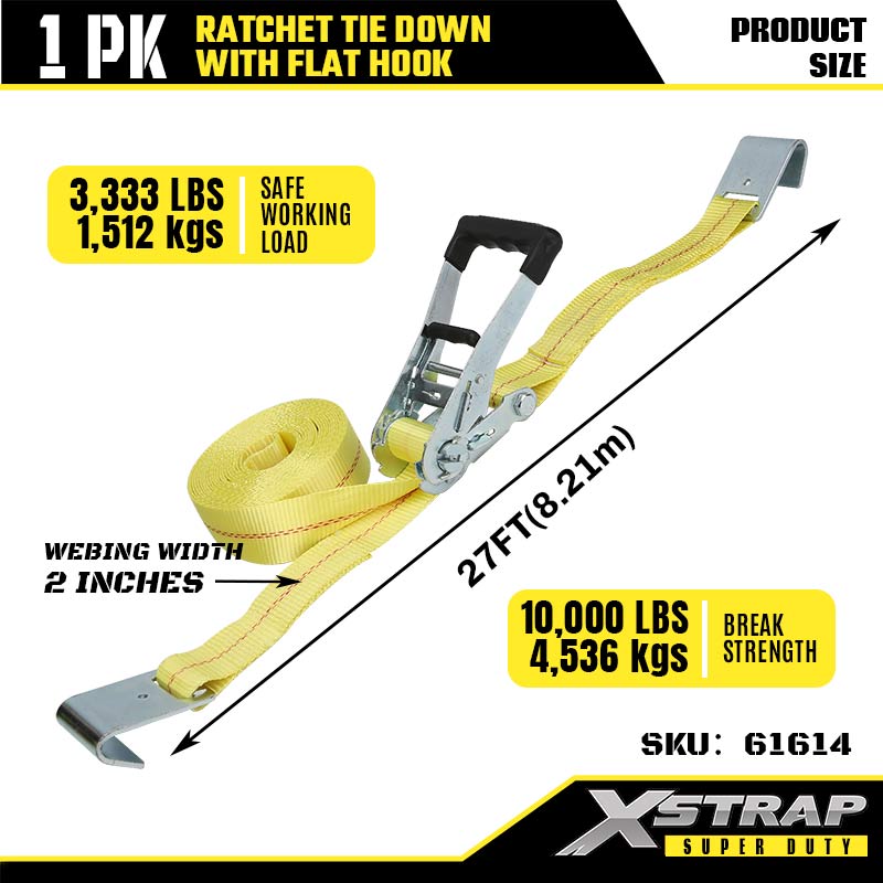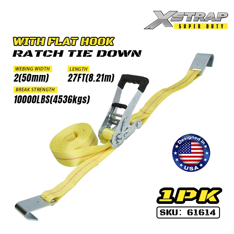 Xstrap Ratcet za vezivanje s ravnim kukama, 2” x 27’ poliesterski remen za vezivanje, remen s čegrtaljkom, 3333 lbs nosivosti, trake za pričvršćivanje tereta s ravnim kukama za prikolicu za teške uvjete, prikolicu s ravnim krevetom, skijaški čamac, mali automobil, tešku opremu.